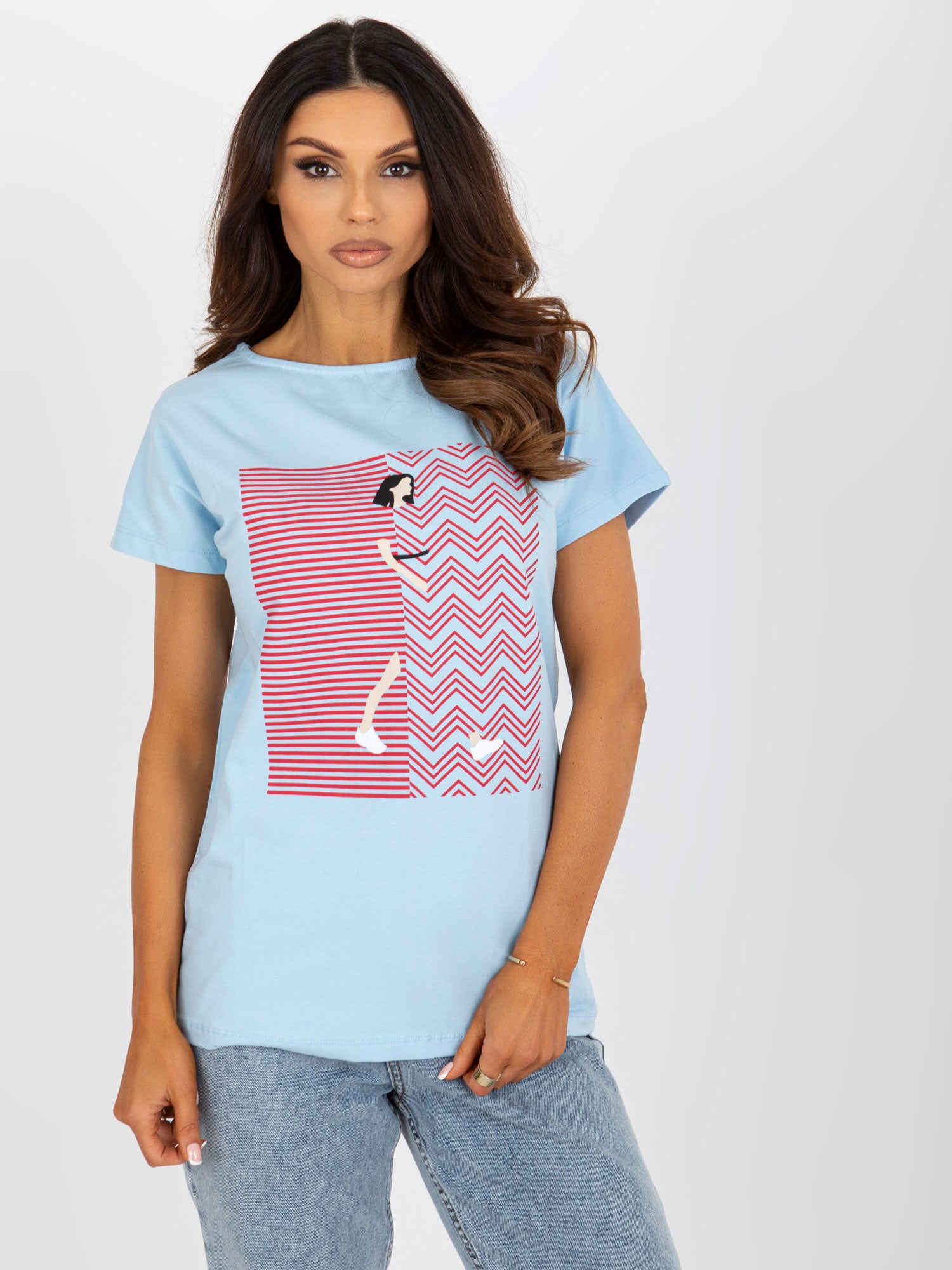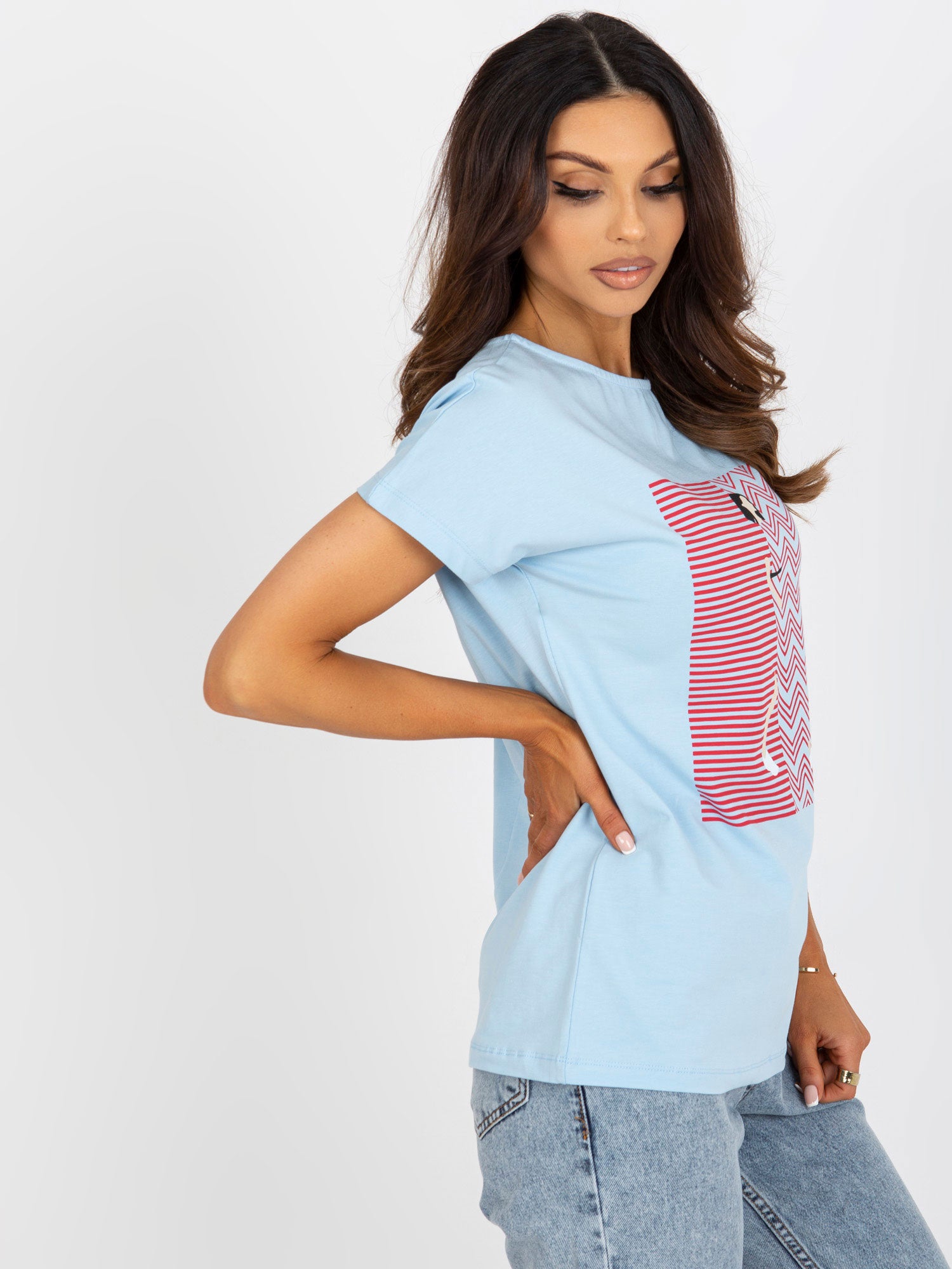 Jasnoniebieski bawełniany damski t-shirt z nadrukiem .