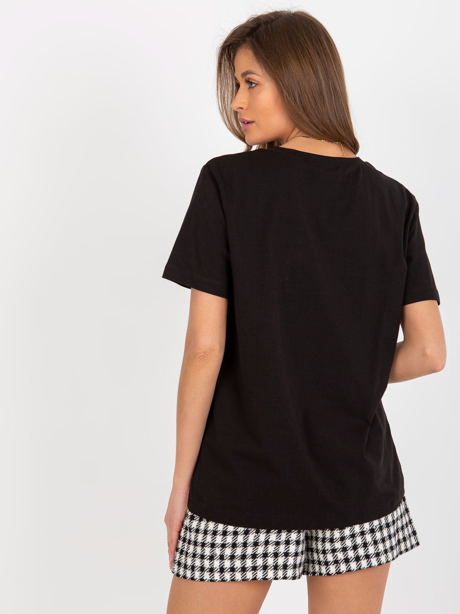Czarny bawełniany damski t-shirt z misiem i aplikacją .