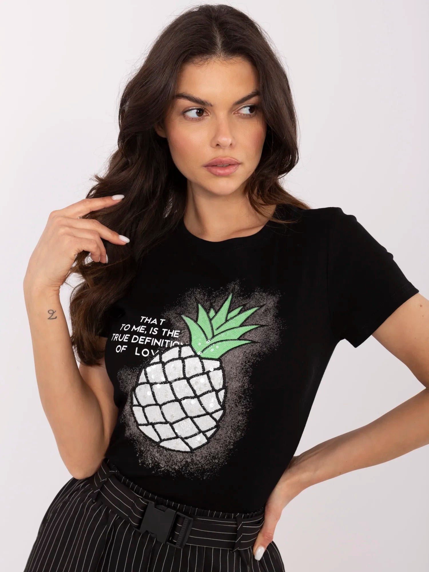 Wymiary t-shirtu w rozmiarze one size mierzone na płasko: szerokość pod pachami - 42 cm, długość rękawa - 16 cm (od szwu), szerokość w biodrach - 42 cm, długość całkowita - 60 cm. (motyw rozciągliwy)