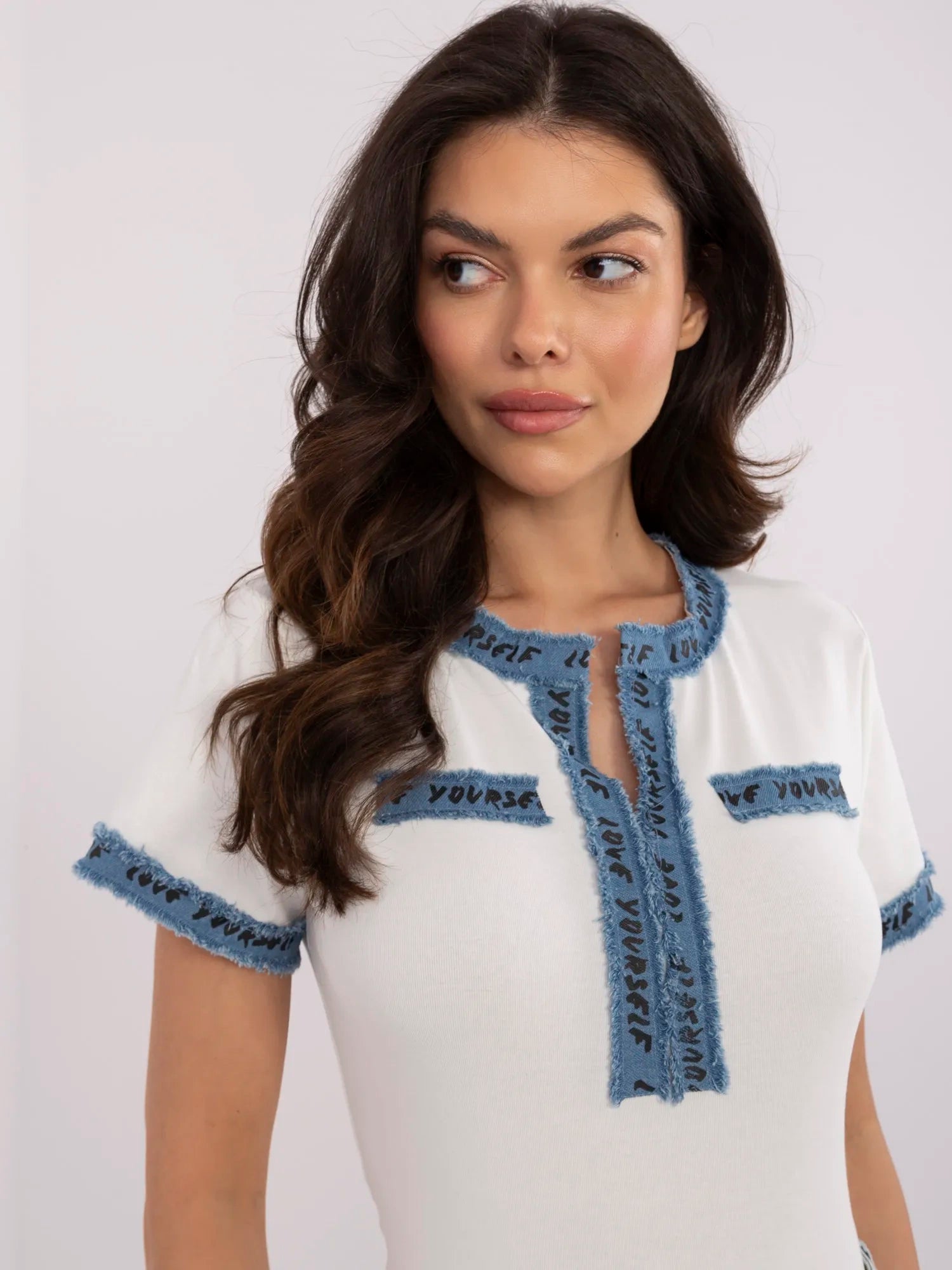 Wymiary bluzki w rozmiarze one size mierzone na płasko: szerokość pod pachami - 44 cm, długość rękawa - 20 cm (od szwu), szerokość w biodrach - 40 cm, długość całkowita - 55 cm (materiał rozciągliwy).