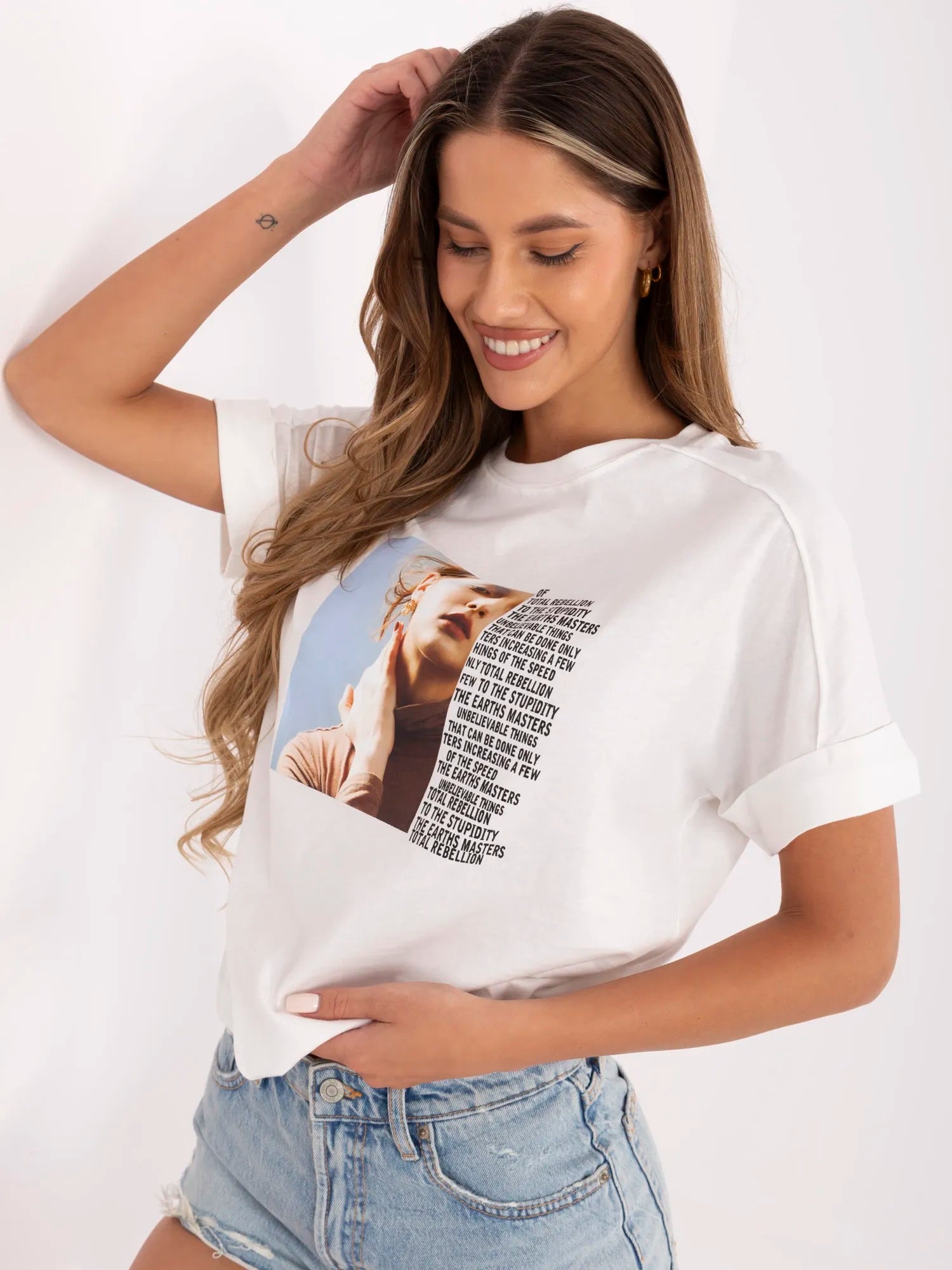 Wymiary t-shirtu w rozmiarze S mierzone na płasko: szerokość pod pachami - 55 cm, szerokość w biodrach - 52 cm, długość rękawa - 31 cm, długość całkowita - 61 cm
