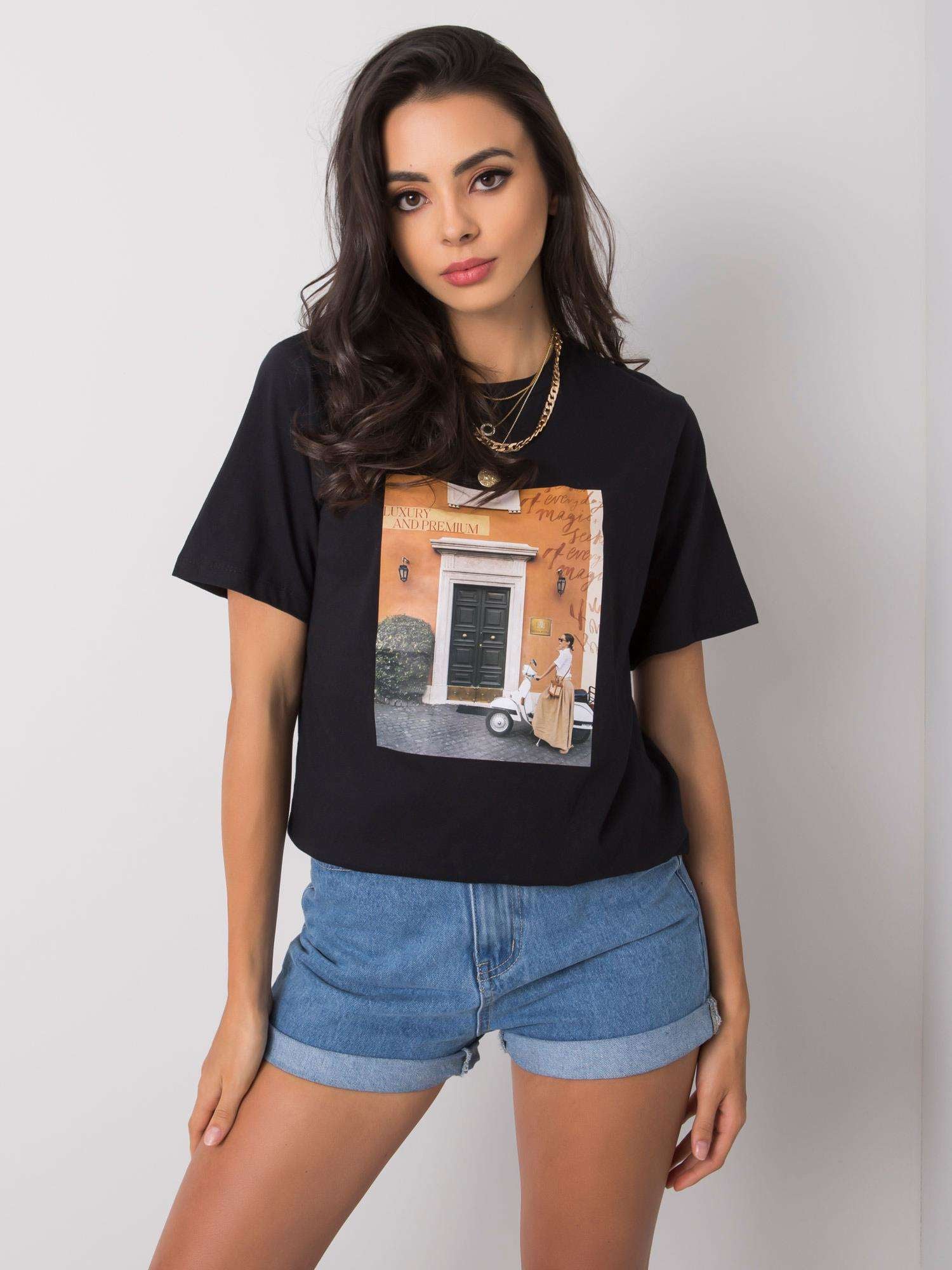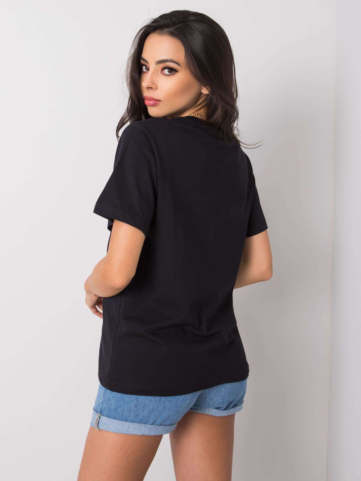 Czarny t-shirt z modowym nadrukiem.