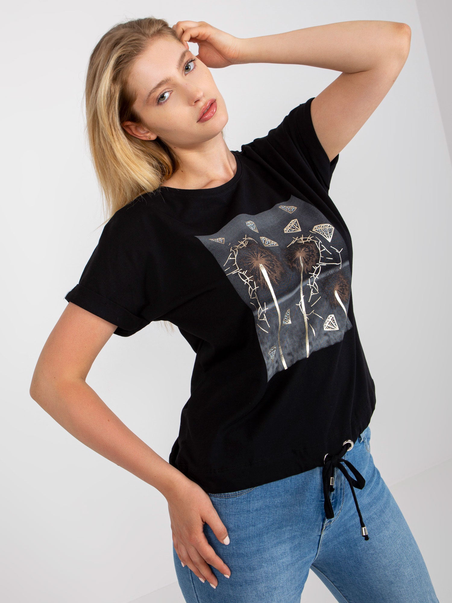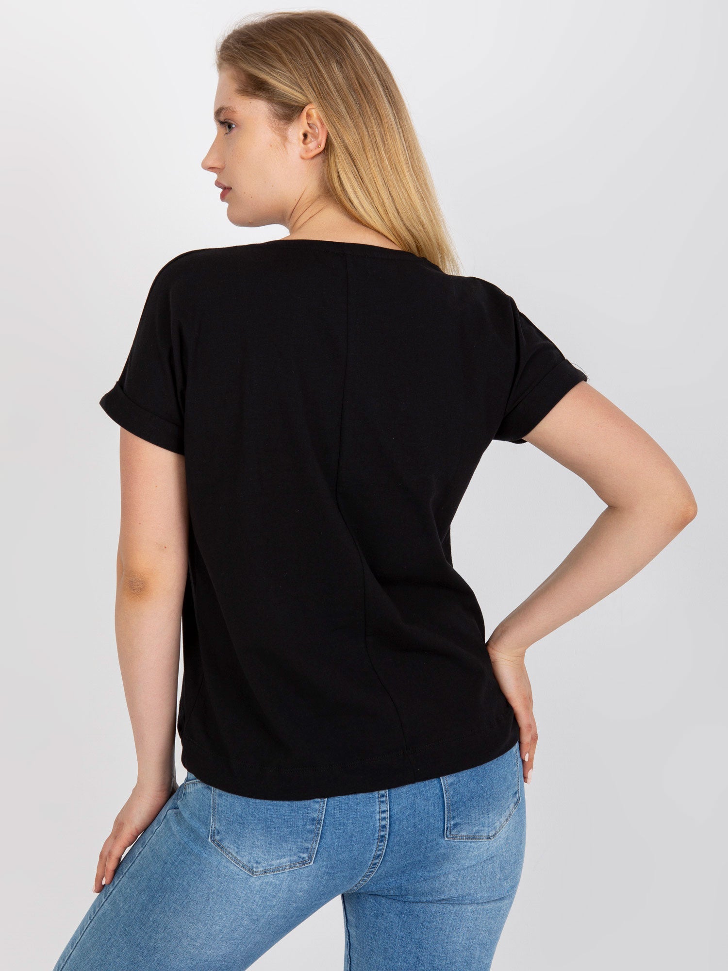 Wymiary t-shirta w rozmiarze one size mierzone na płasko: szerokość pod pachami - 54 cm, długość całkowita - 65 cm.