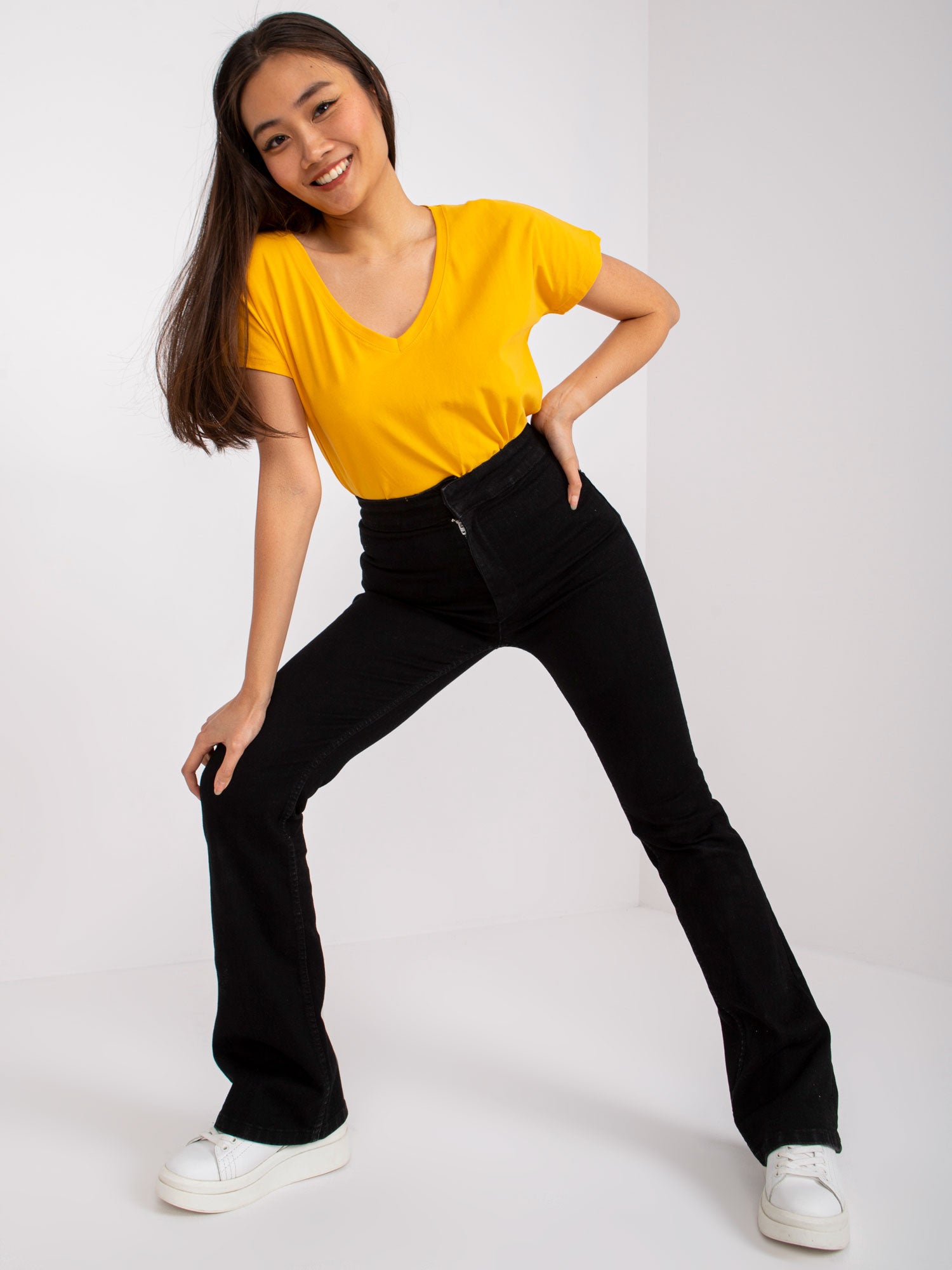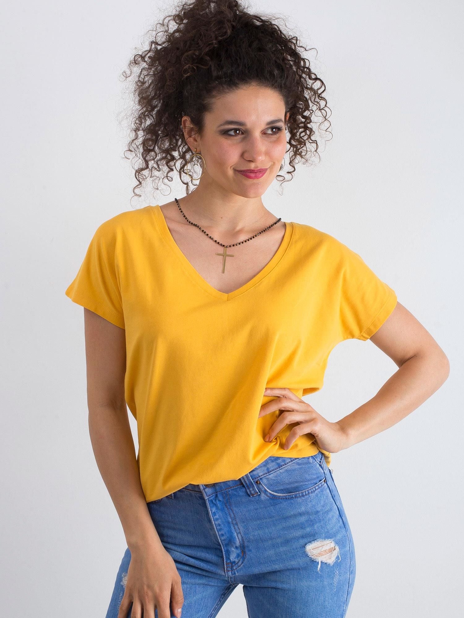 Bawełniany t-shirt V-neck jasnopomarańczowy.