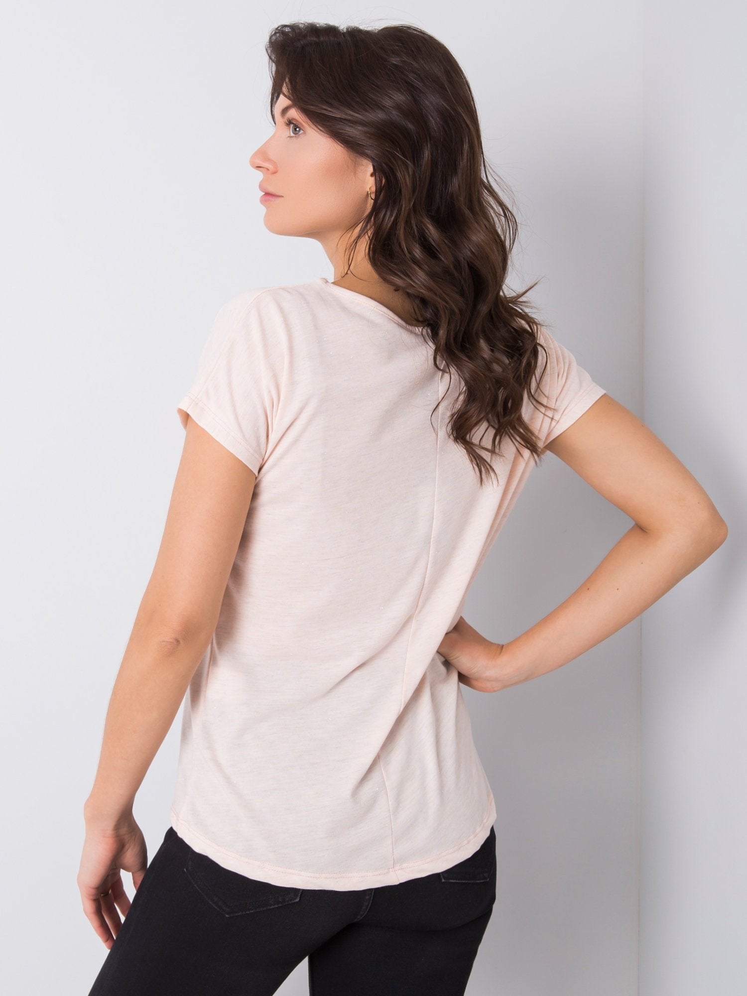 Jasnoróżowy t-shirt z dekoltem w serek .