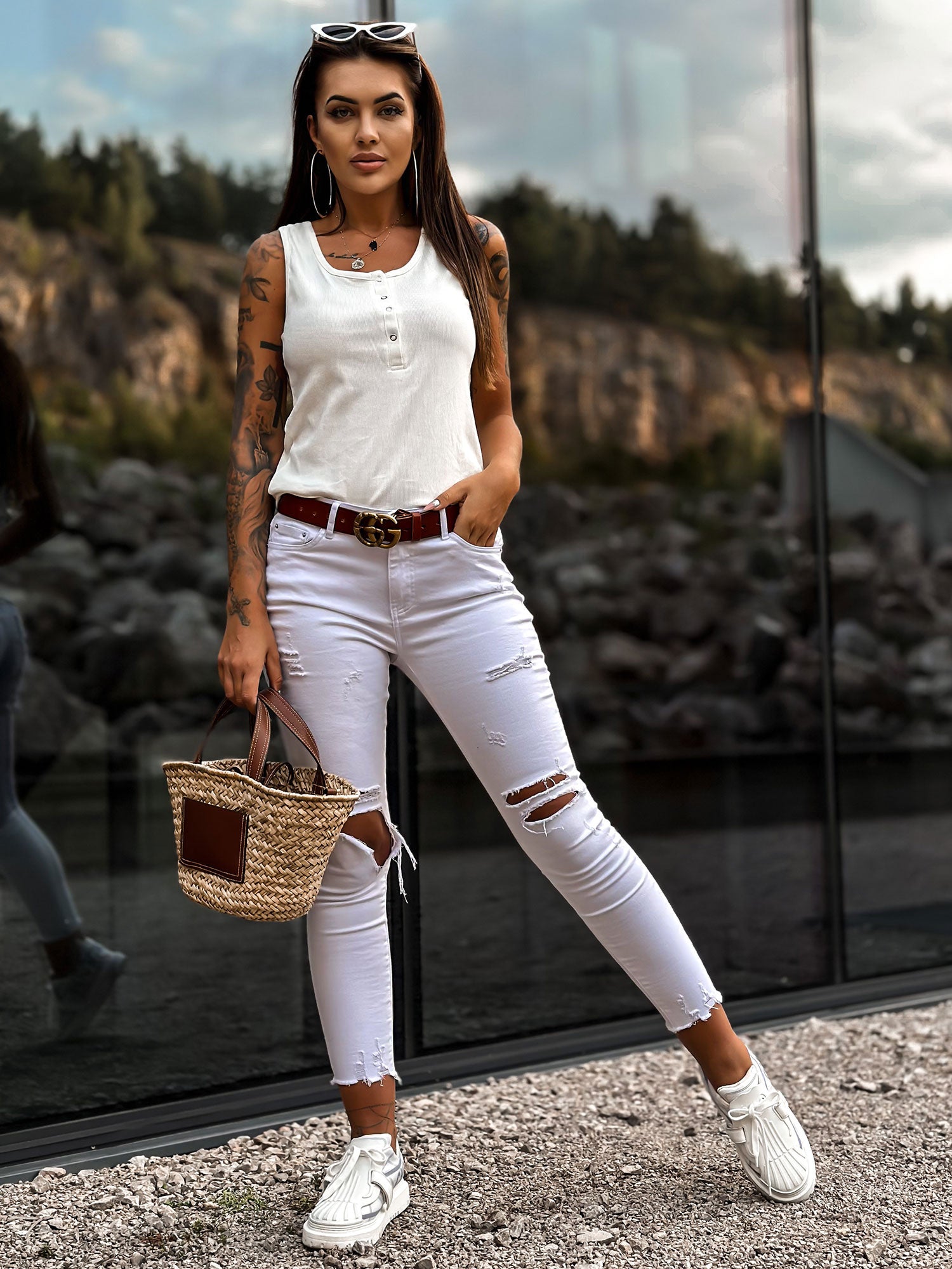 Modelka ma na sobie rozmiar S. Wymiary modelki: wzrost 179 cm, biust 93 cm, talia 67 cm, biodra 93 cm.