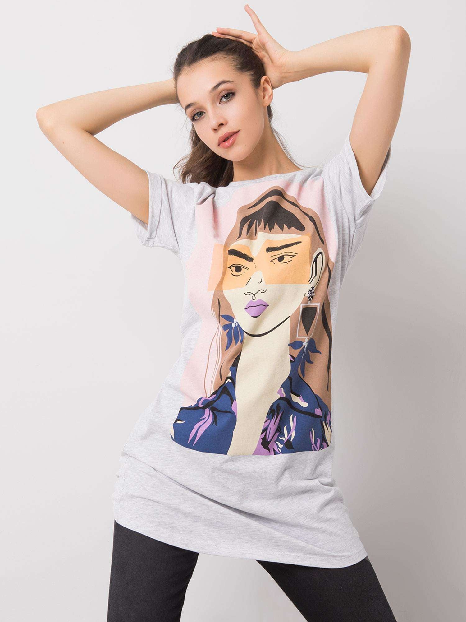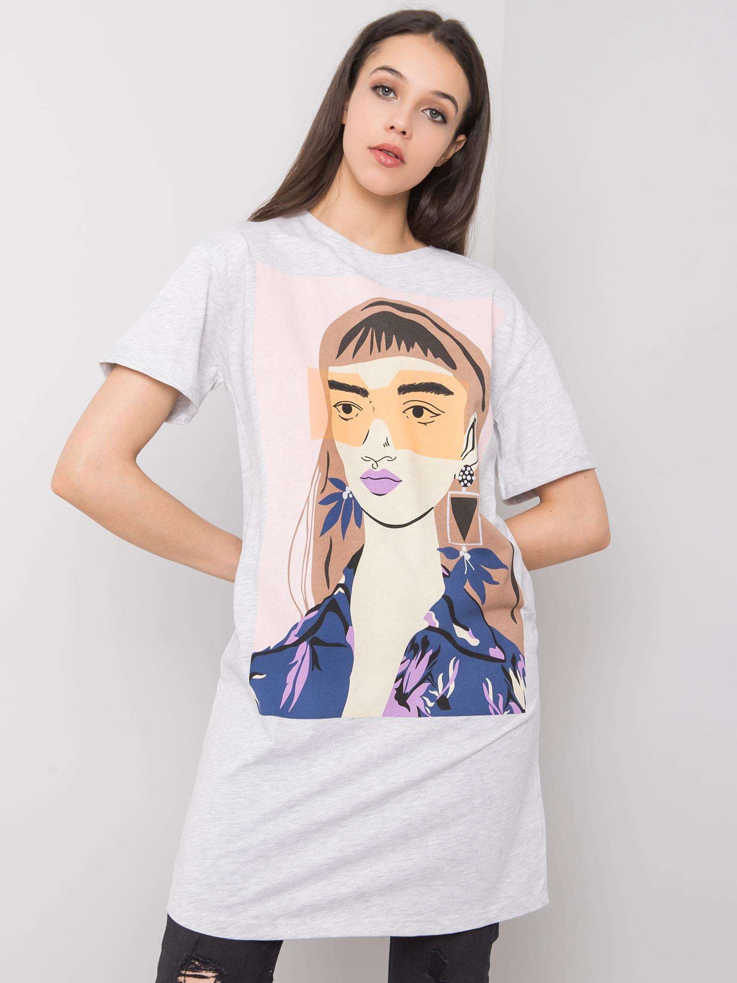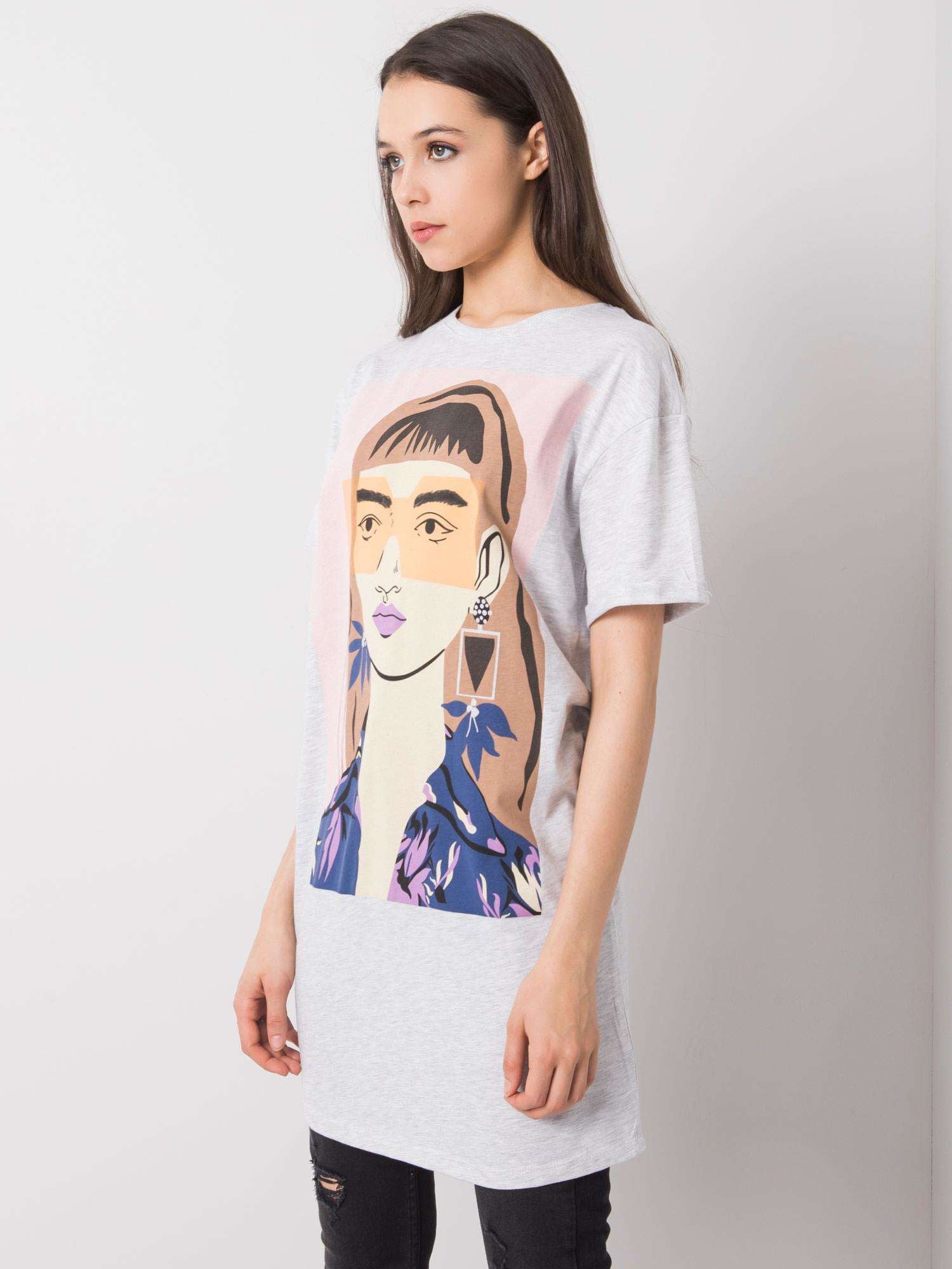 SUBLEVEL Jasnoszara tunika z nadrukiem.