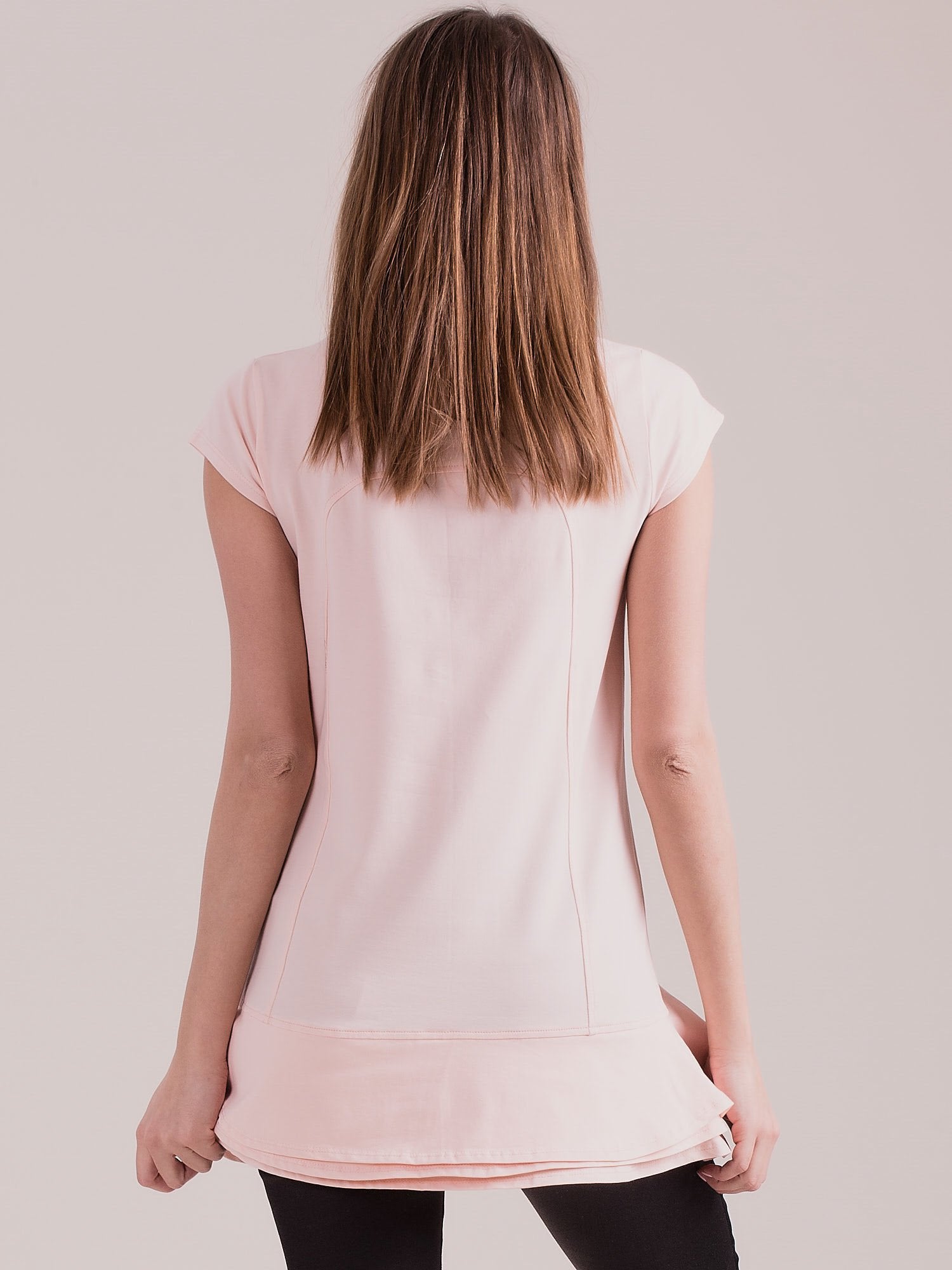 Tunika jasnoróżowa z warstwowymi falbanami.