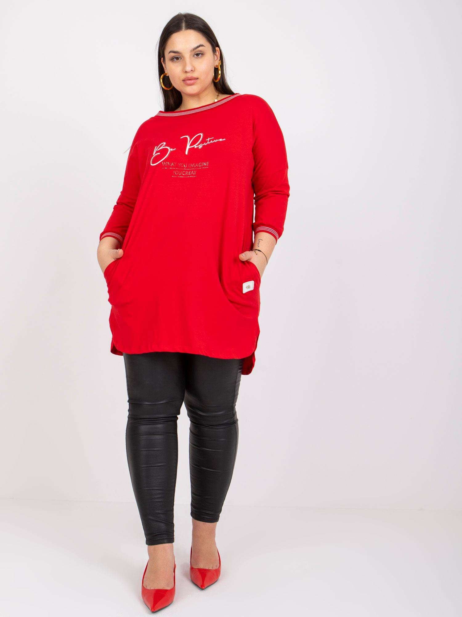 Wymiary tuniki w rozmiarze one size mierzone na płasko: szerokość pod pachami - 67 cm, długość rękawa - 42 cm, długość całkowita: przód - 81 cm , tył - 87 cm .