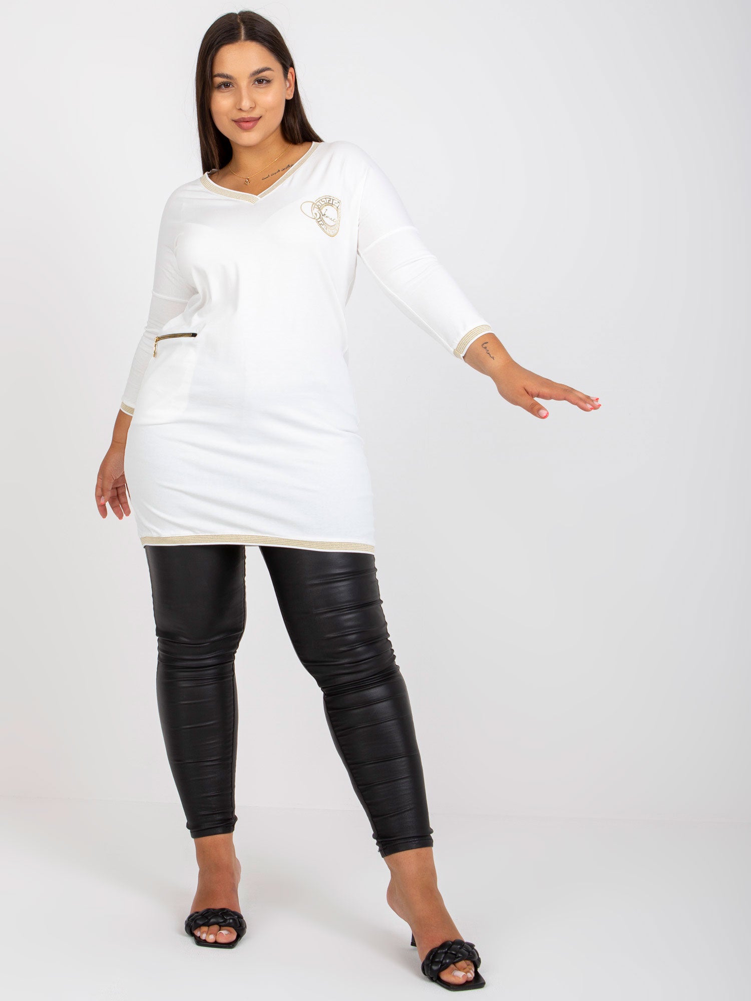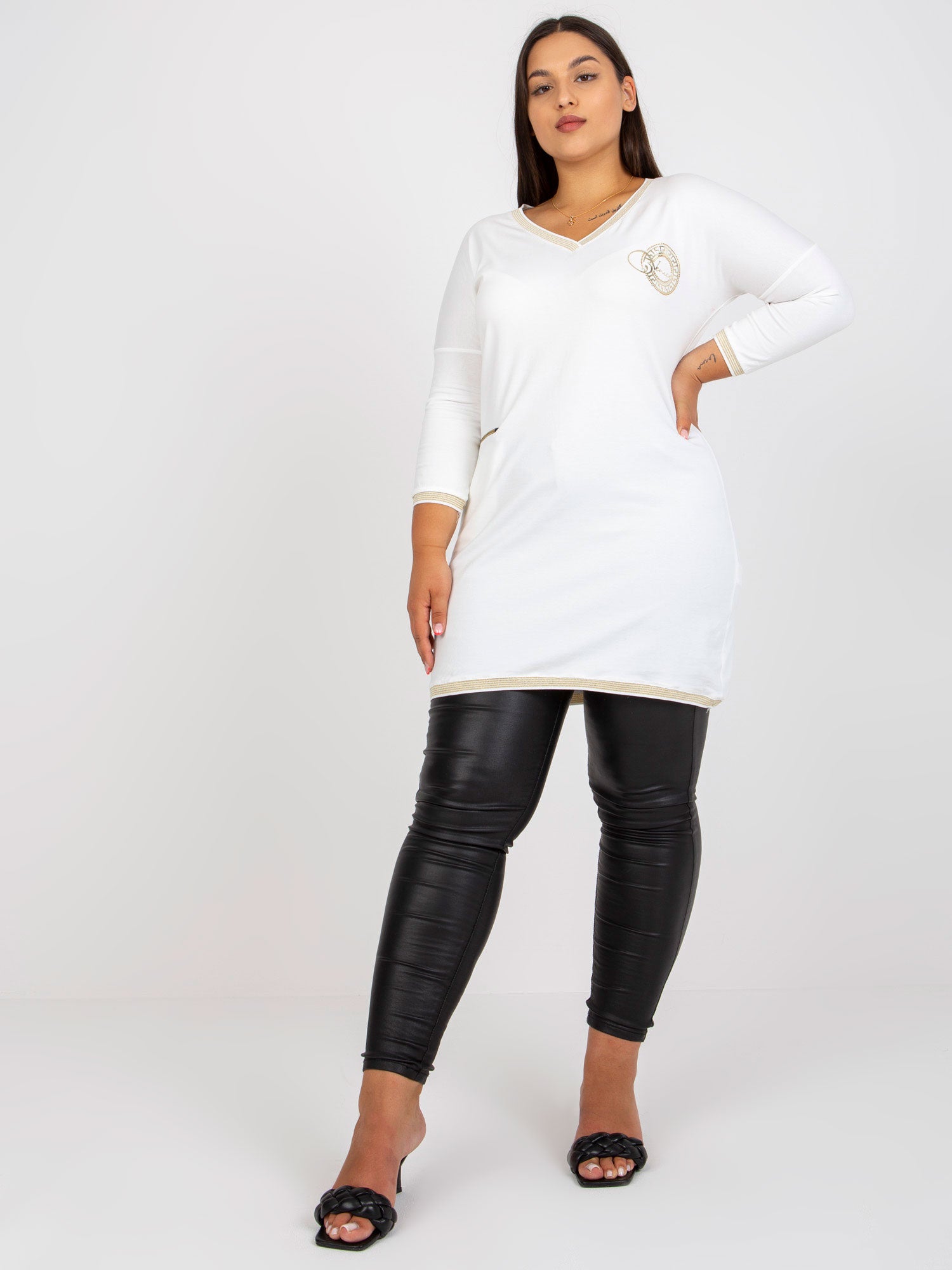 Wymiary tuniki w rozmiarze one size mierzone na płasko: szerokość pod pachami - 57 cm, długość rękawa - 41 cm, długość całkowita - 83 cm.
