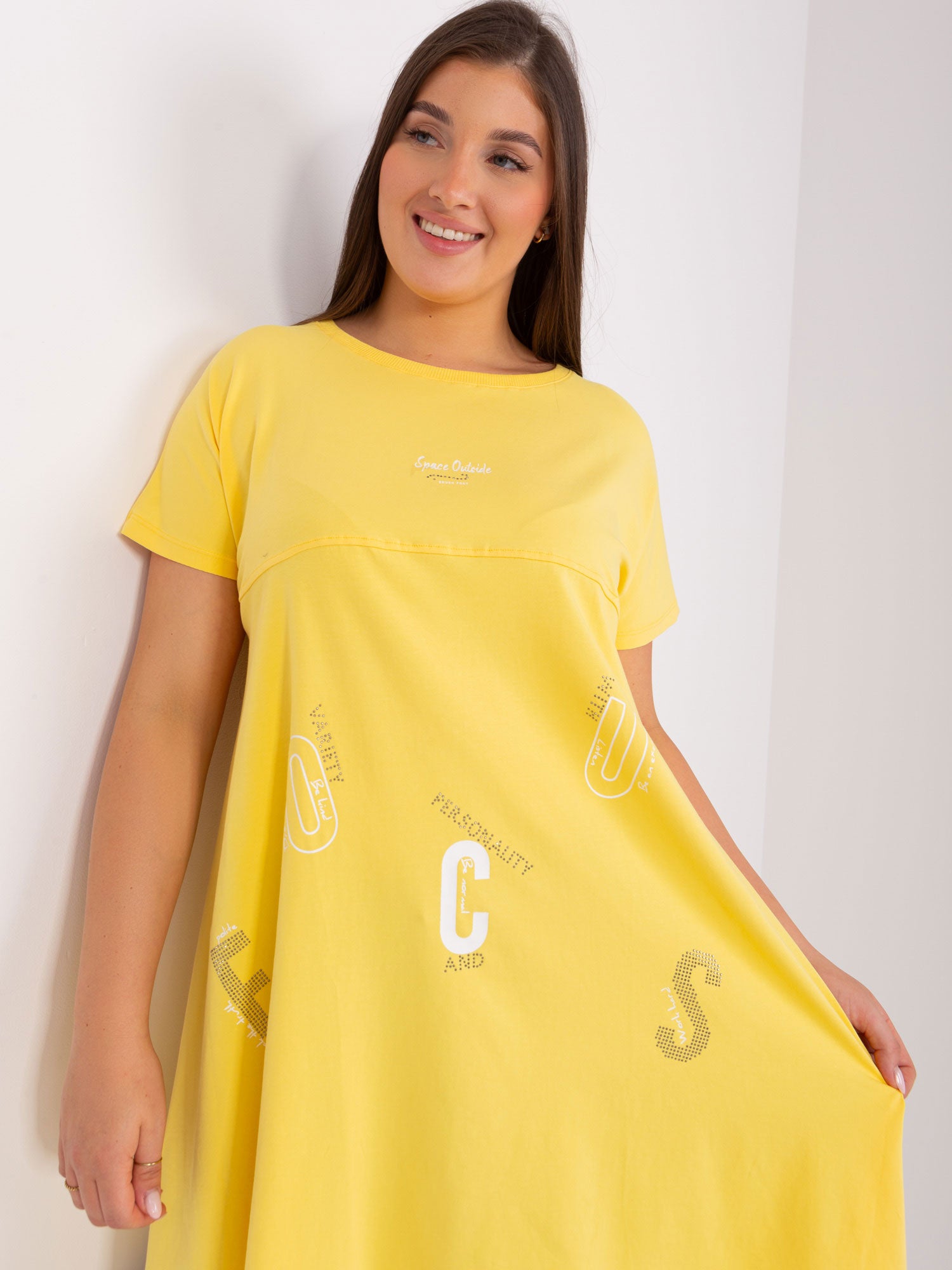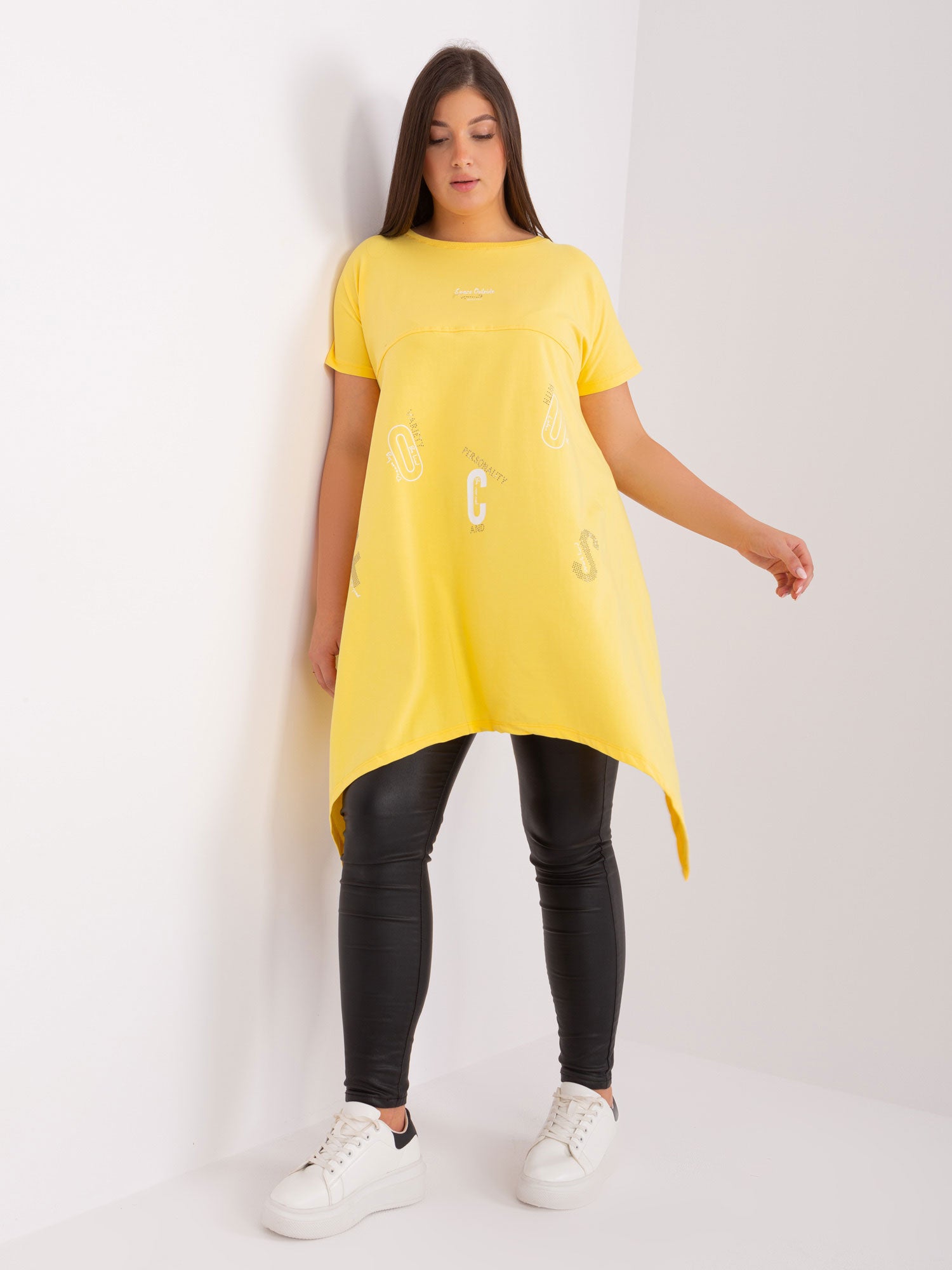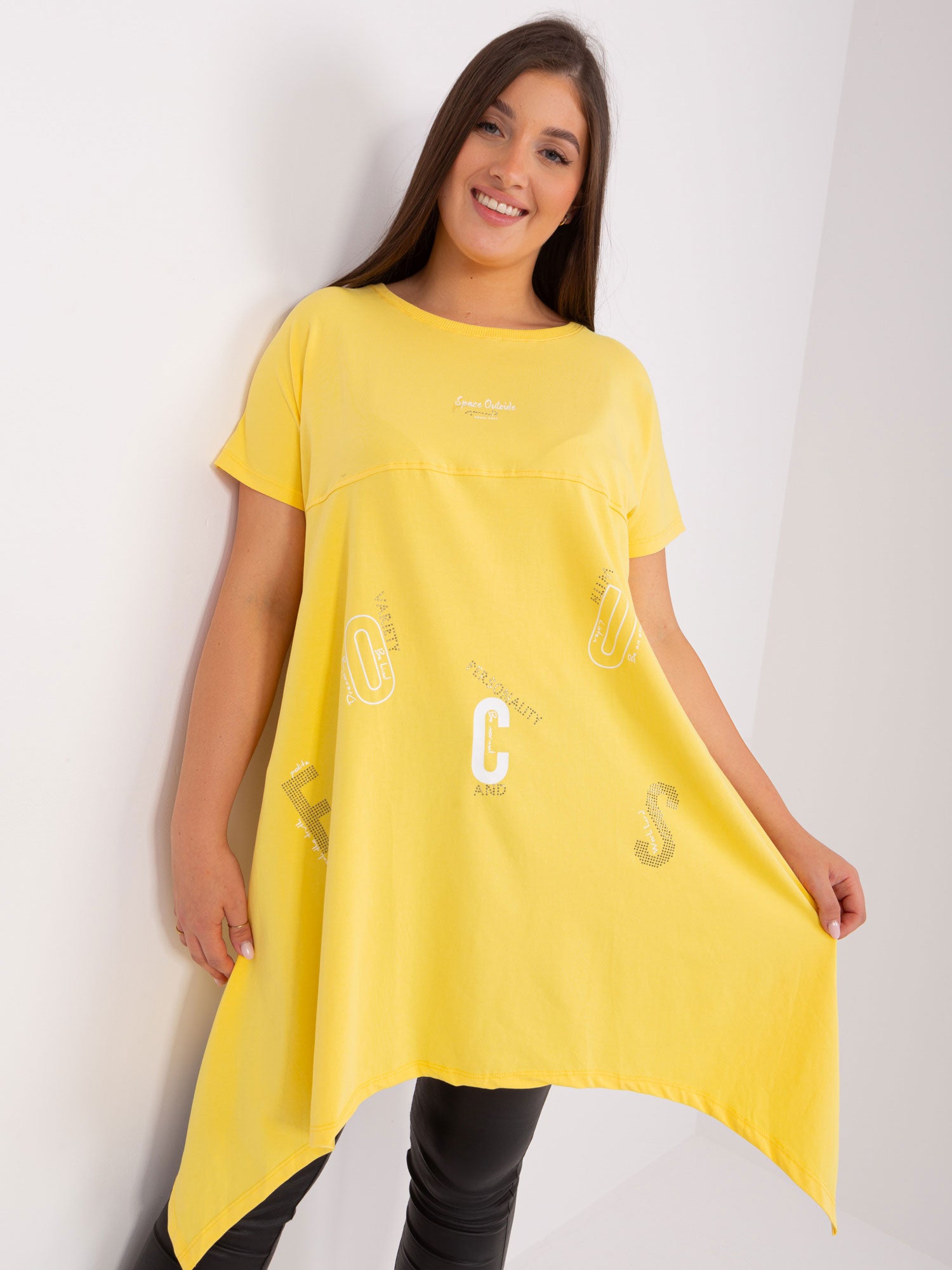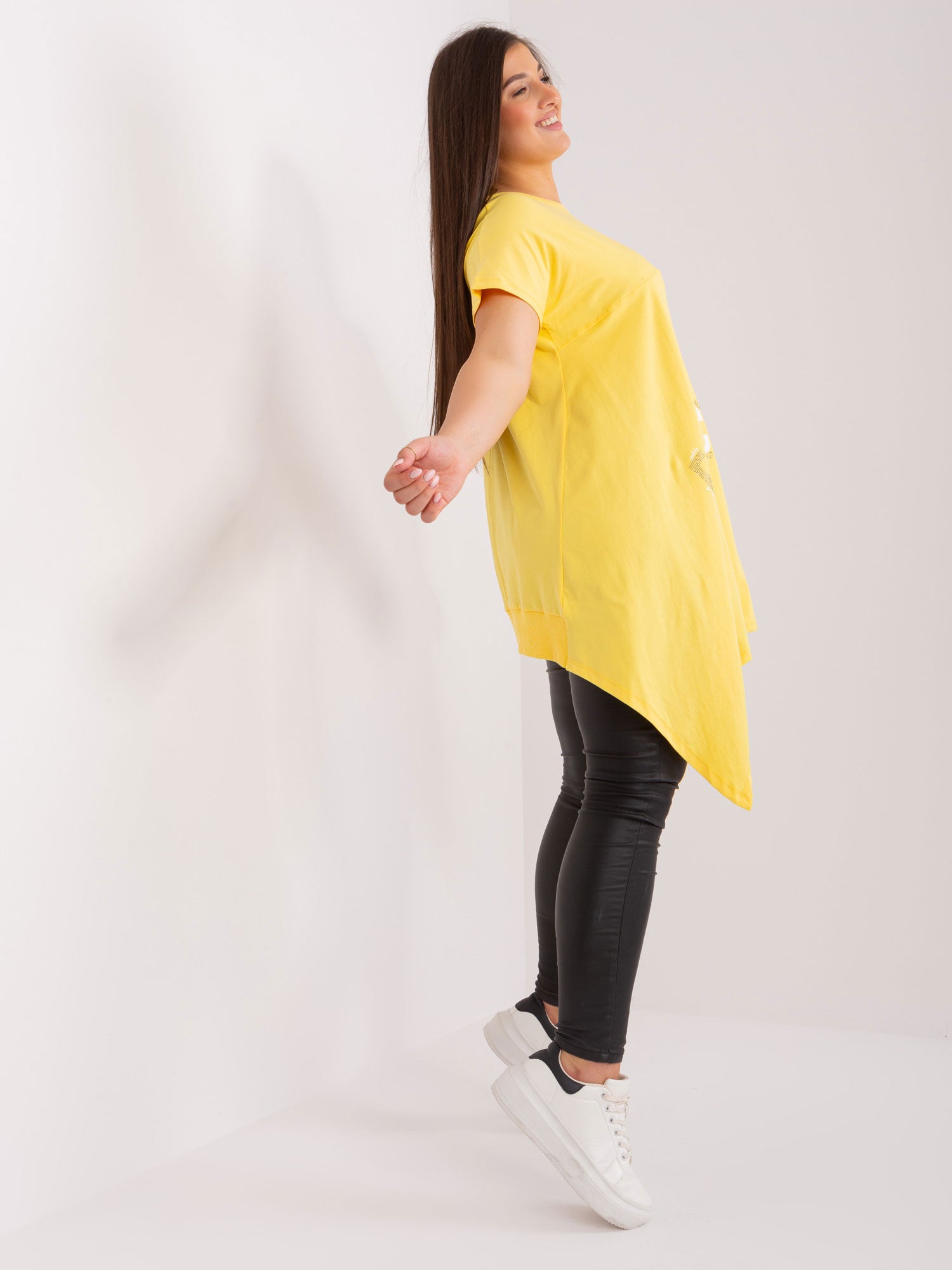 Żółta asymetryczna bluzka plus size z nadrukiem .