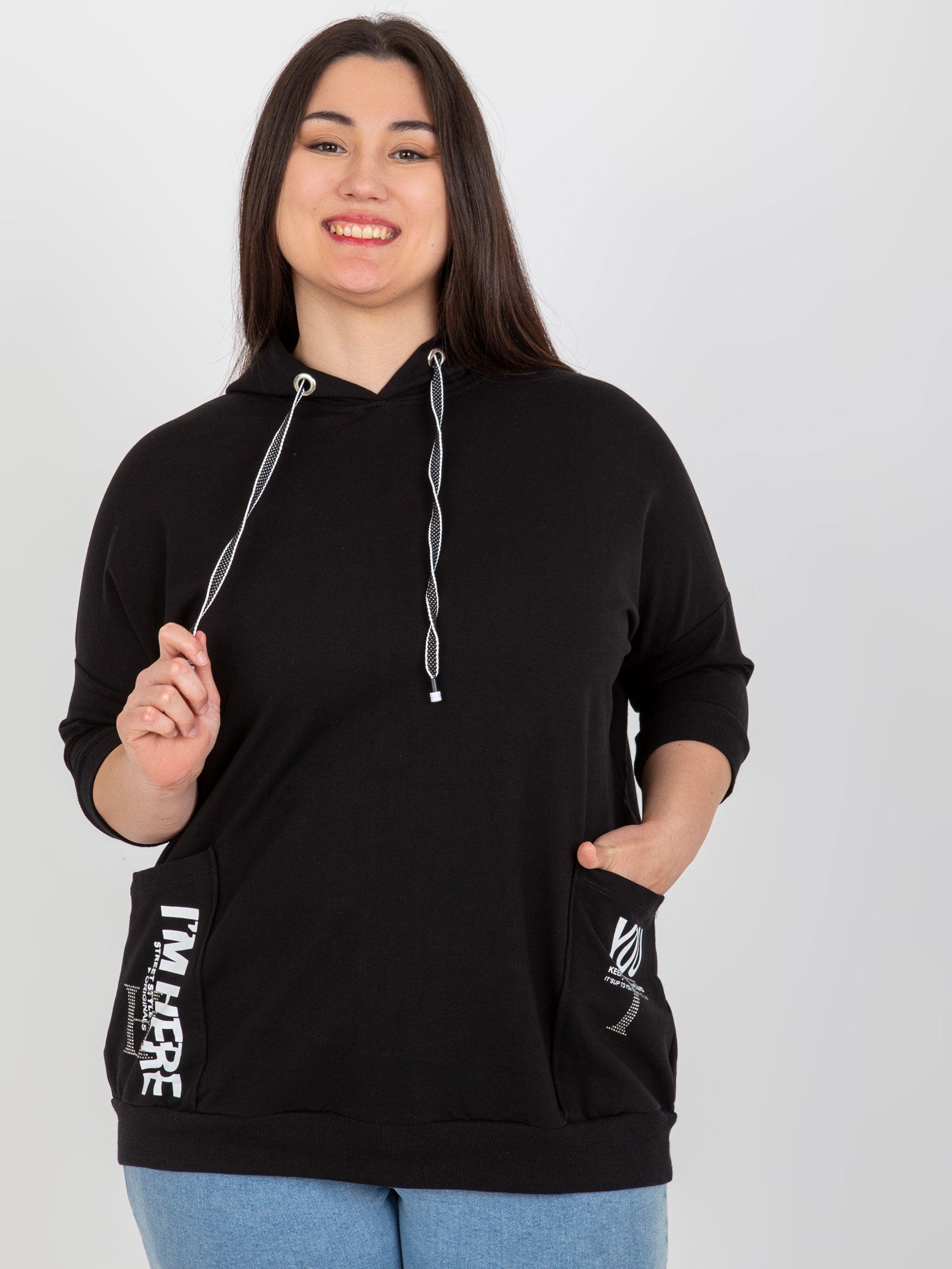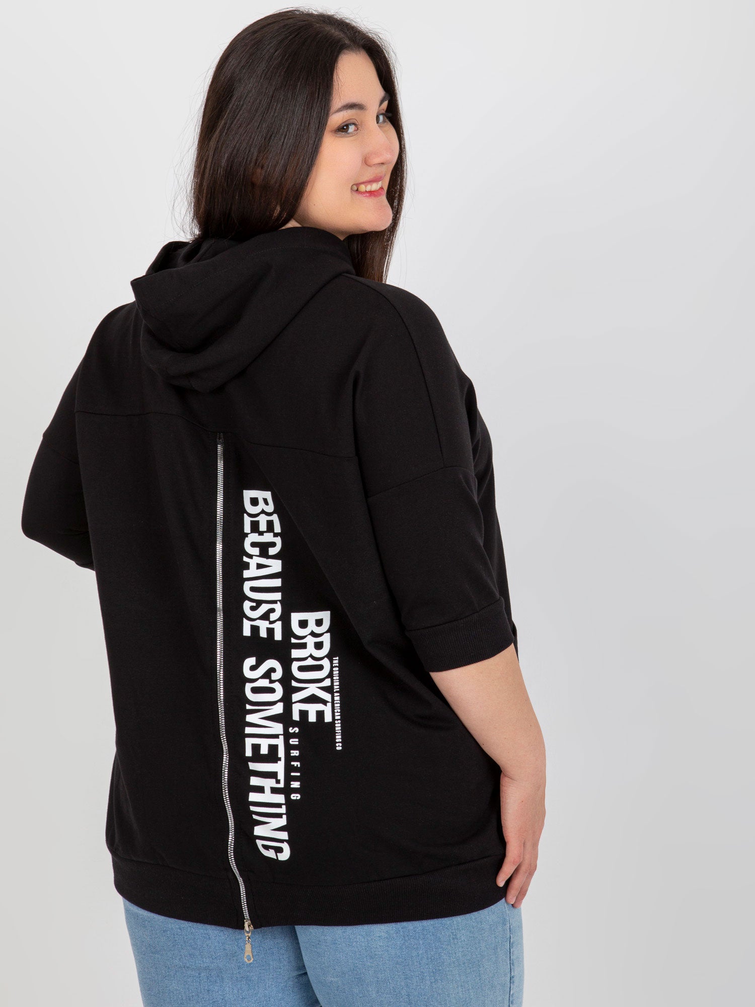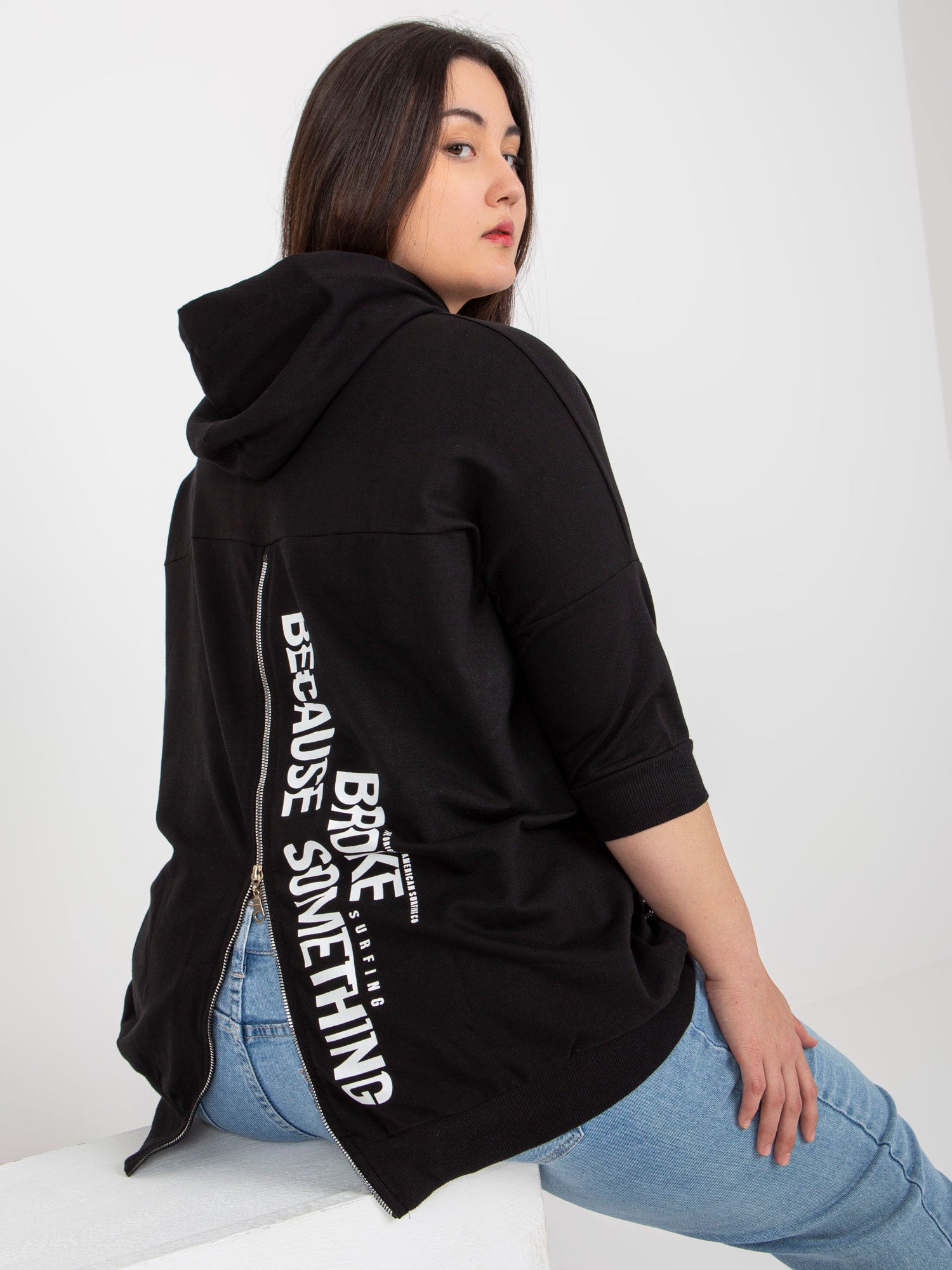 Czarna bluza plus size z zamkiem na plecach .