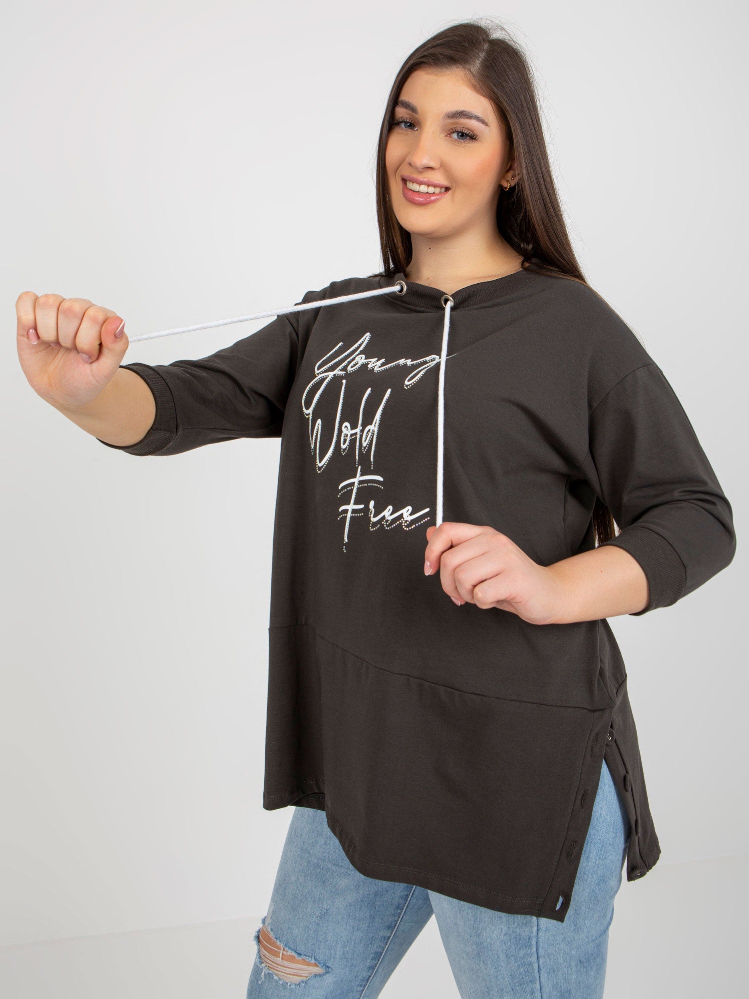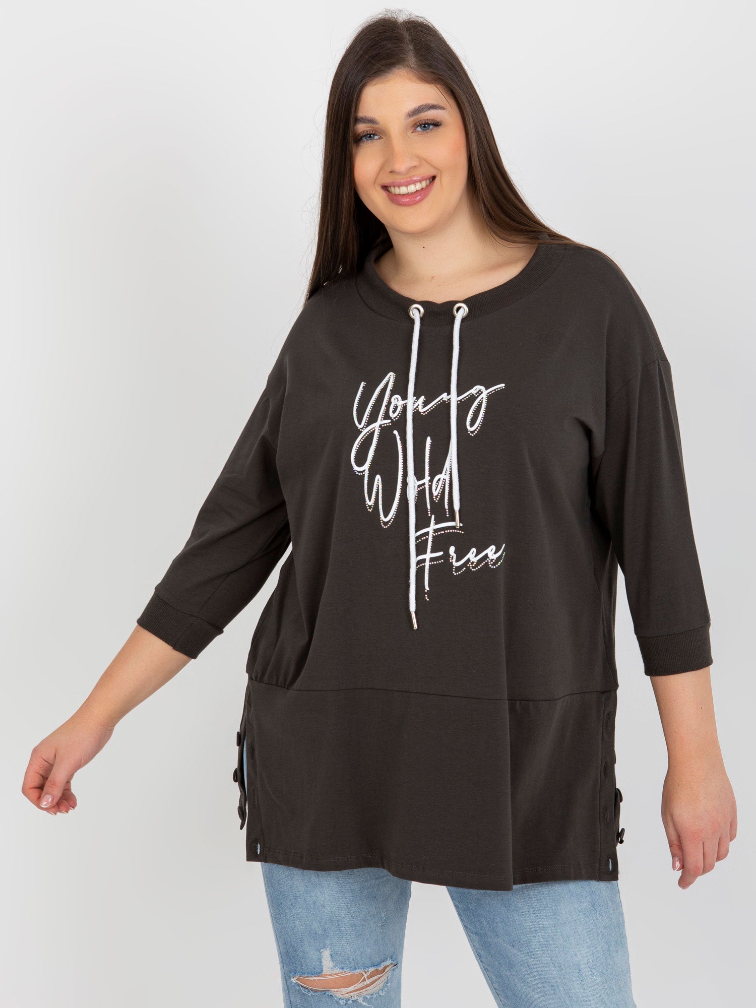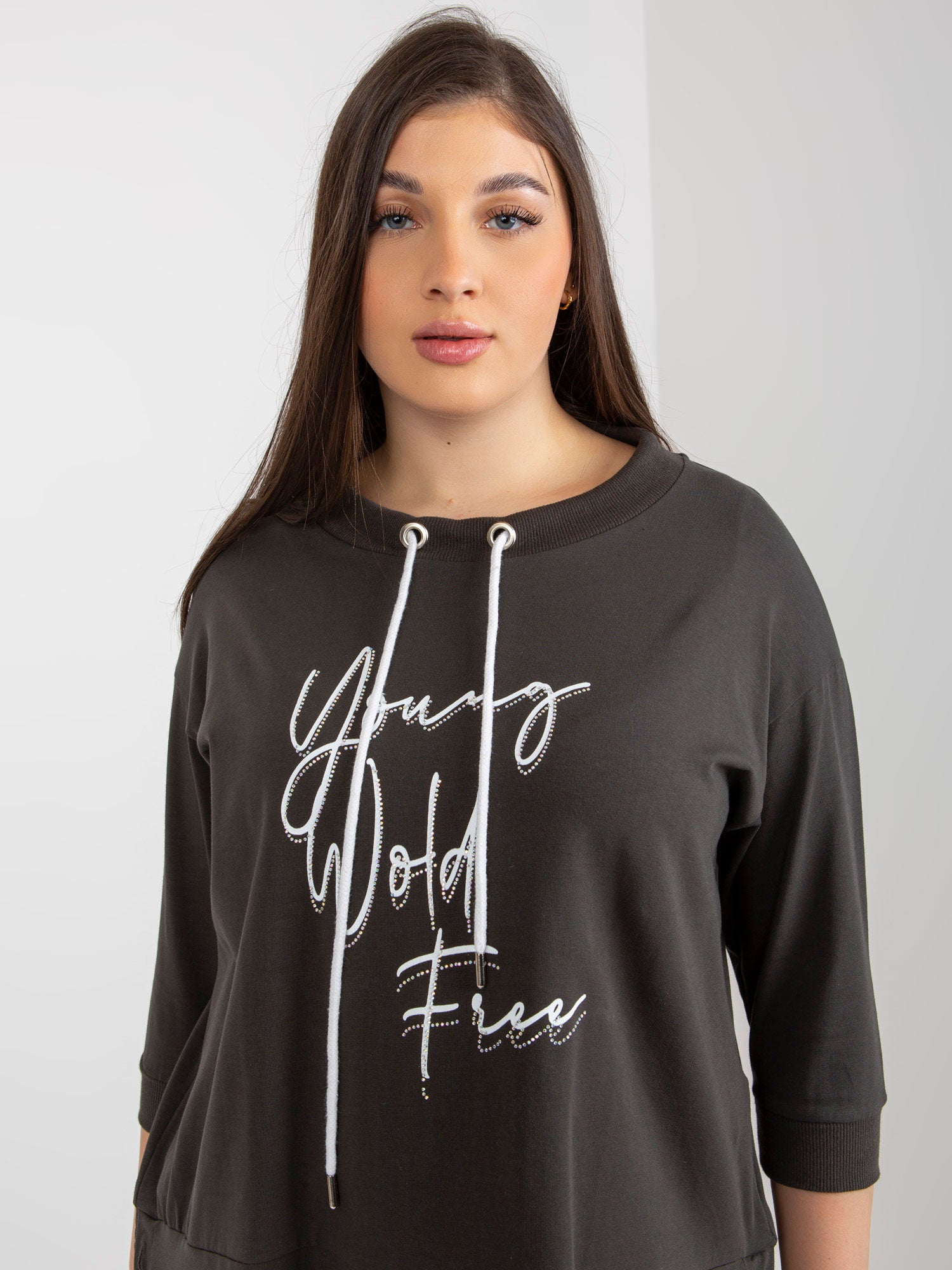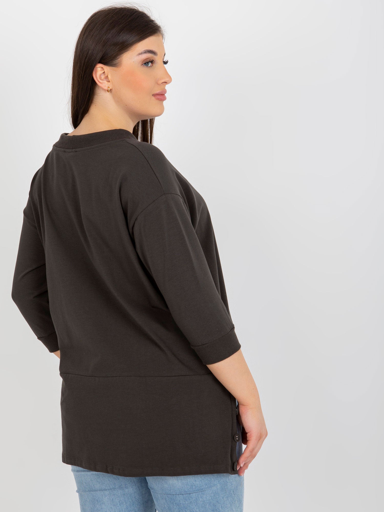 Khaki dłuższa bluzka plus size z rękawem 3/4 .