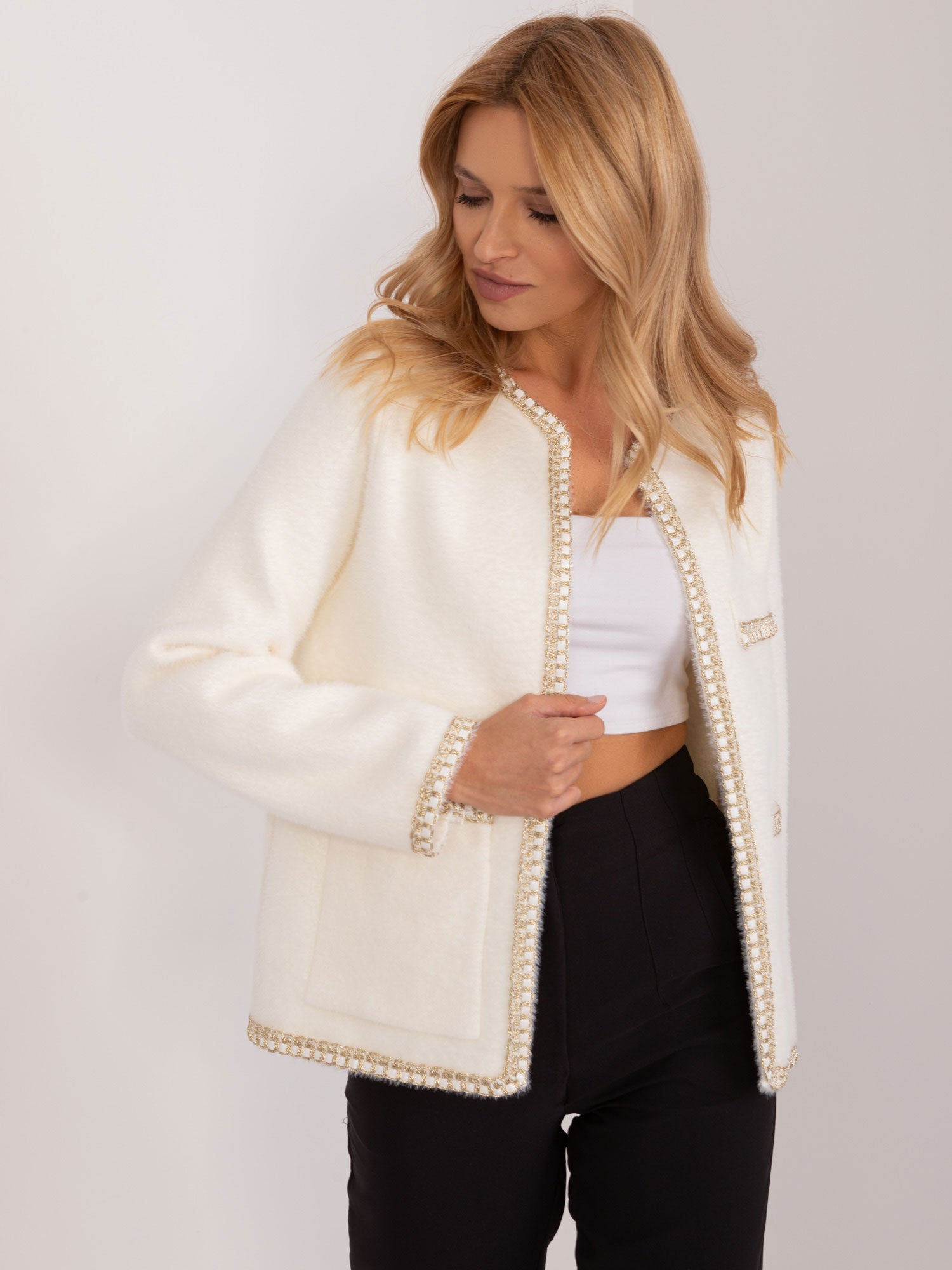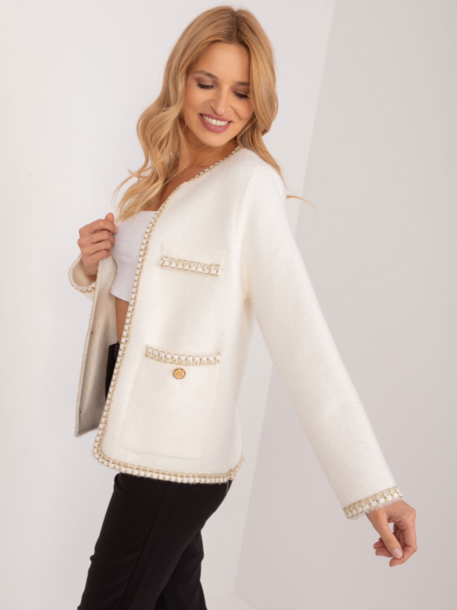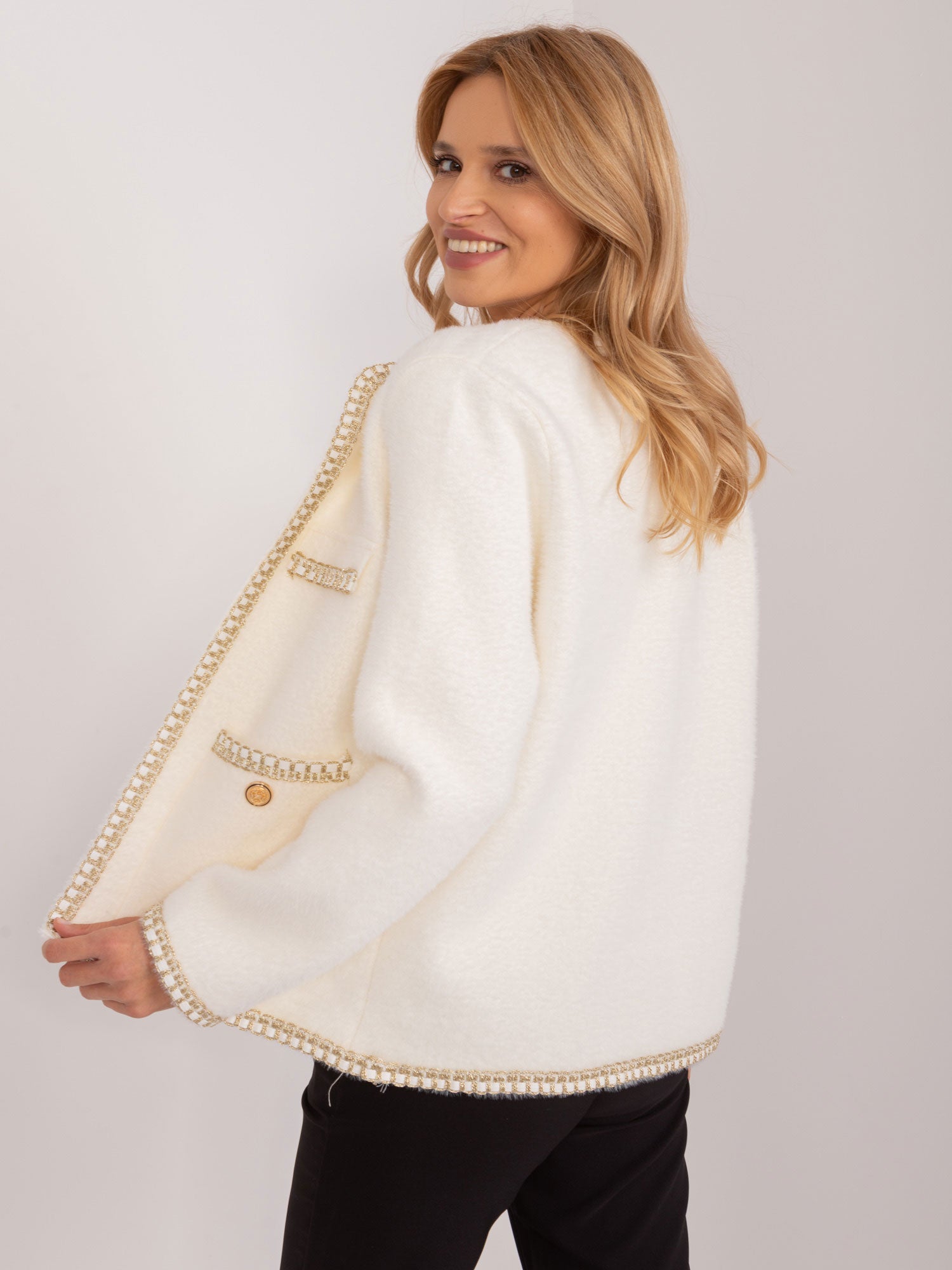 Wymiary żakietu w rozmiarze one size7 mierzone na płasko: szerokość pod pachami - 50 cm, długość rękawa - 59 cm, długość całkowita - 62 cm.