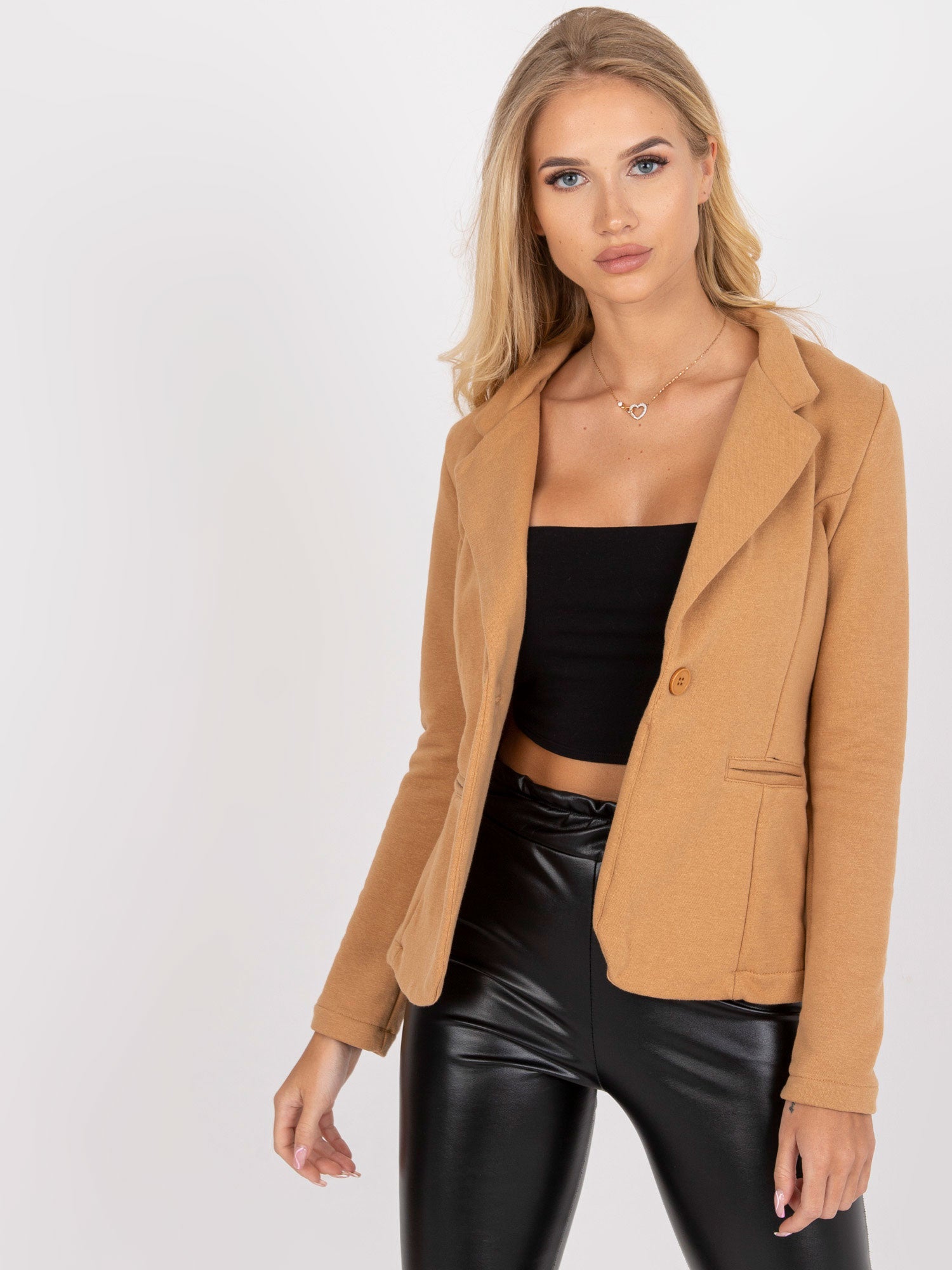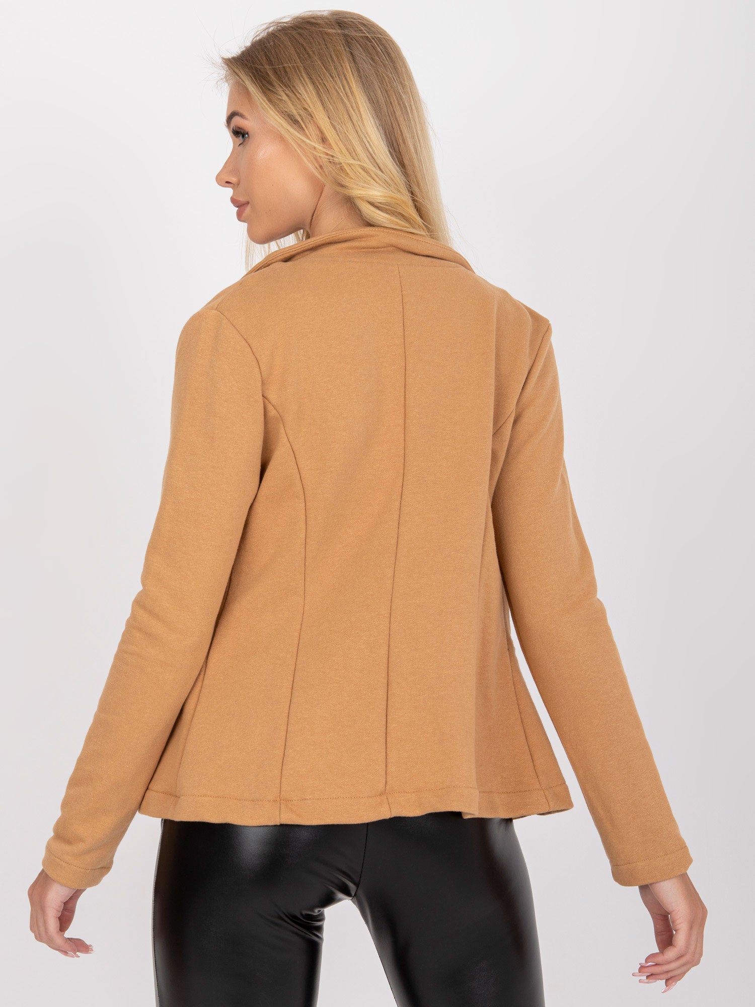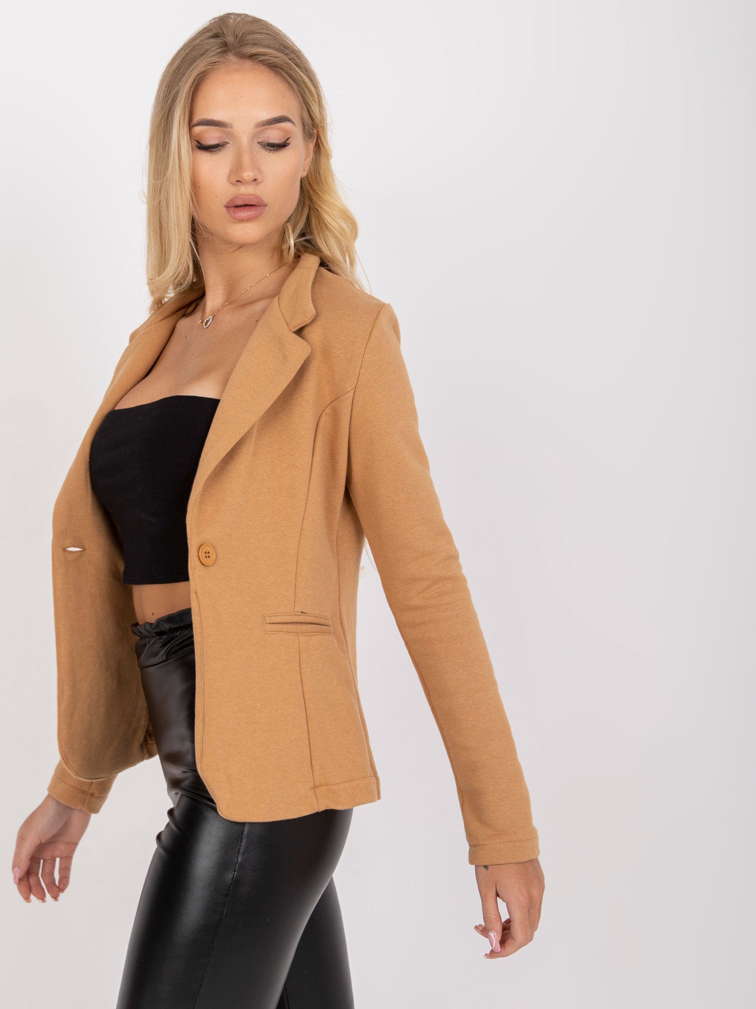 Wymiary żakietu w rozmiarze S mierzone na płasko: szerokość pod pachami - 45 cm, długość całkowita - 58 cm, długość rękawa - 64 cm.