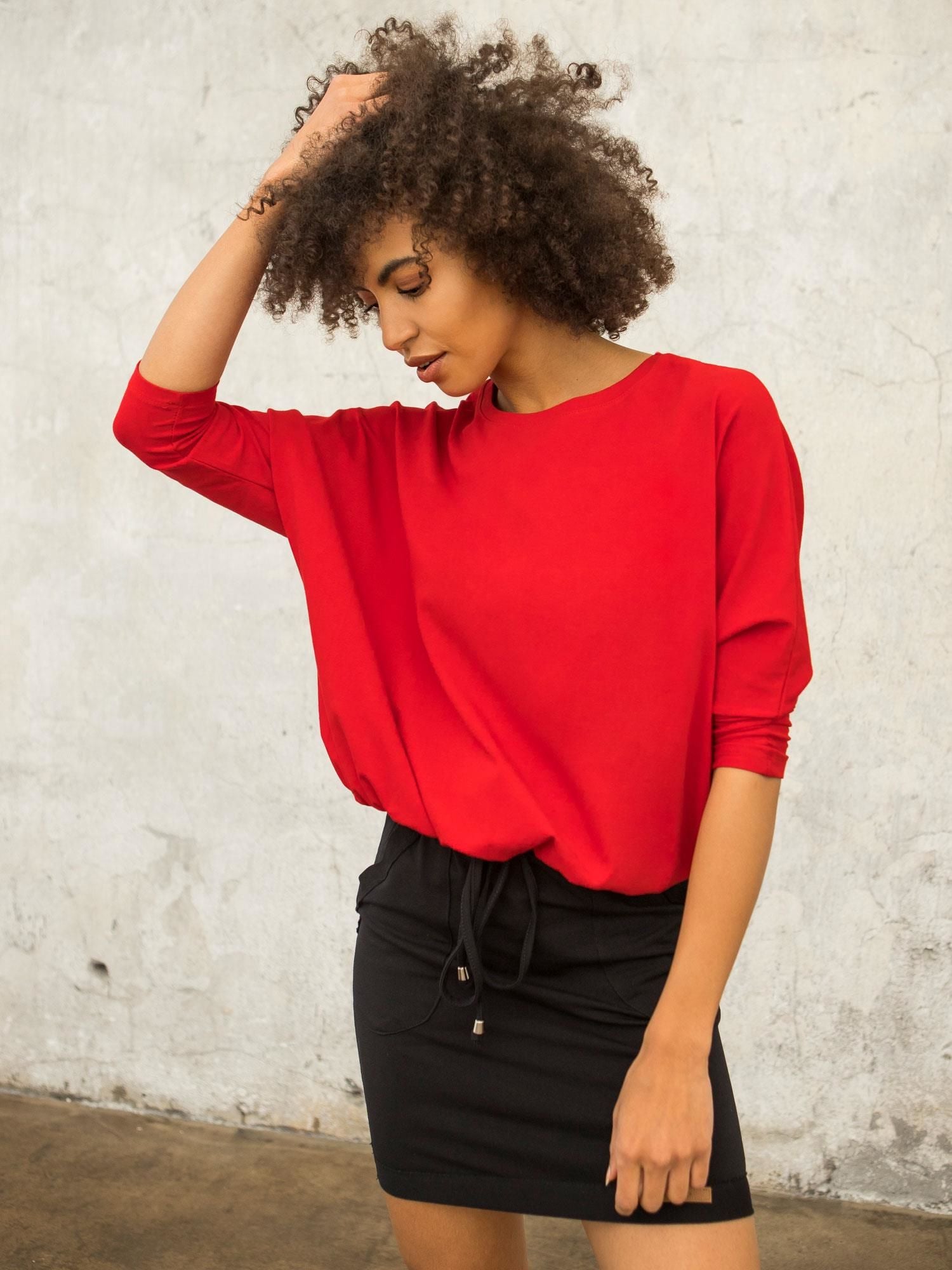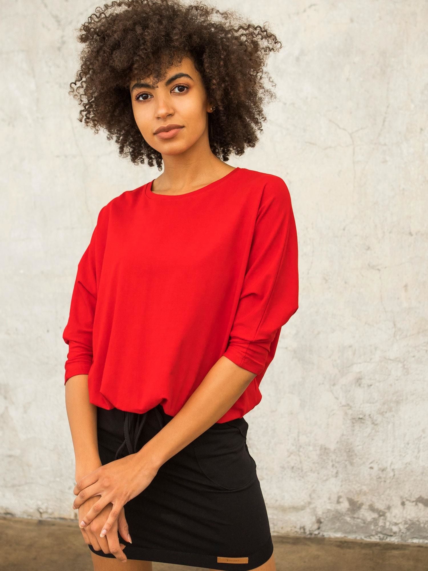 Czerwona bluzka oversize FOR FITNESS. Z najnowszej kolekcji ubrań damskich idealnych do codziennych i sportowych stylizacji.