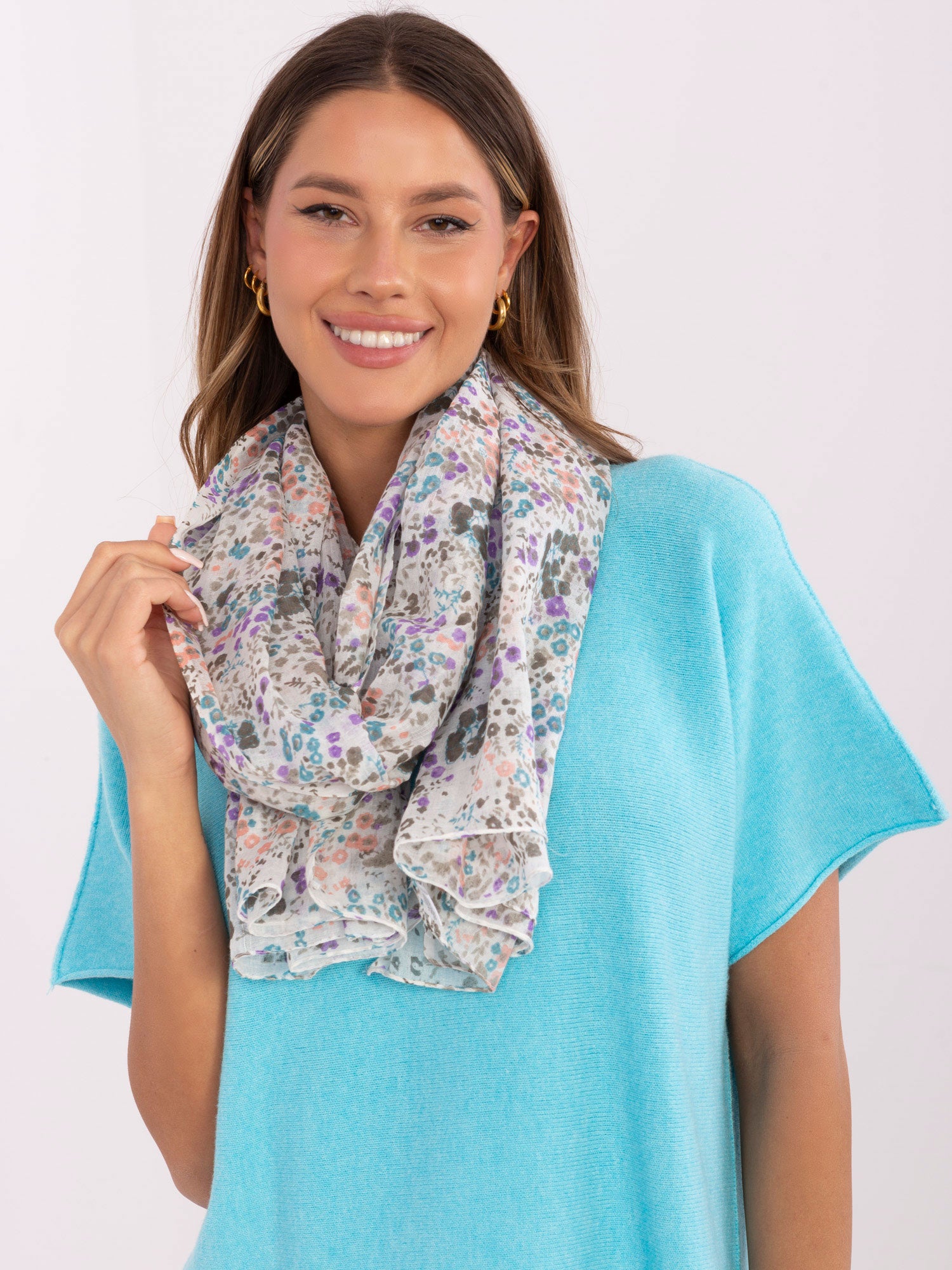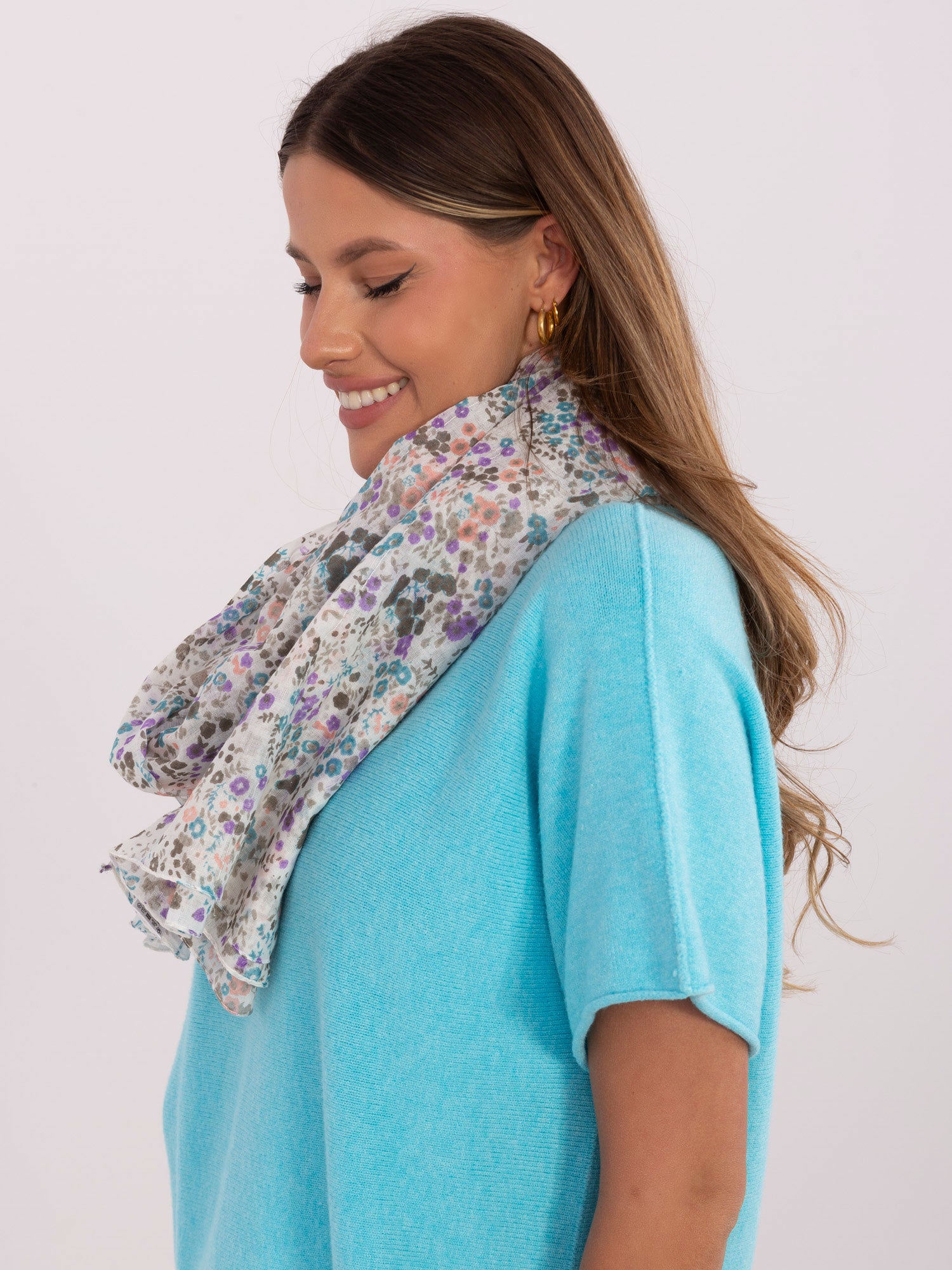 Biało-różowa damska chusta z bawełny .