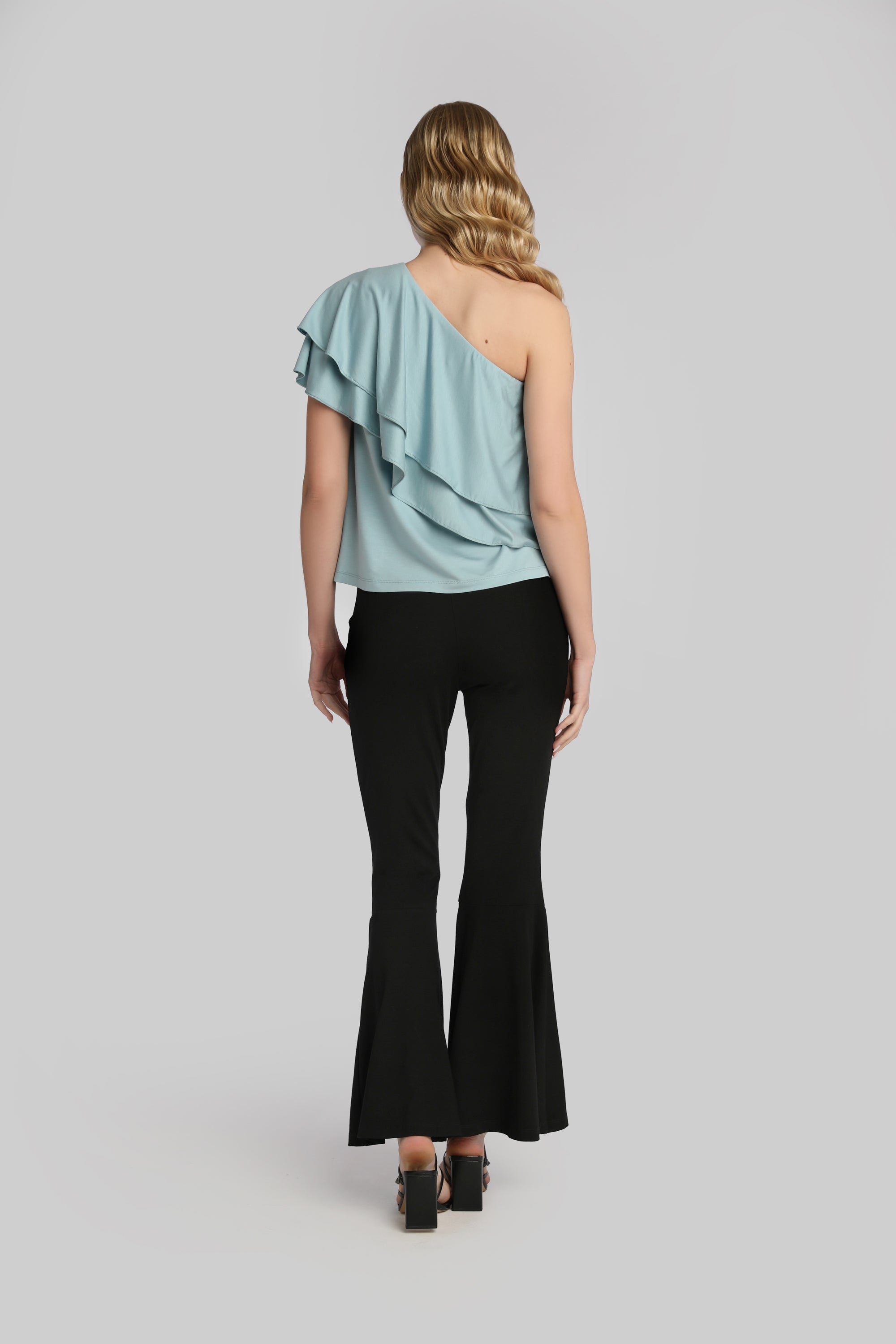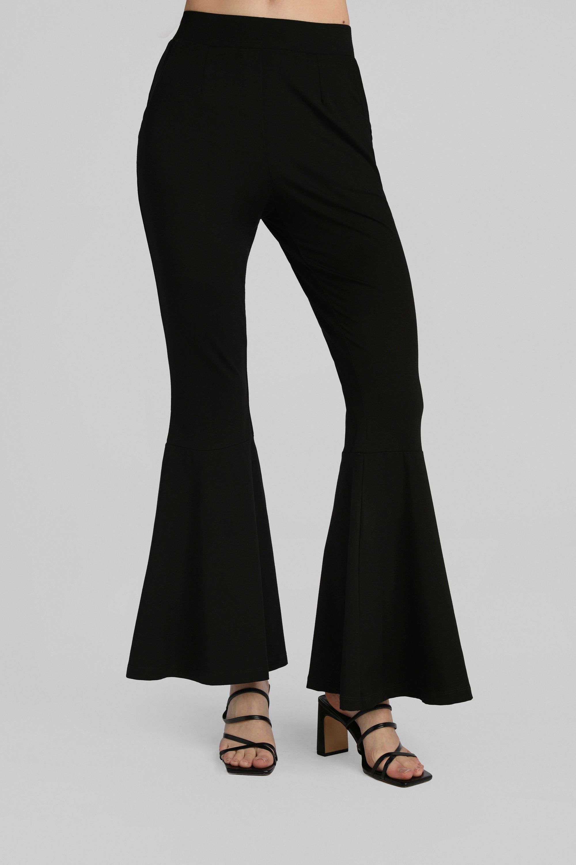 Spodnie dopasowane w biodrach. Nogawki rozszerzają się od kolan w dół. Model z kieszeniami. P.S. It’s ABBA 70s vibes! Załóż je i zatańcz do „Dancing Queen” albo „Gimme! Gimme! Gimme!”.