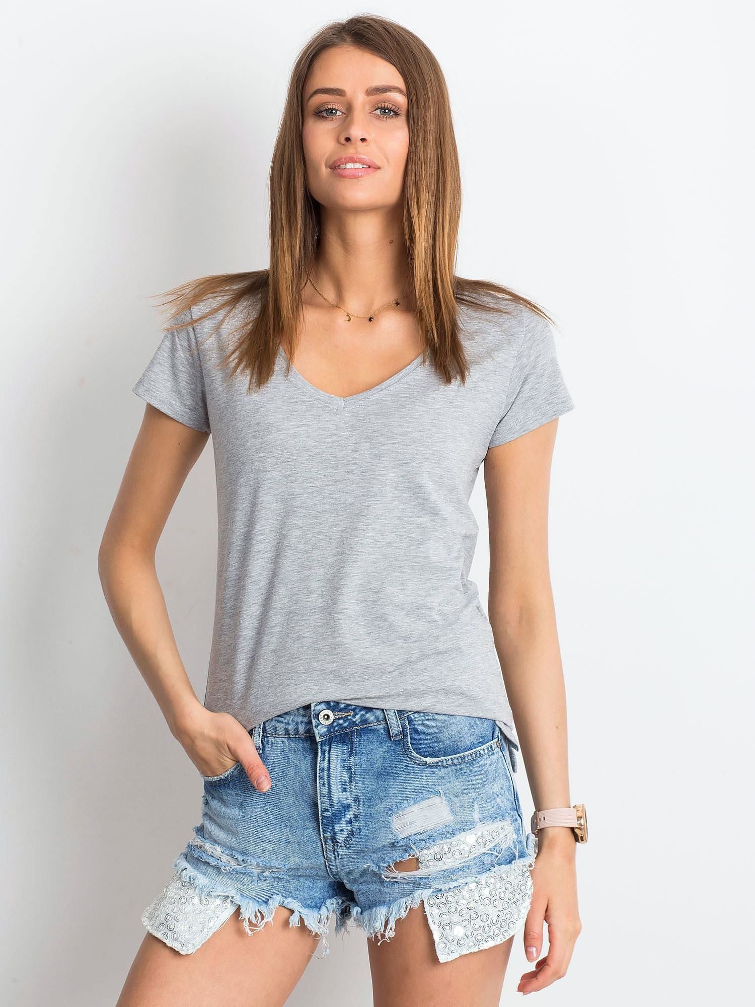 T-shirt w serek szary.