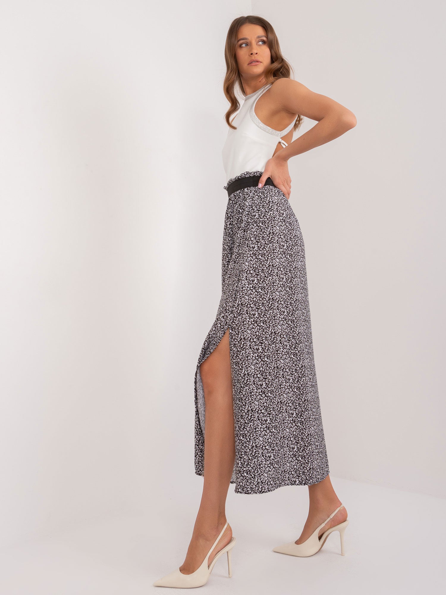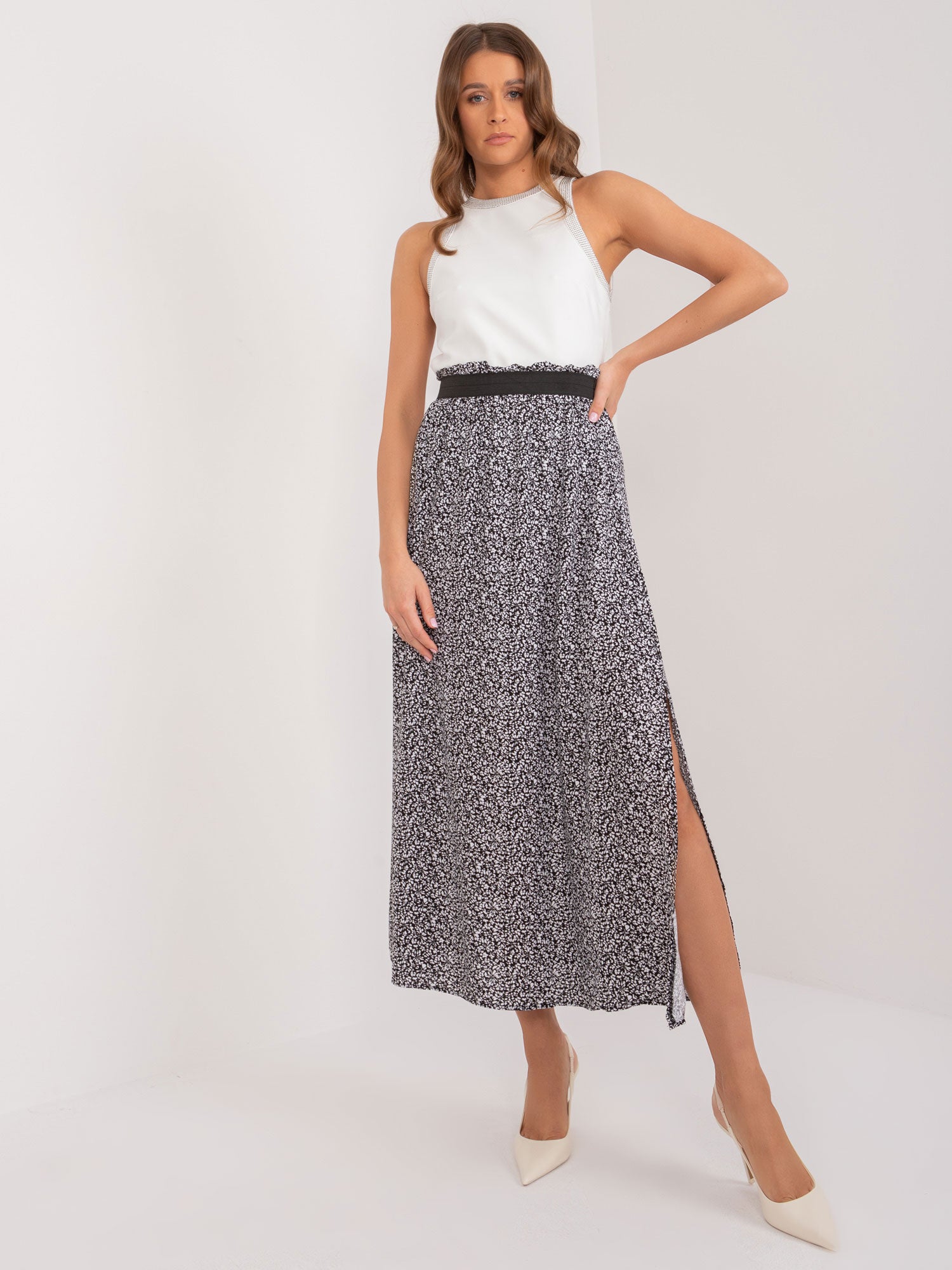 Wymiary spódnicy w rozmiarze S mierzone na płasko: szerokość w pasie - 35 cm, długość całkowita - 100 cm.