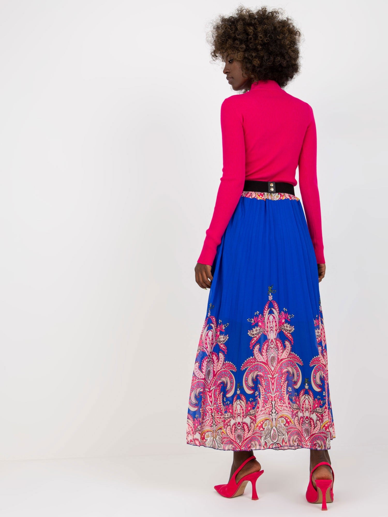 Ciemnoniebieska maxi spódnica plisowana z paskiem .