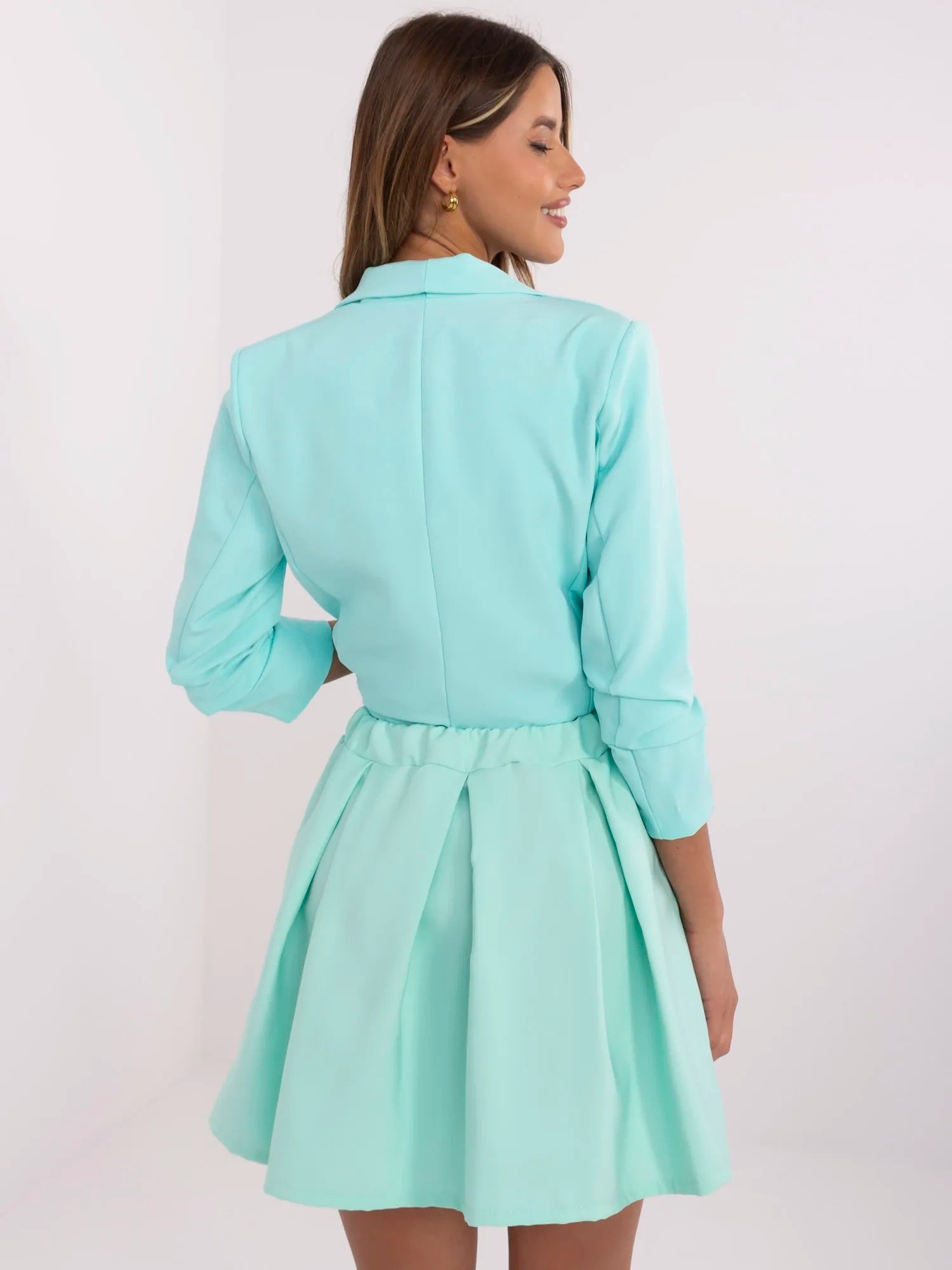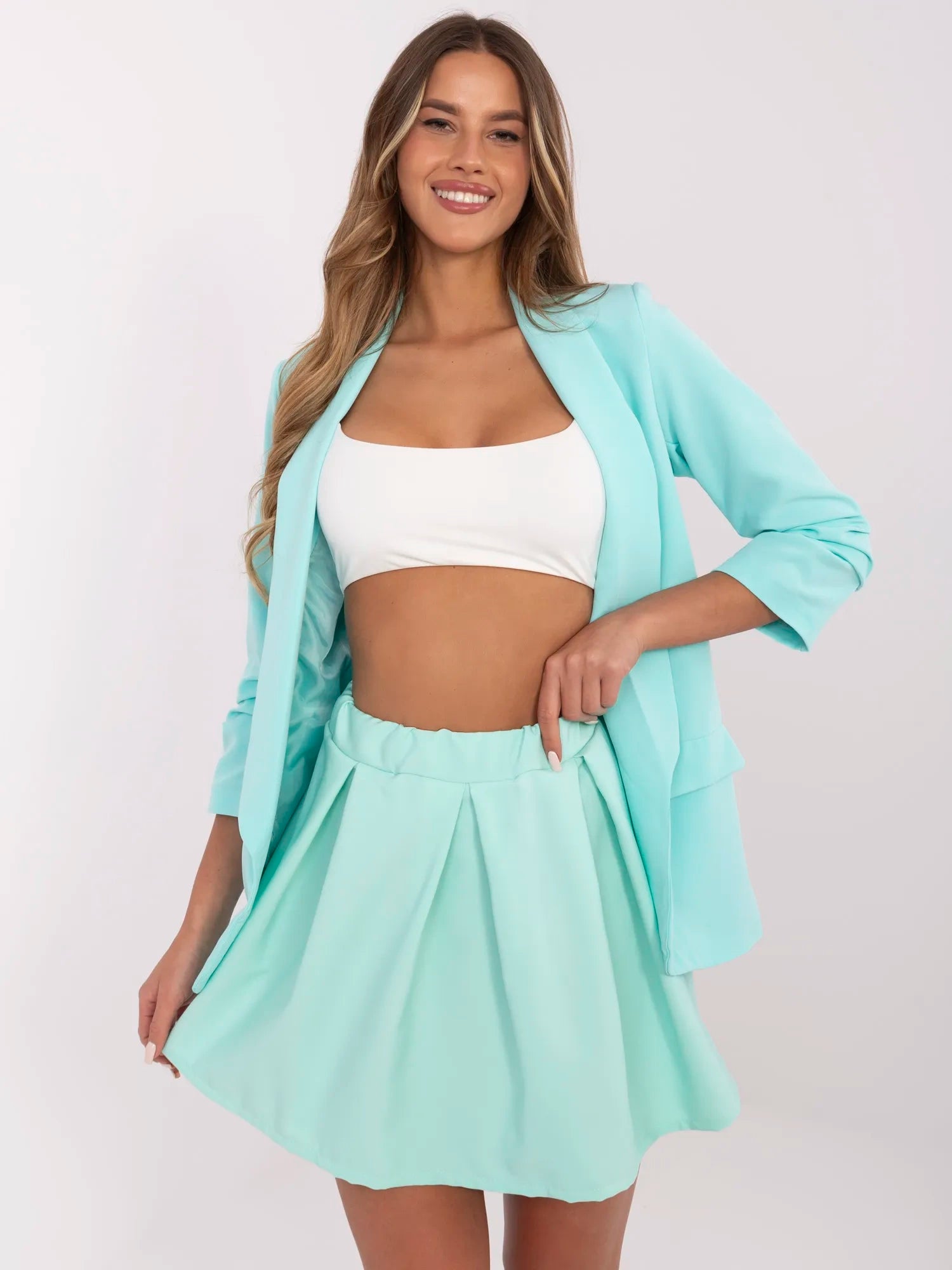 Wymiary spódnicy w rozmiarze one size mierzone na płasko: szerokość w pasie - 33 cm, szerokość w pasie - 45 cm (po rozciągnięciu), szerokość szortów w biodrach - 55 cm, długość całkowita - 43 cm.