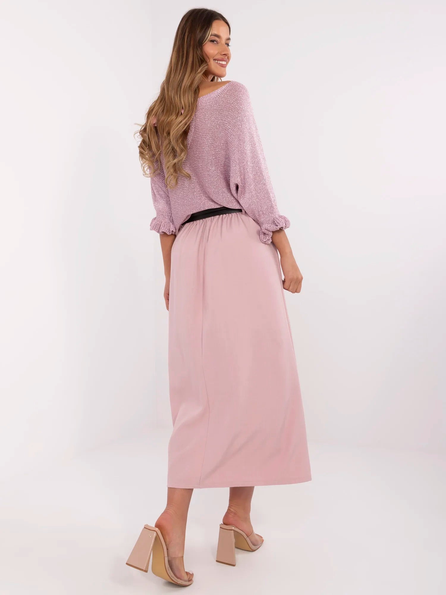 Wymiary spódnicy w rozmiarze one size mierzone na płasko: szerokość w pasie - 34 cm, szerokość w pasie - 49 cm (po rozciągnięciu), długość całkowita - 94 cm.