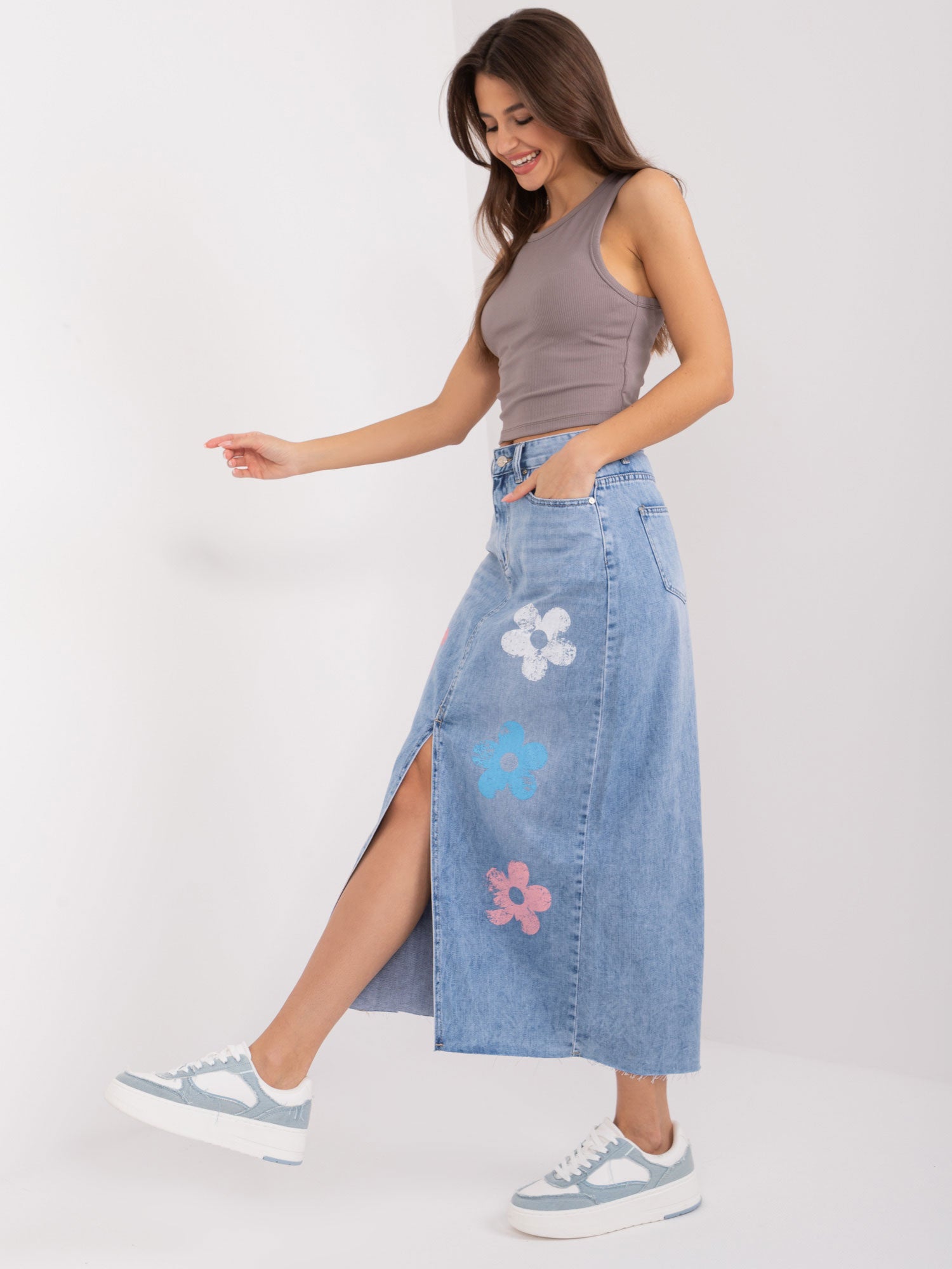 Wymiary spódnicy w rozmiarze S mierzone na płasko: szerokość w pasie- 34 cm, długość całkowita - 90 cm.