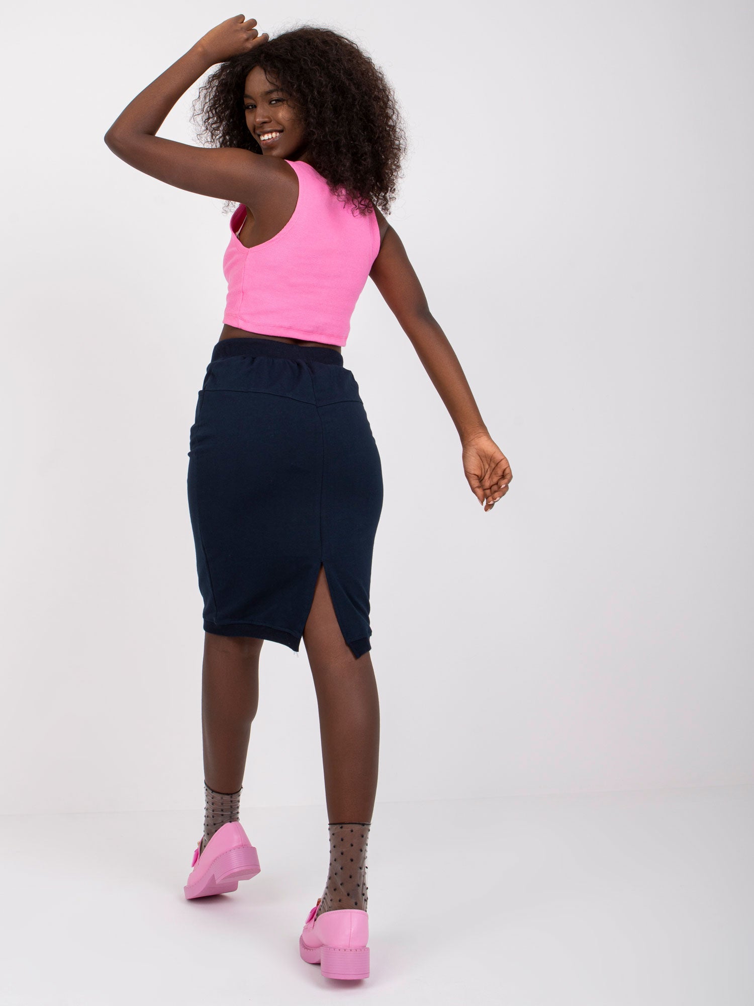 Granatowa spódnica dresowa.