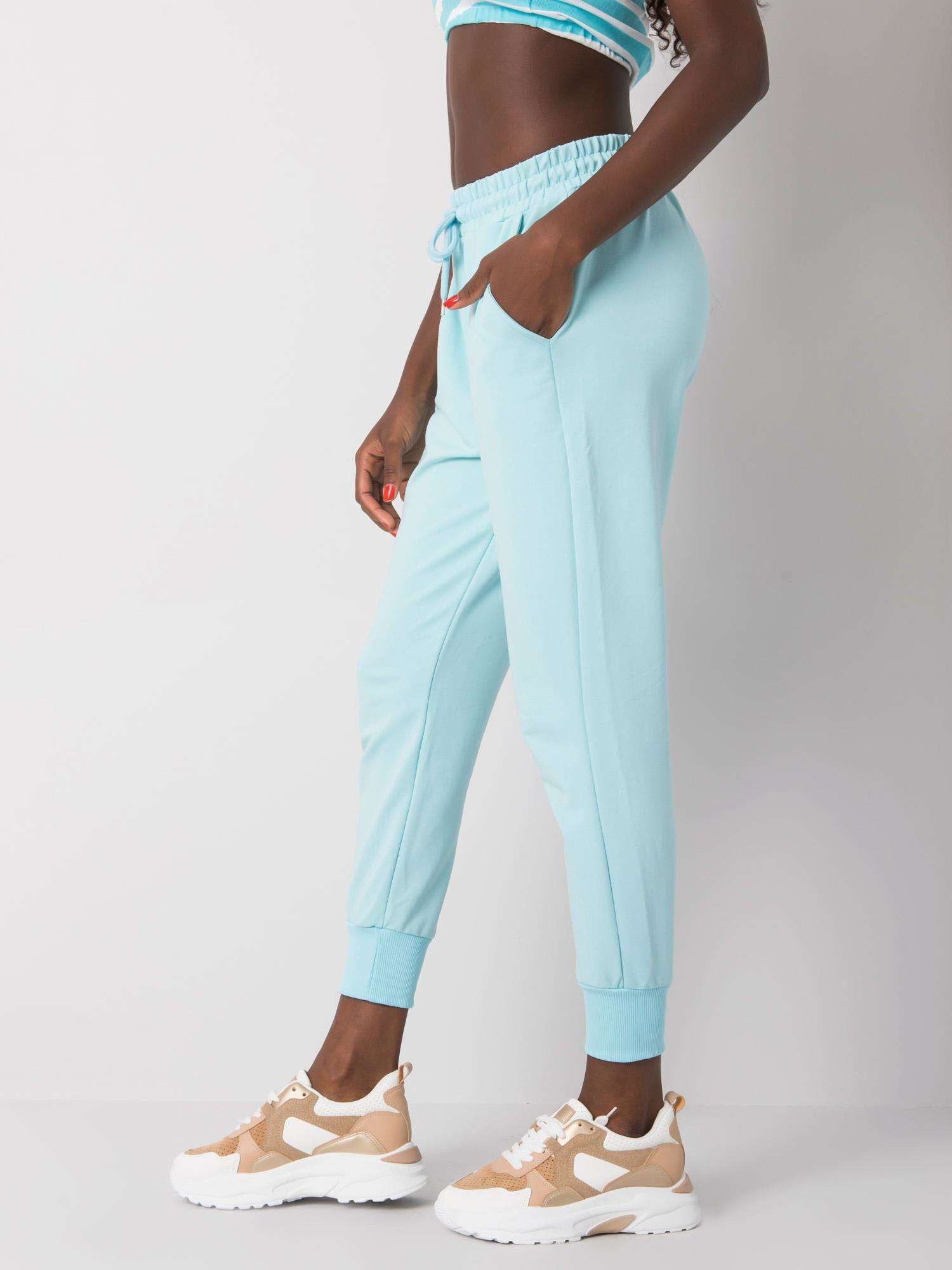 Jasnoniebieskie damskie spodnie z bawełny .