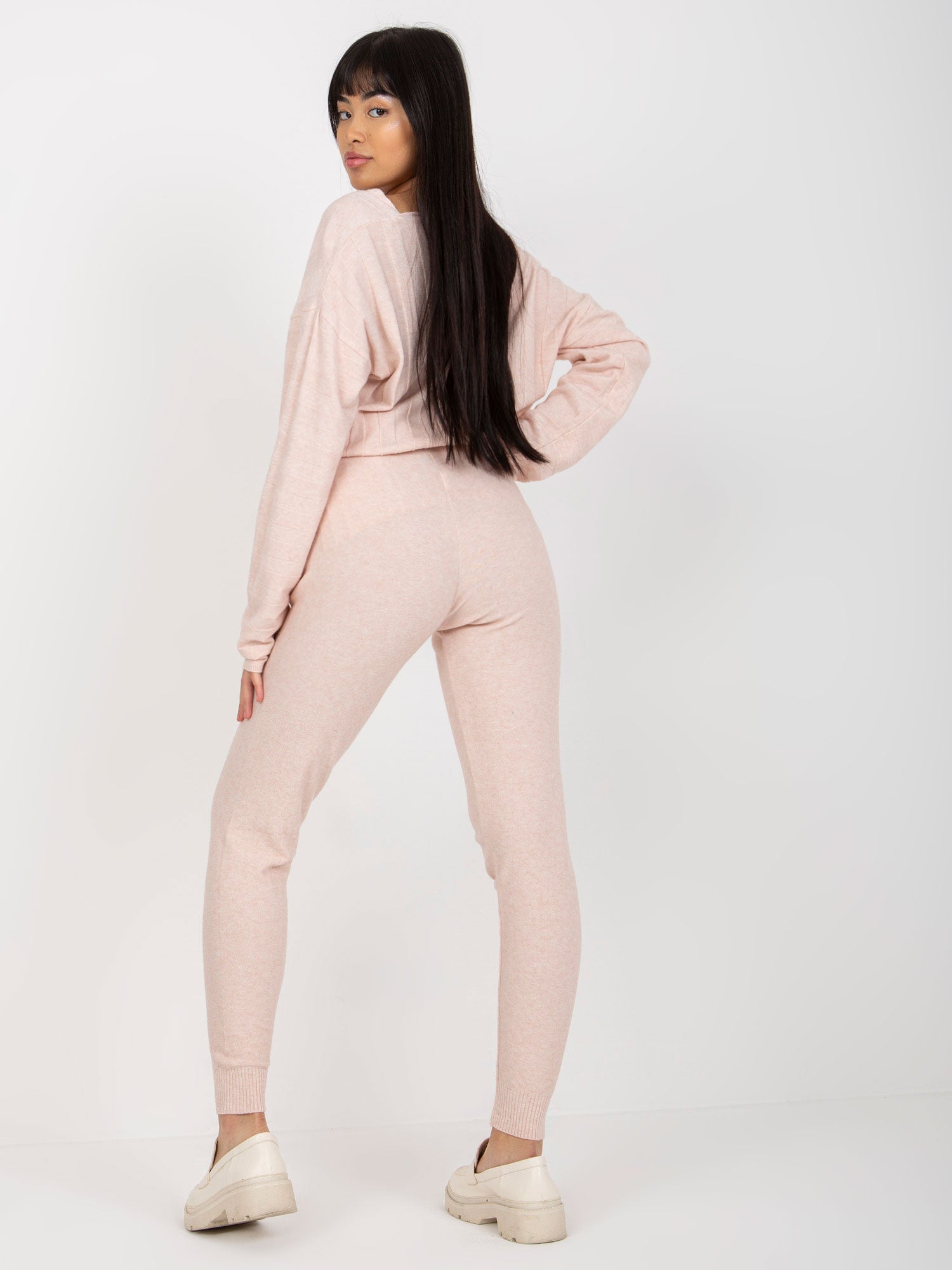 Jasnoróżowe damskie spodnie dzianinowe z wiązaniem .