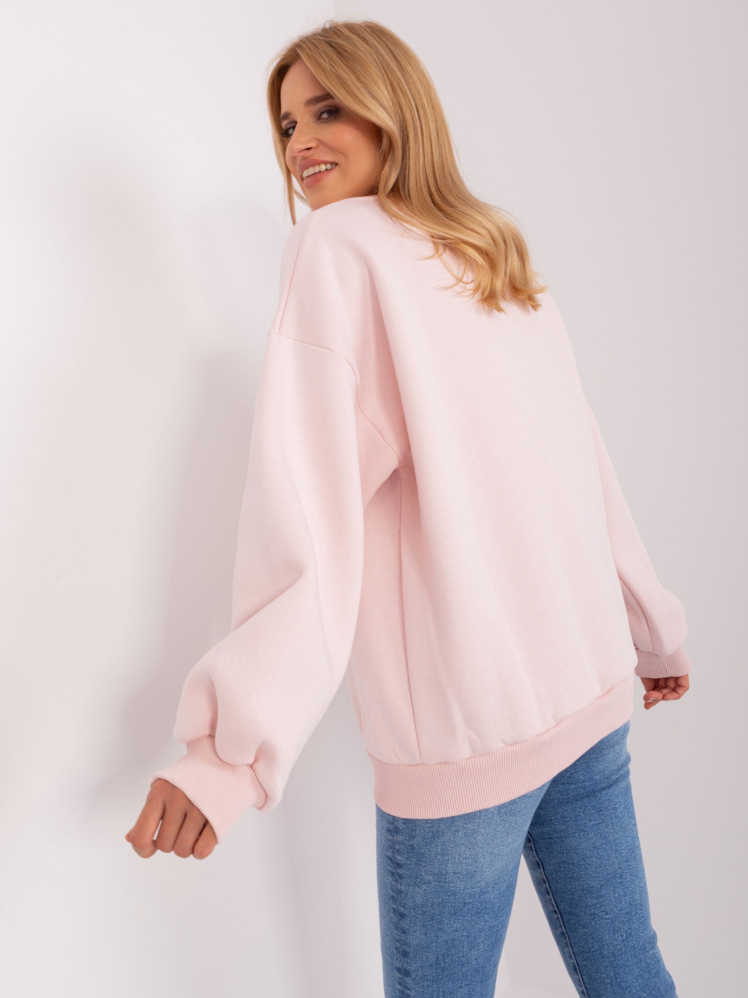 Jasnoróżowa bluza bez kaptura z napisem .