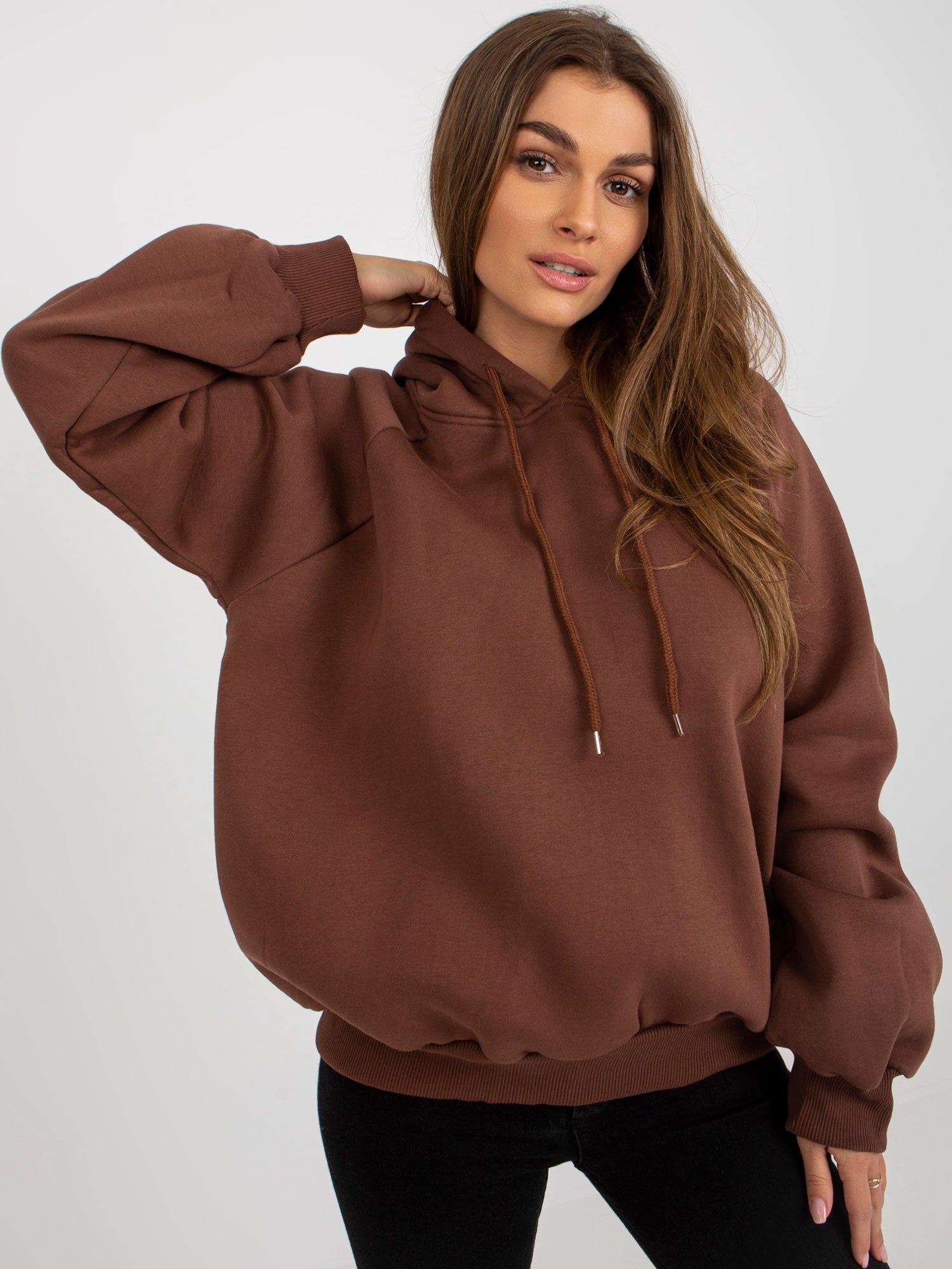 Ciemnobrązowa bluza basic oversize z kapturem .