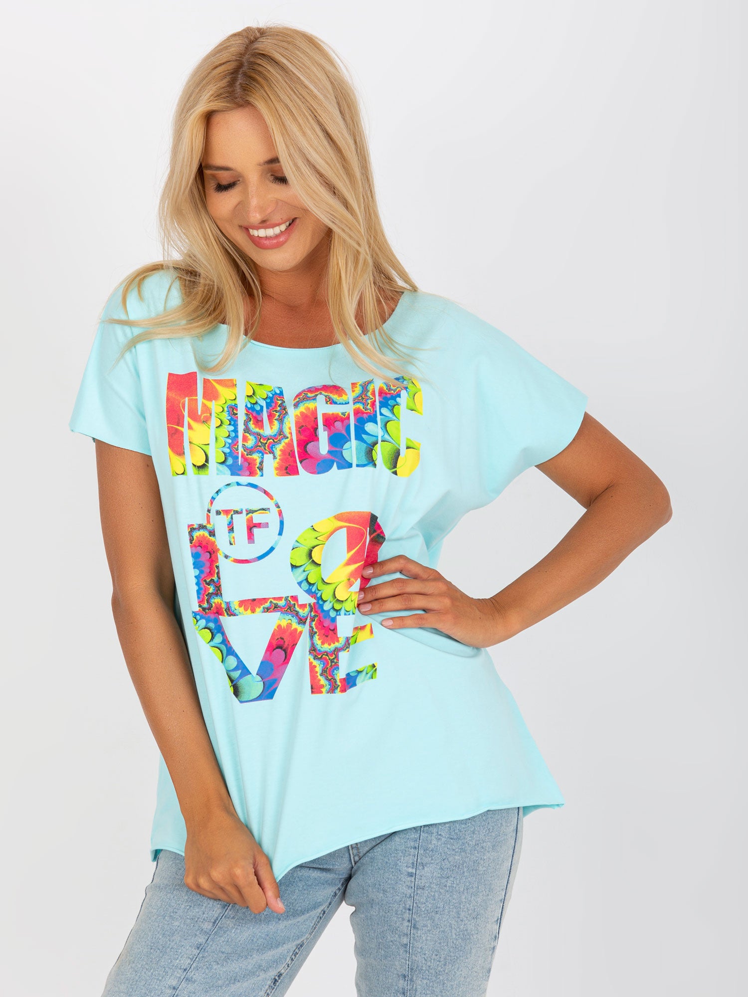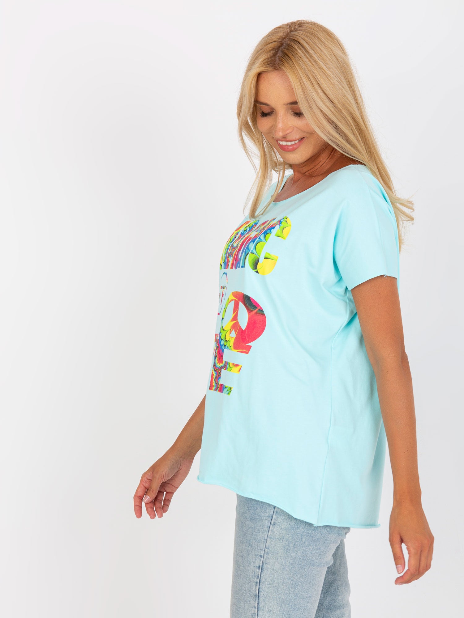 Jasnoniebieska bluzka z nadrukiem bawełniana .