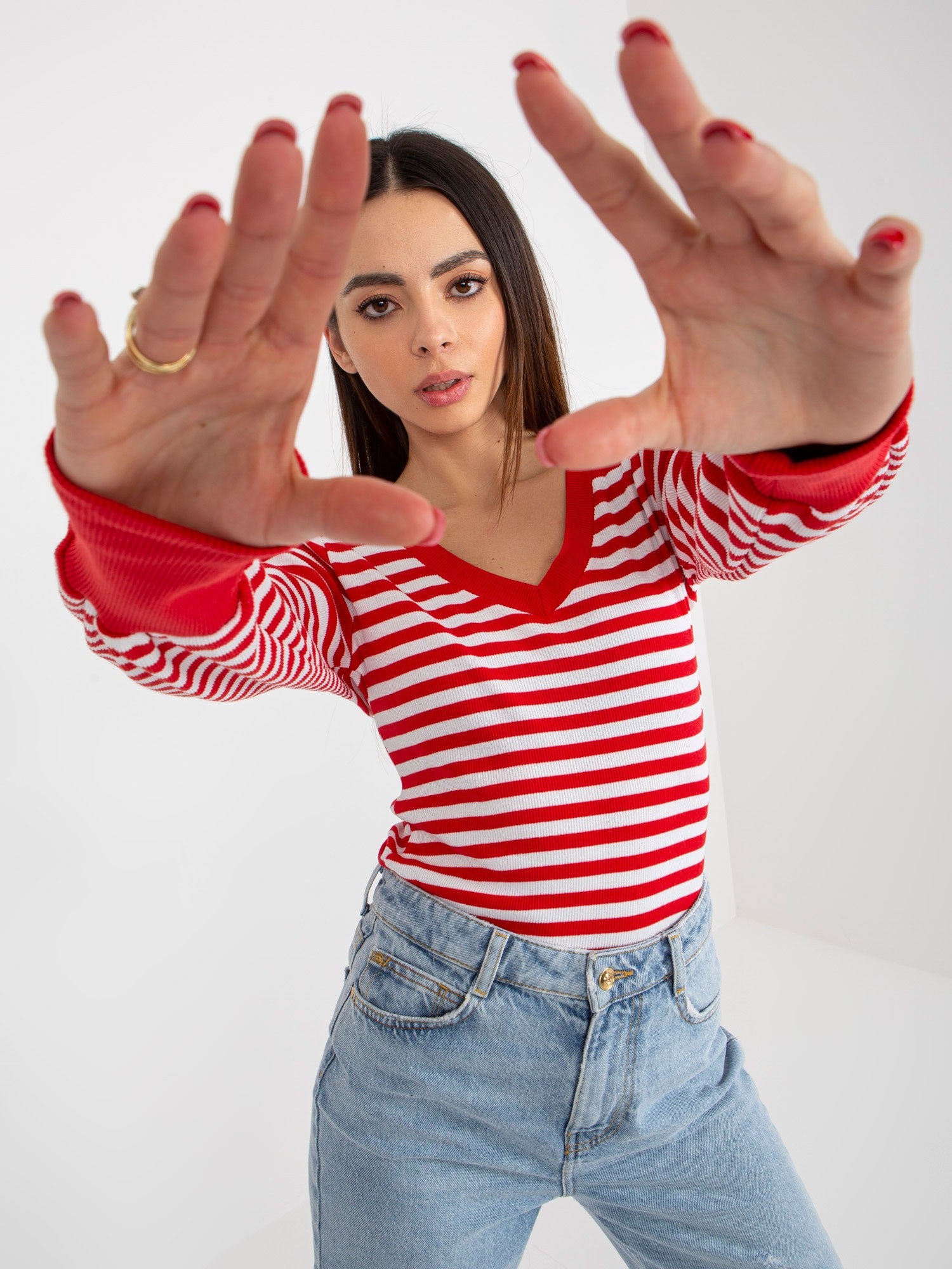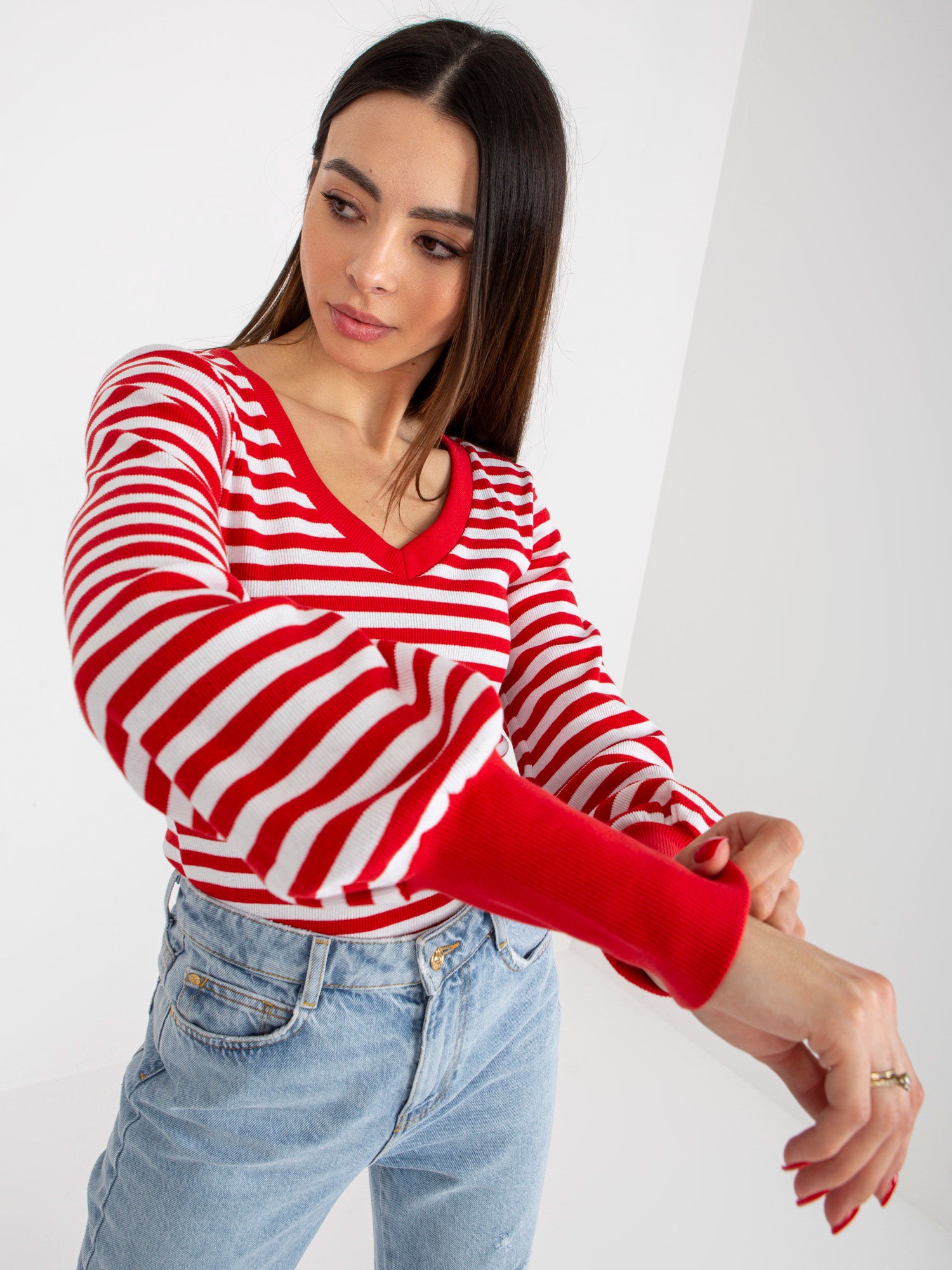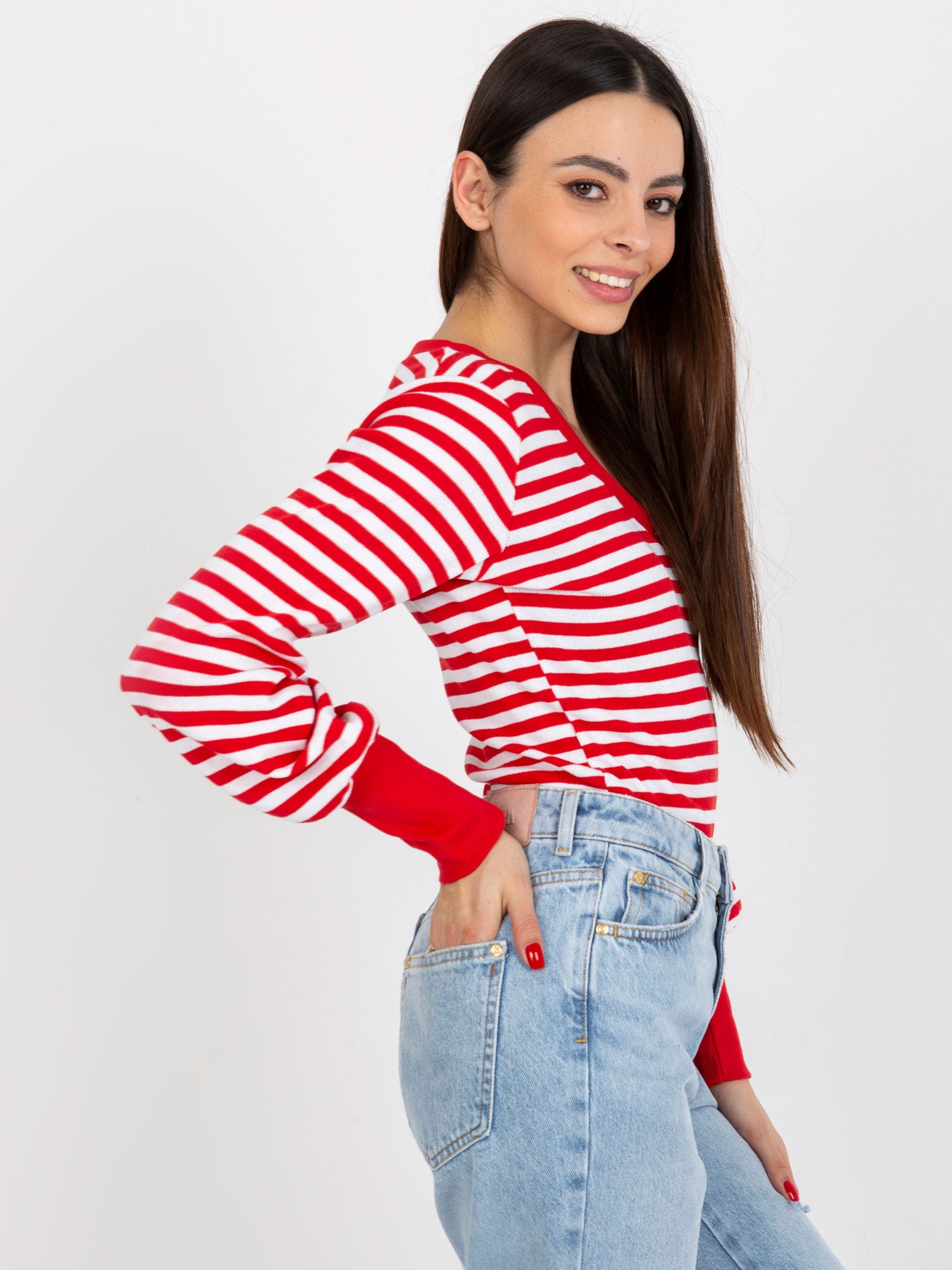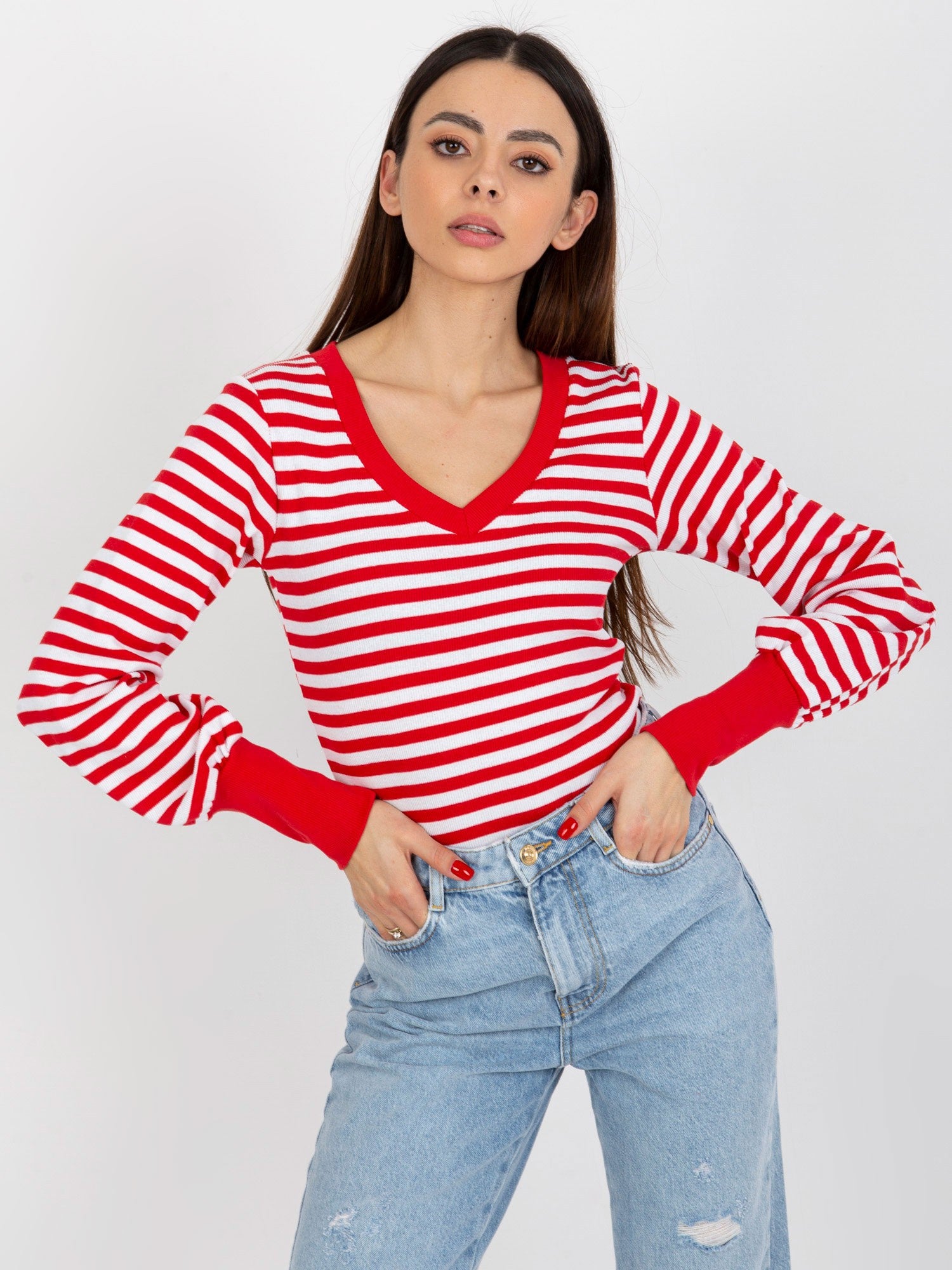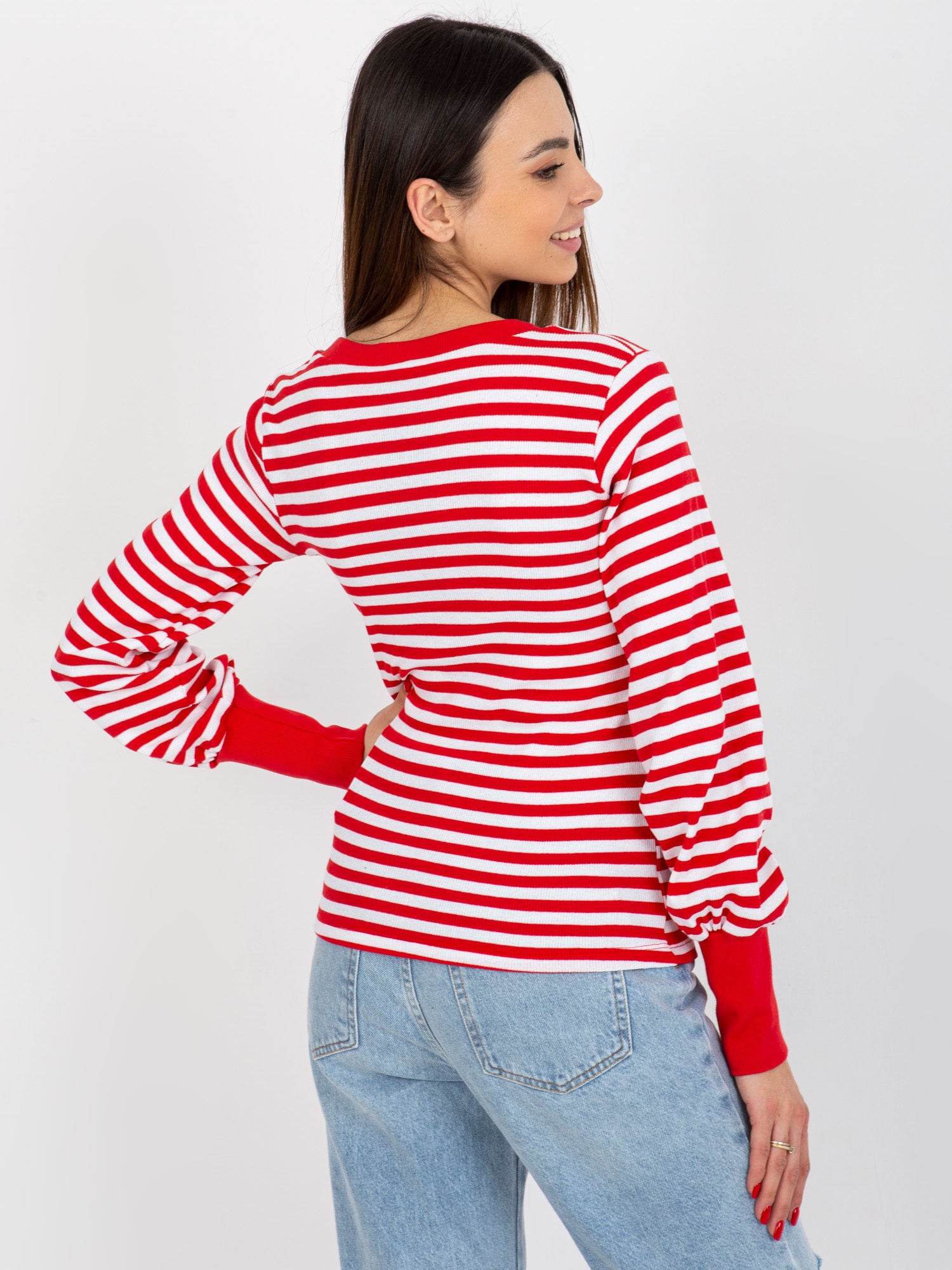 Czerwono-biała prążkowana bluzka basic w paski .