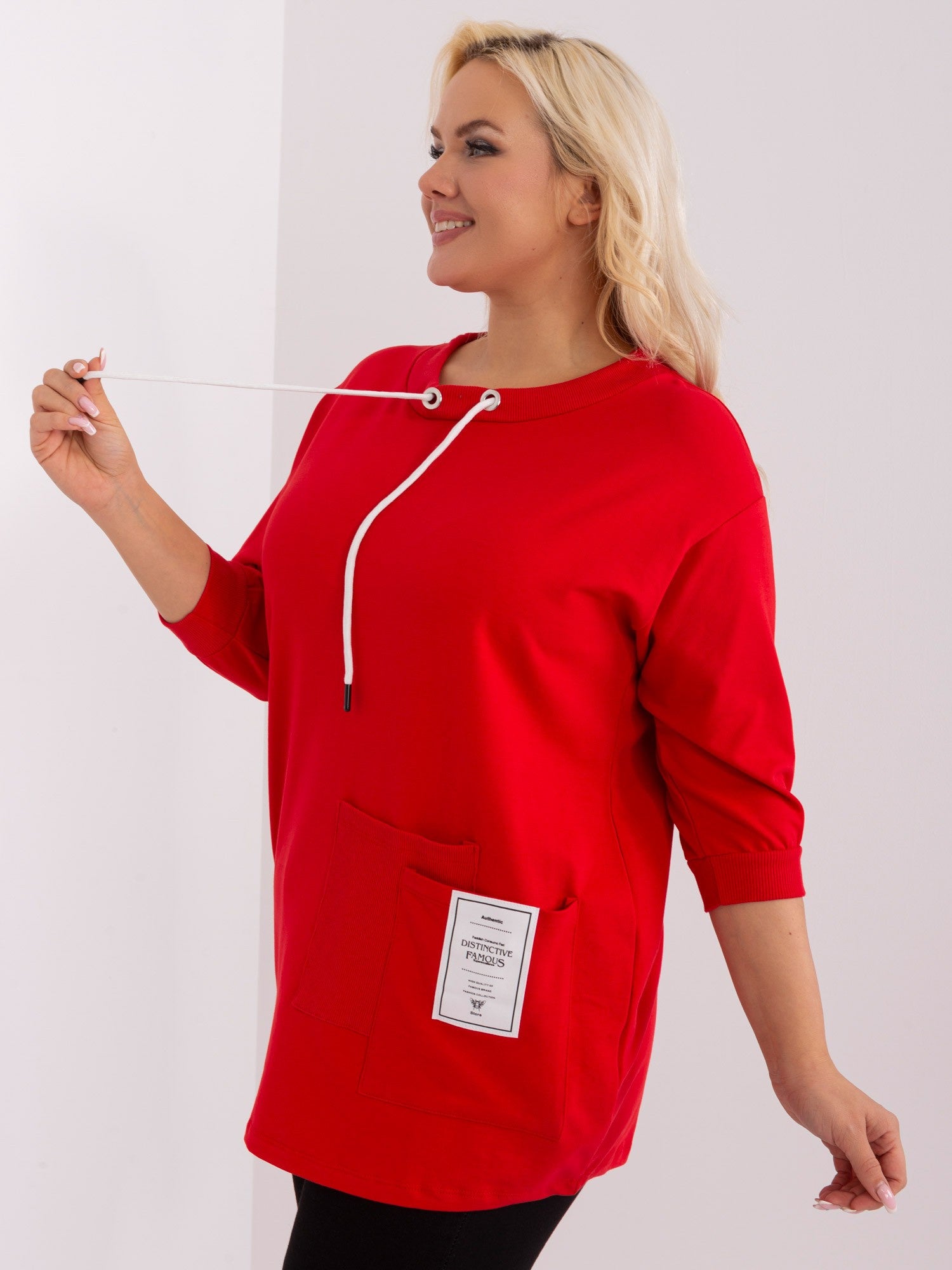 Wymiary bluzki w rozmiarze one size mierzone na płasko: szerokość pod pachami - 59 cm, długość całkowita - 70 cm, długość rękawa - 42 cm
