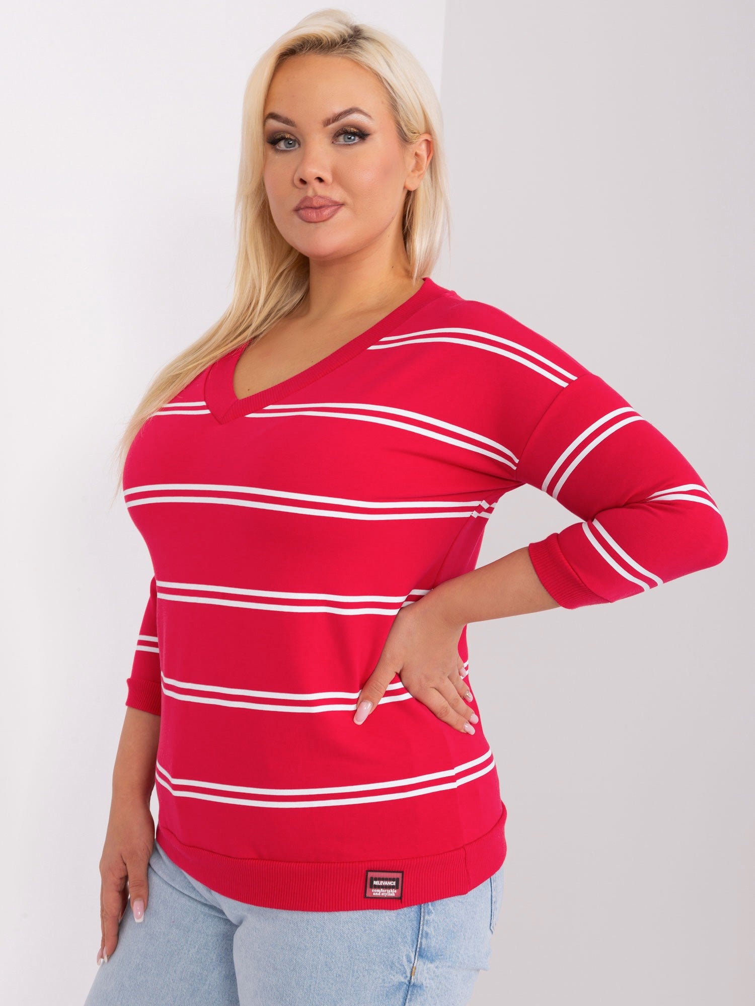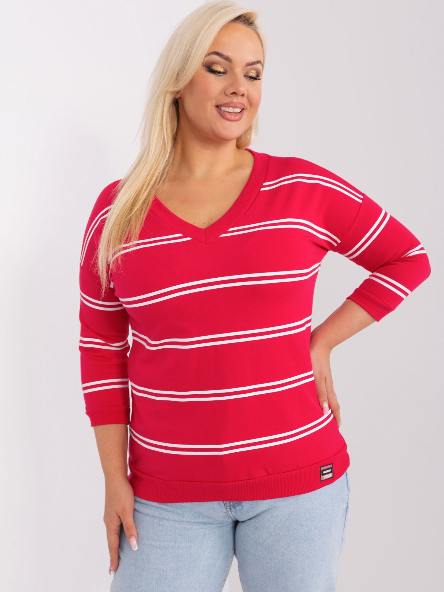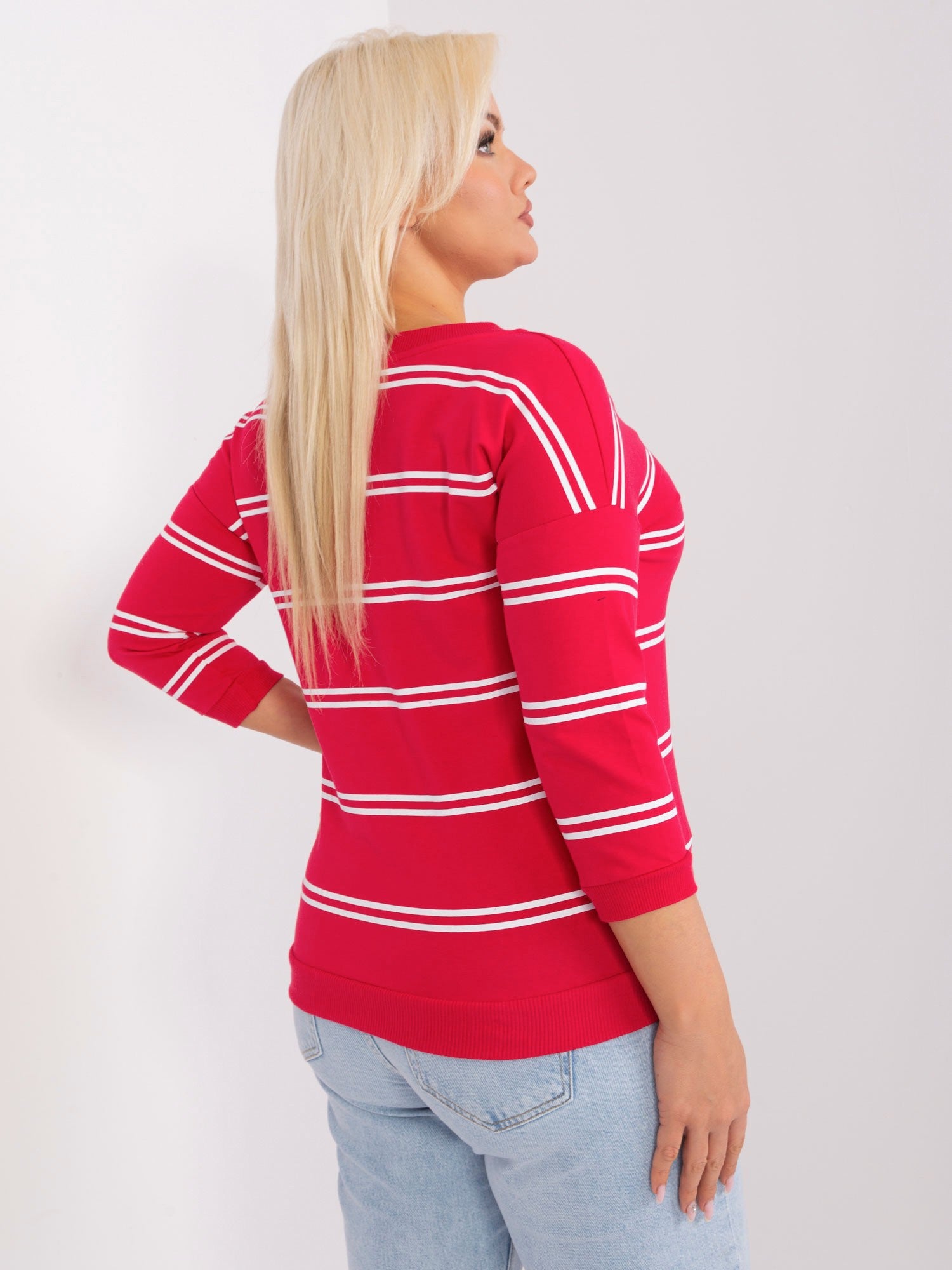 Czerwona bawełniana bluzka plus size w paski .