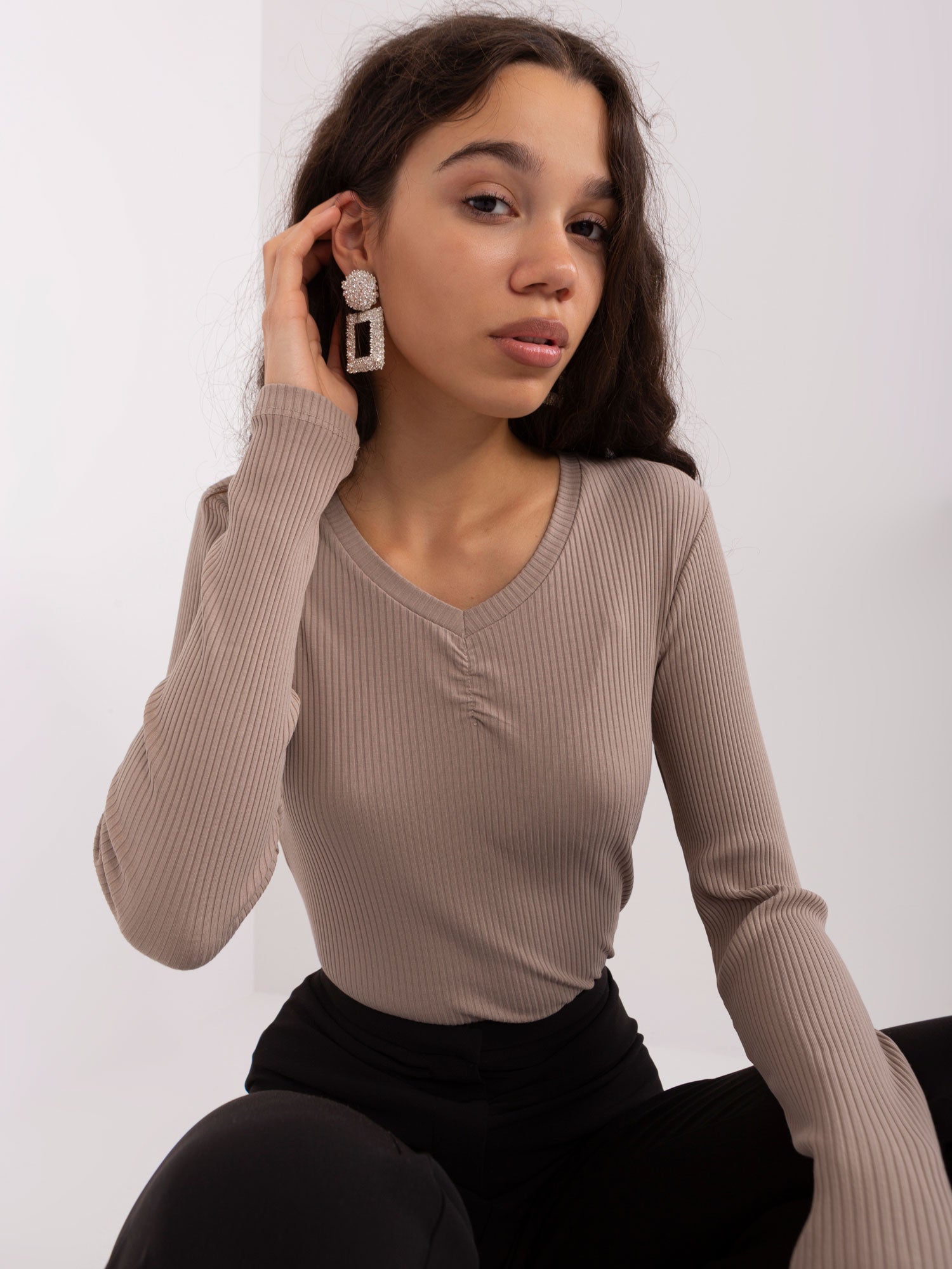 Ciemnobeżowa bluzka z marszczeniem BASIC FEEL GOOD .