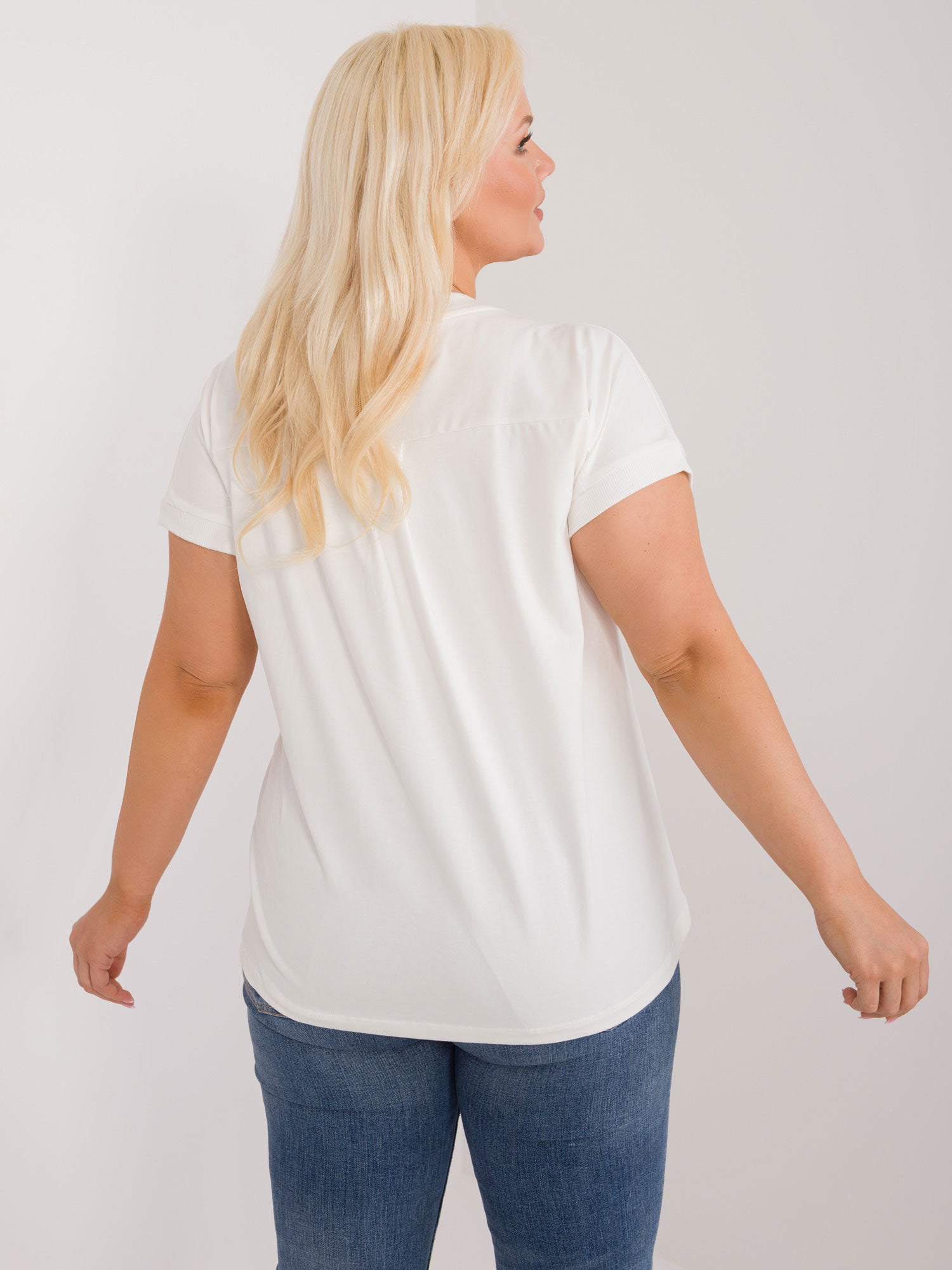 Wymiary bluzki w rozmiarze one size mierzone na płasko: szerokość pod pachami - 60 cm, długość całkowita (przód) - 61 cm, długość całkowita (tył) - 67 cm.