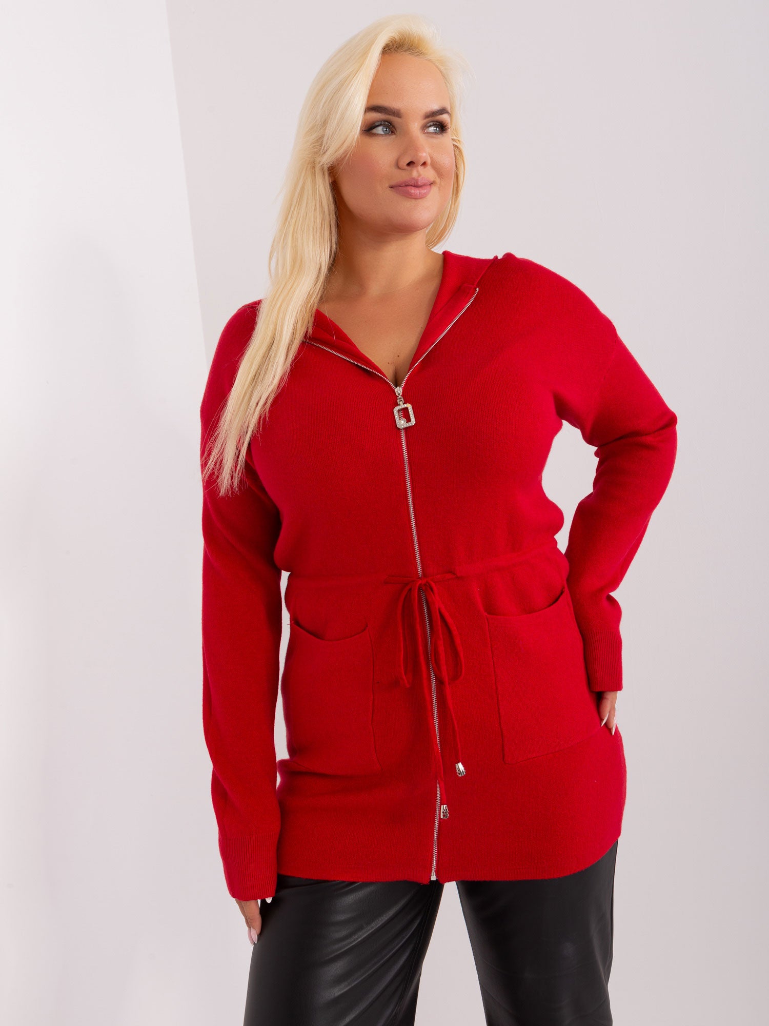 Czerwony rozpinany sweter plus size ze ściągaczem .