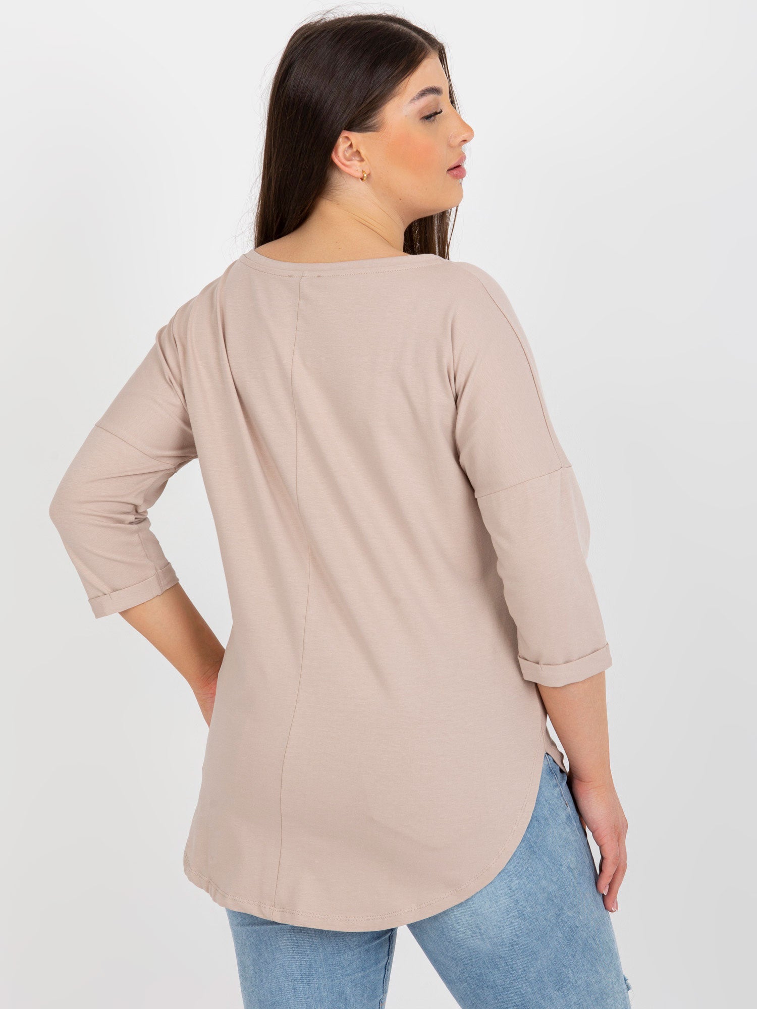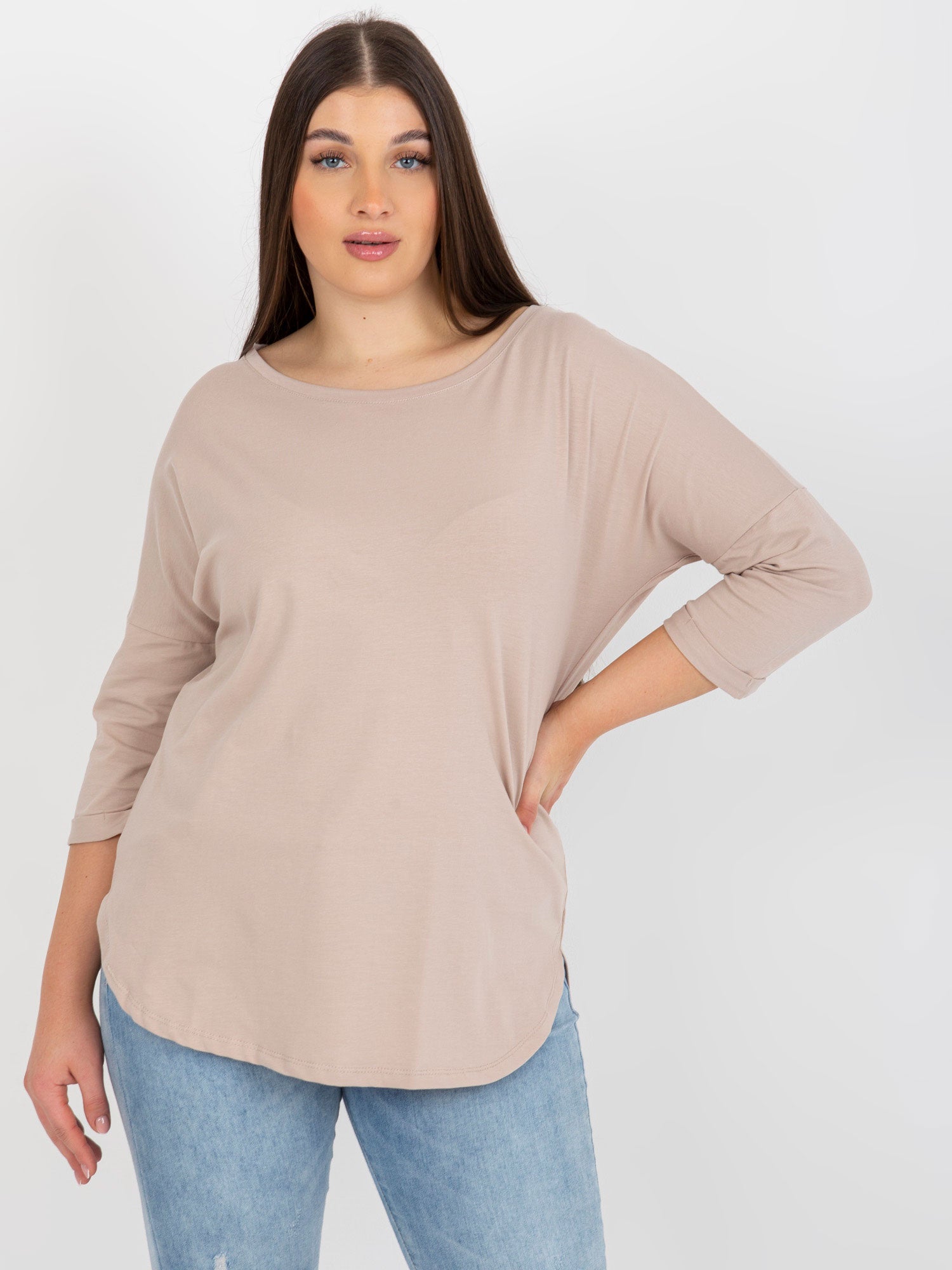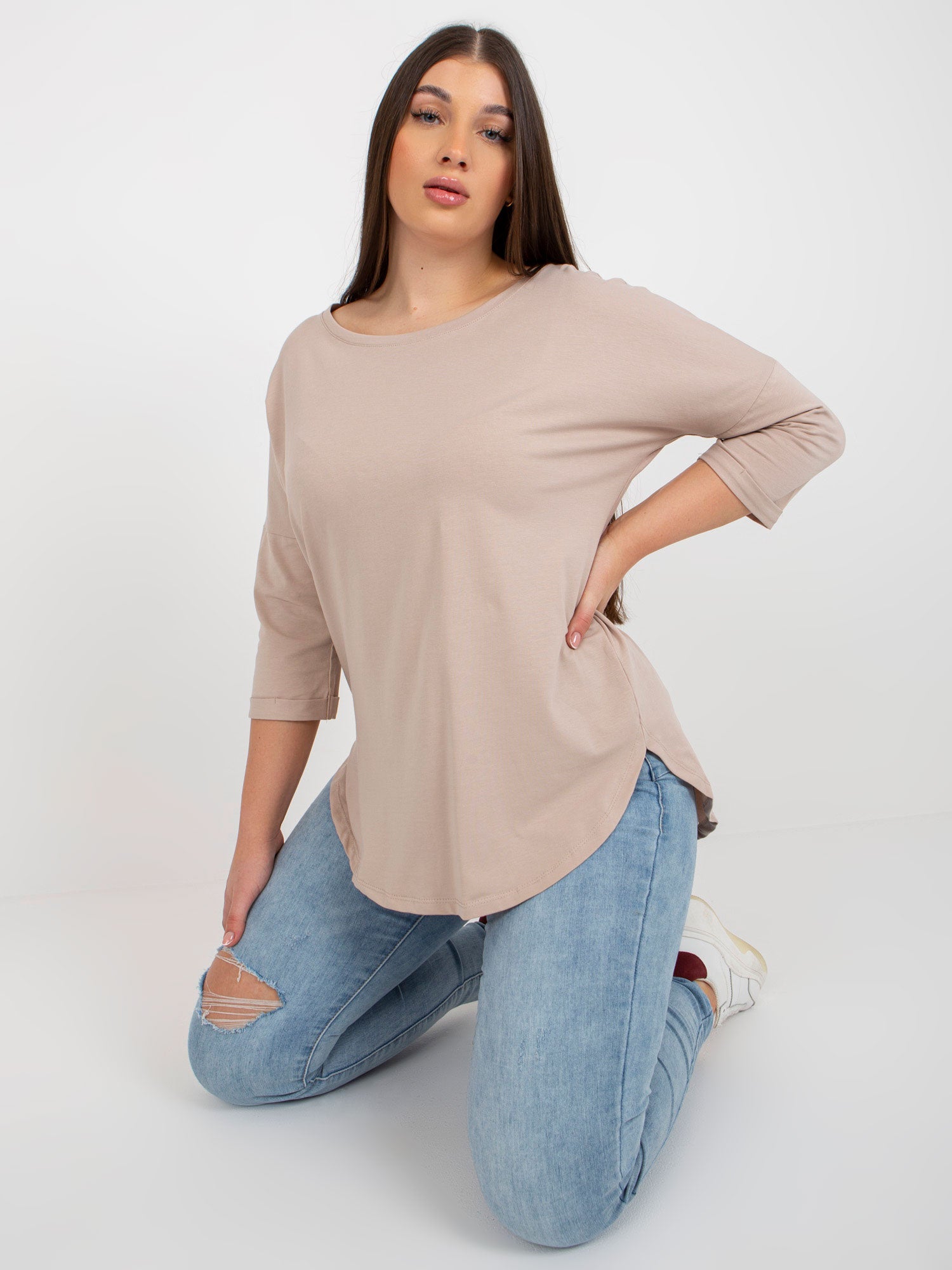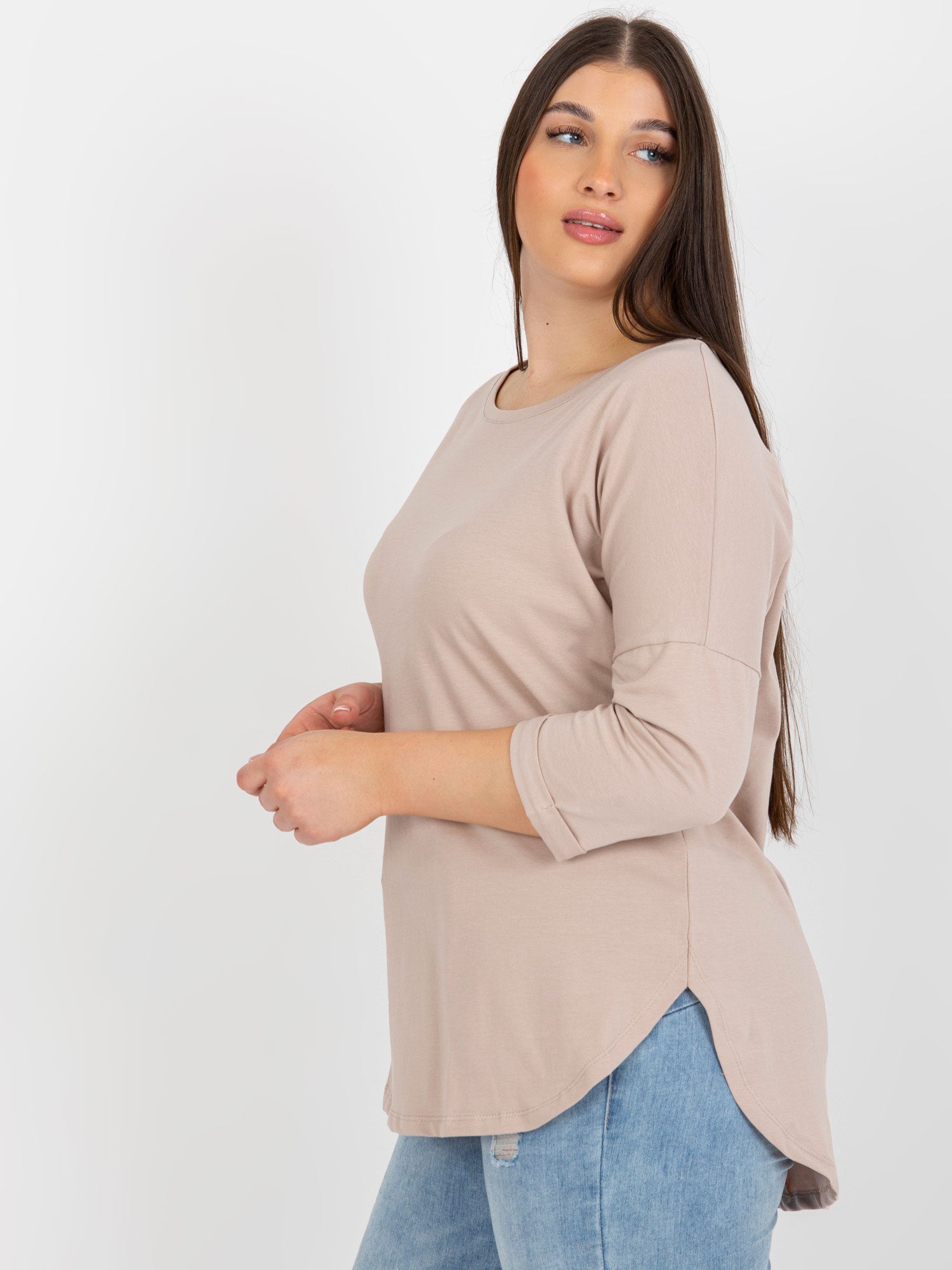 Beżowa dłuższa bluzka plus size basic z rękawem 3/4 .