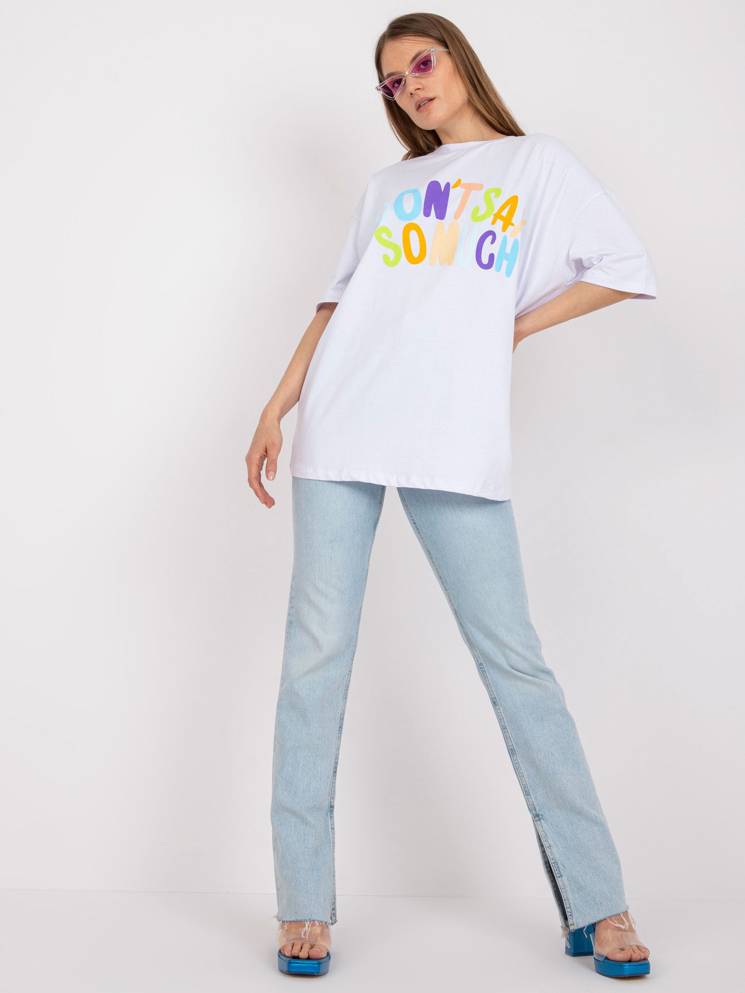 Wymiary t-shirta w rozmiarze one size mierzone na płasko: szerokość pod pachami - 63 cm, długość całkowita - 70 cm.