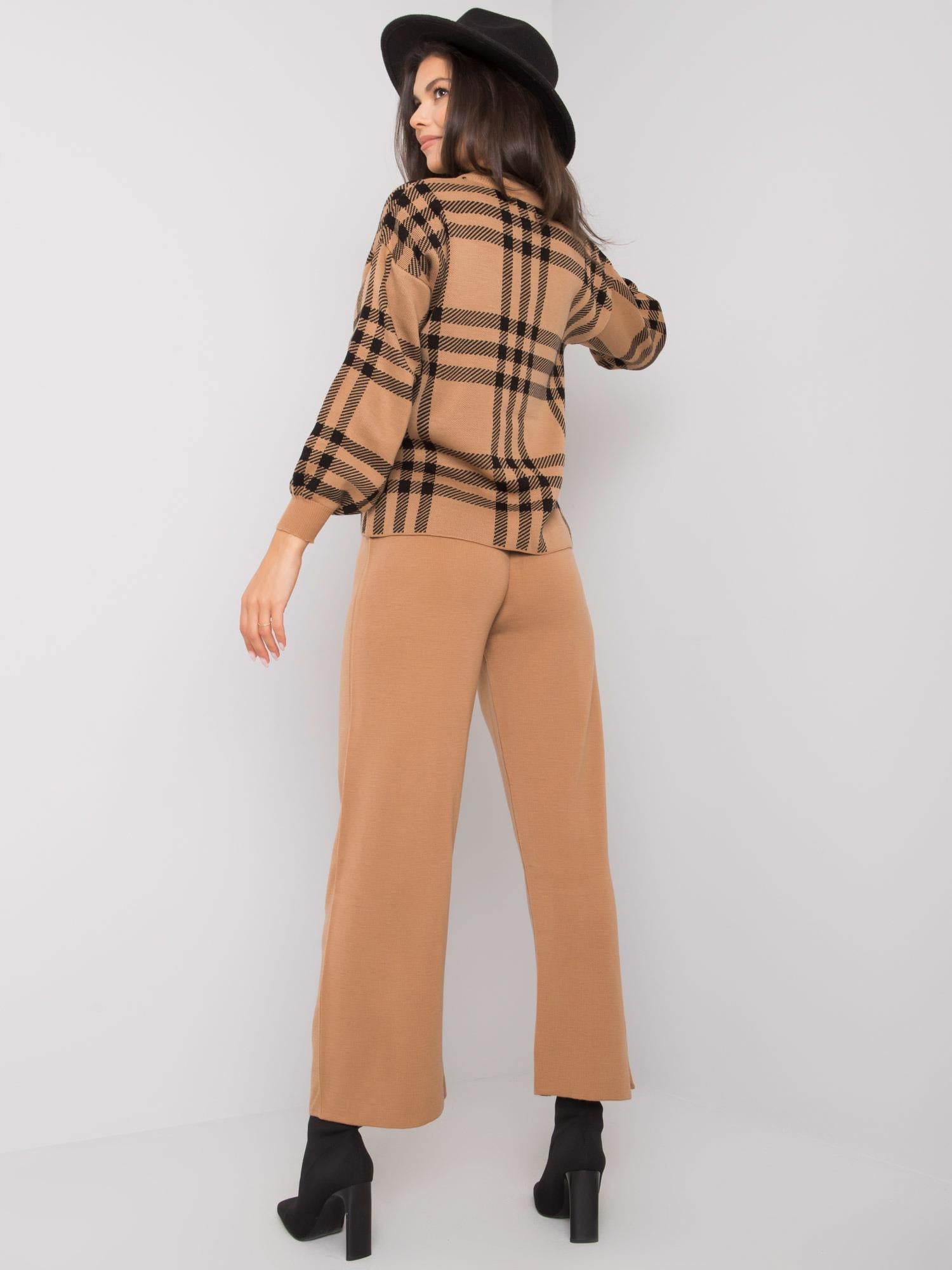 Wymiary kompletu w rozmiarze one size mierzone na płasko: szerokość pod pachami - 49 cm, długość swetra - 56 cm, długość rękawa - 56 cm, szerokość w pasie - 32 cm, długość spodni - 97 cm