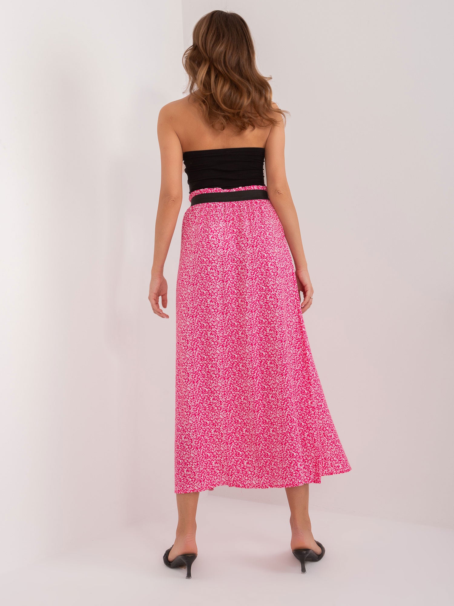 Wymiary spódnicy w rozmiarze S mierzone na płasko: szerokość w pasie - 35 cm, długość całkowita - 100 cm.