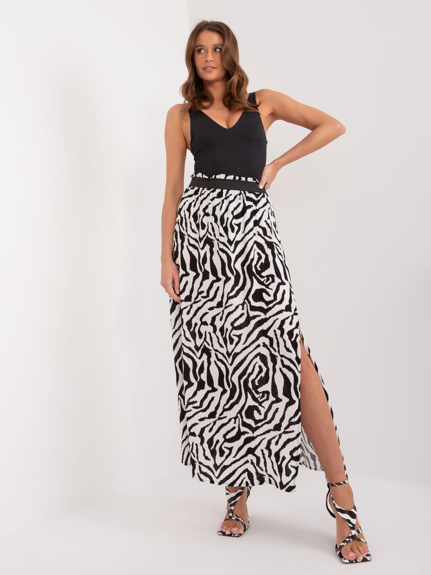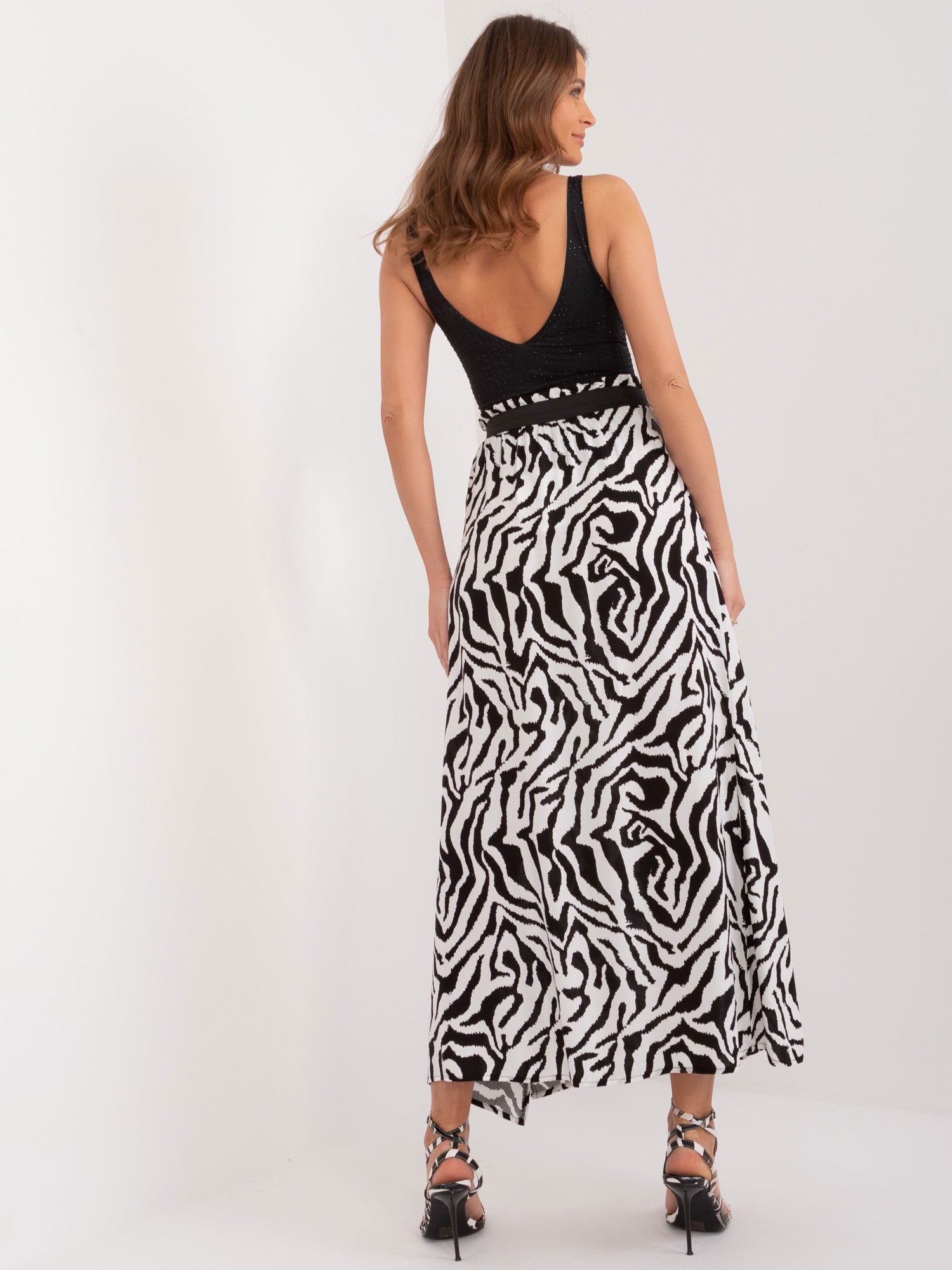 Wymiary spódnicy w rozmiarze S mierzone na płasko: szerokość w pasie - 35 cm, długość całkowita - 100 cm.