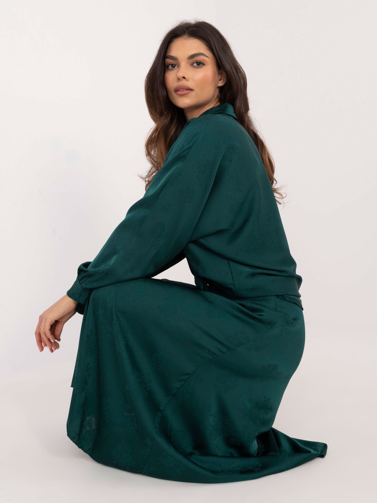 Modelka ma na sobie rozmiar one size. Wymiary modelki: wzrost 173 cm, biust 85 cm, talia 62 cm, biodra 95 cm.