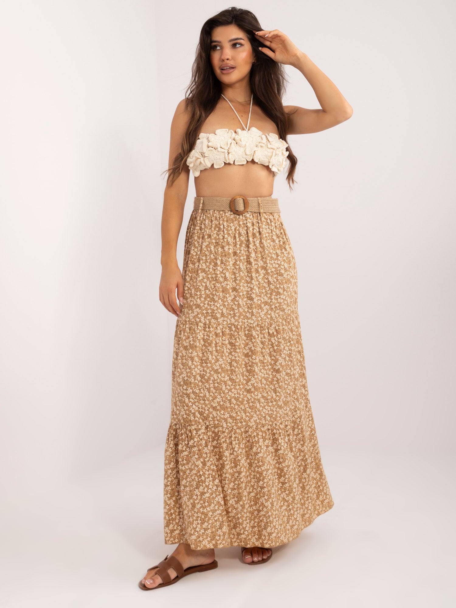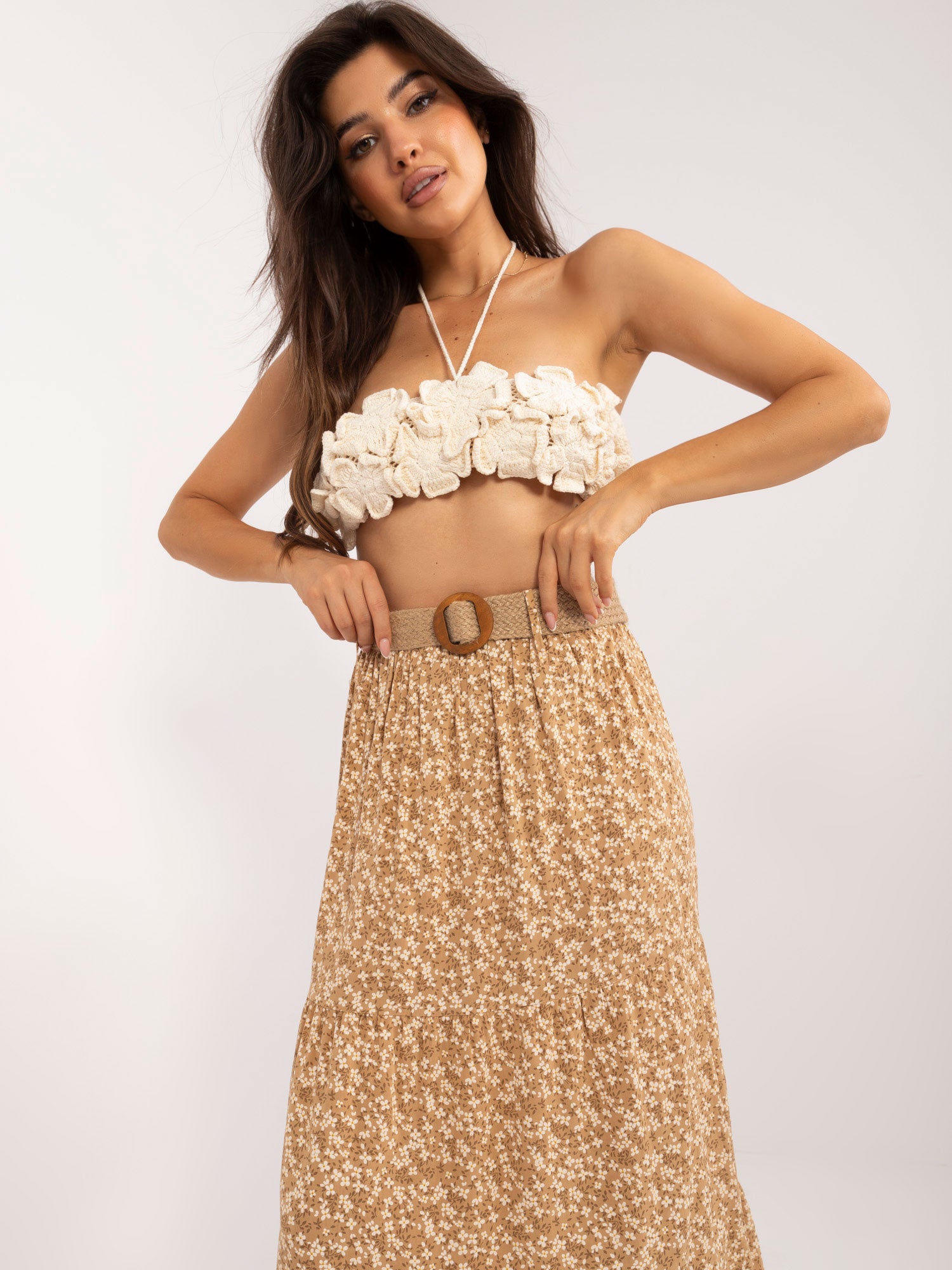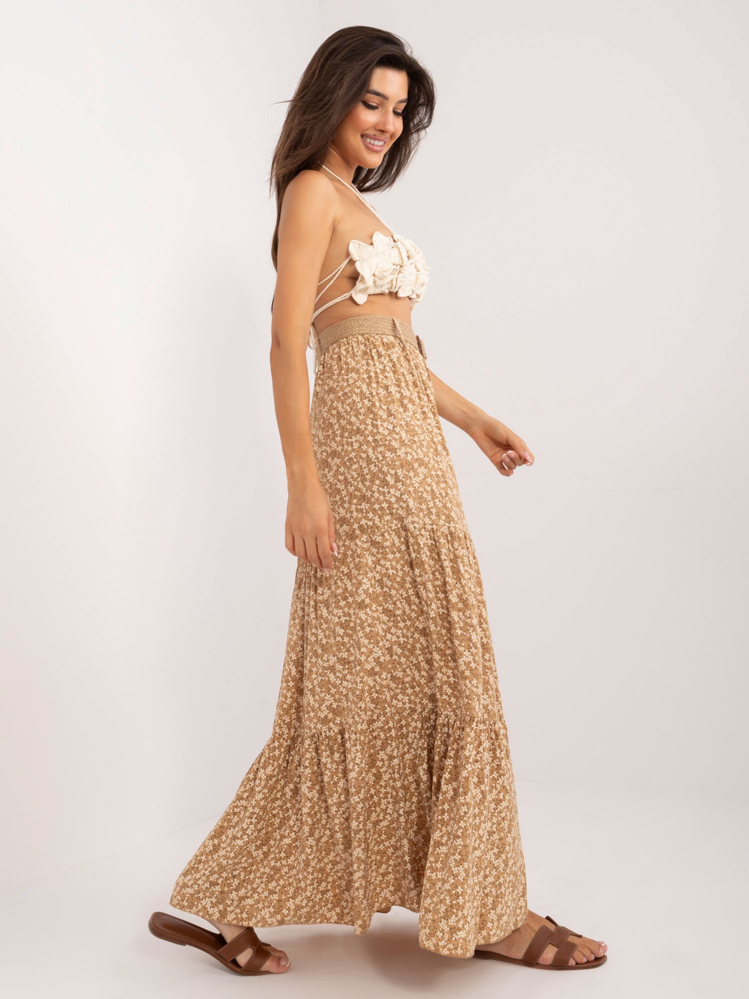 Wymiary spódnicy w rozmiarze one size mierzone na płasko: szerokość w pasie - 34 cm, długość całkowita - 103 cm.