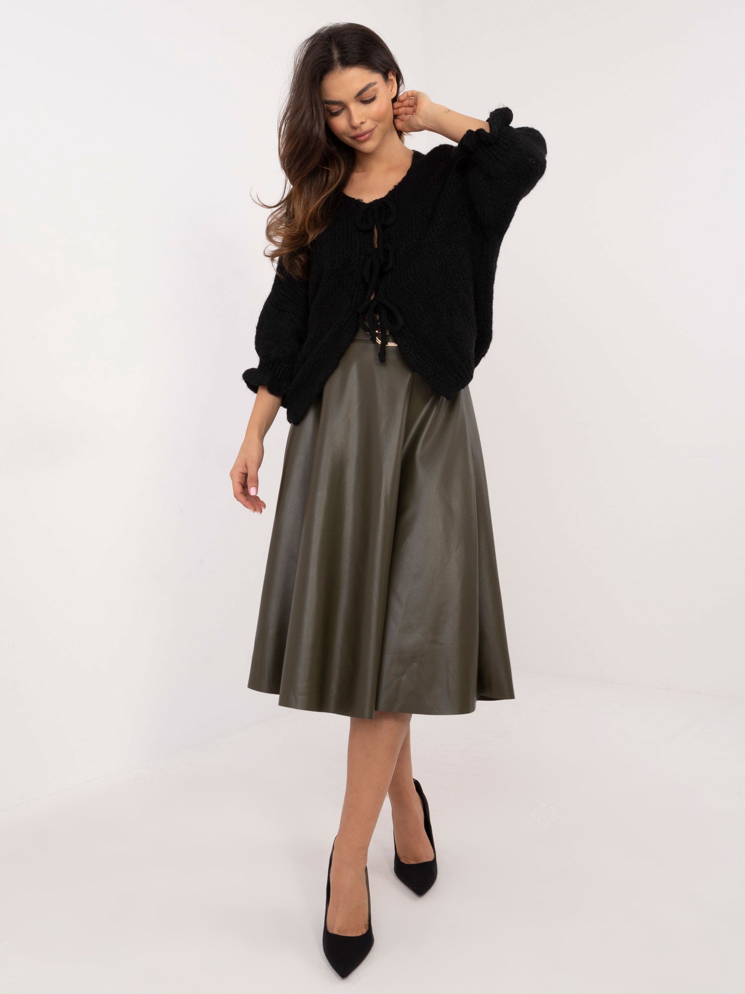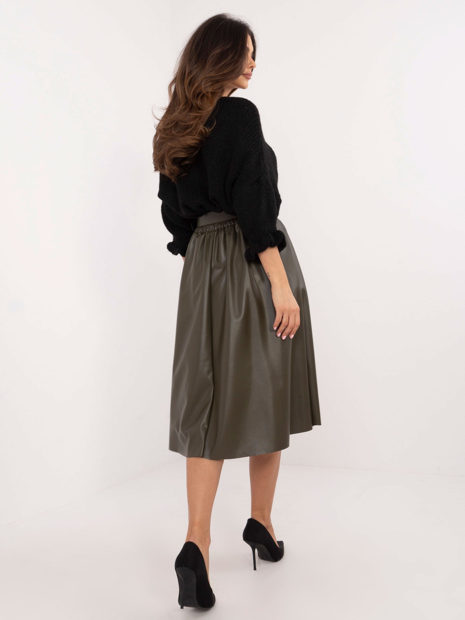 Wymiary spódnicy w rozmiarze one size mierzone na płasko: szerokość w pasie - 36 cm (na płasko), szerokość w pasie - 45 cm (po rozciągnięciu), długość całkowita - 75 cm..