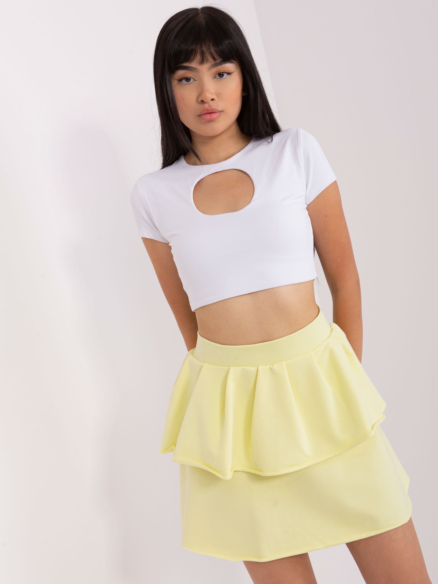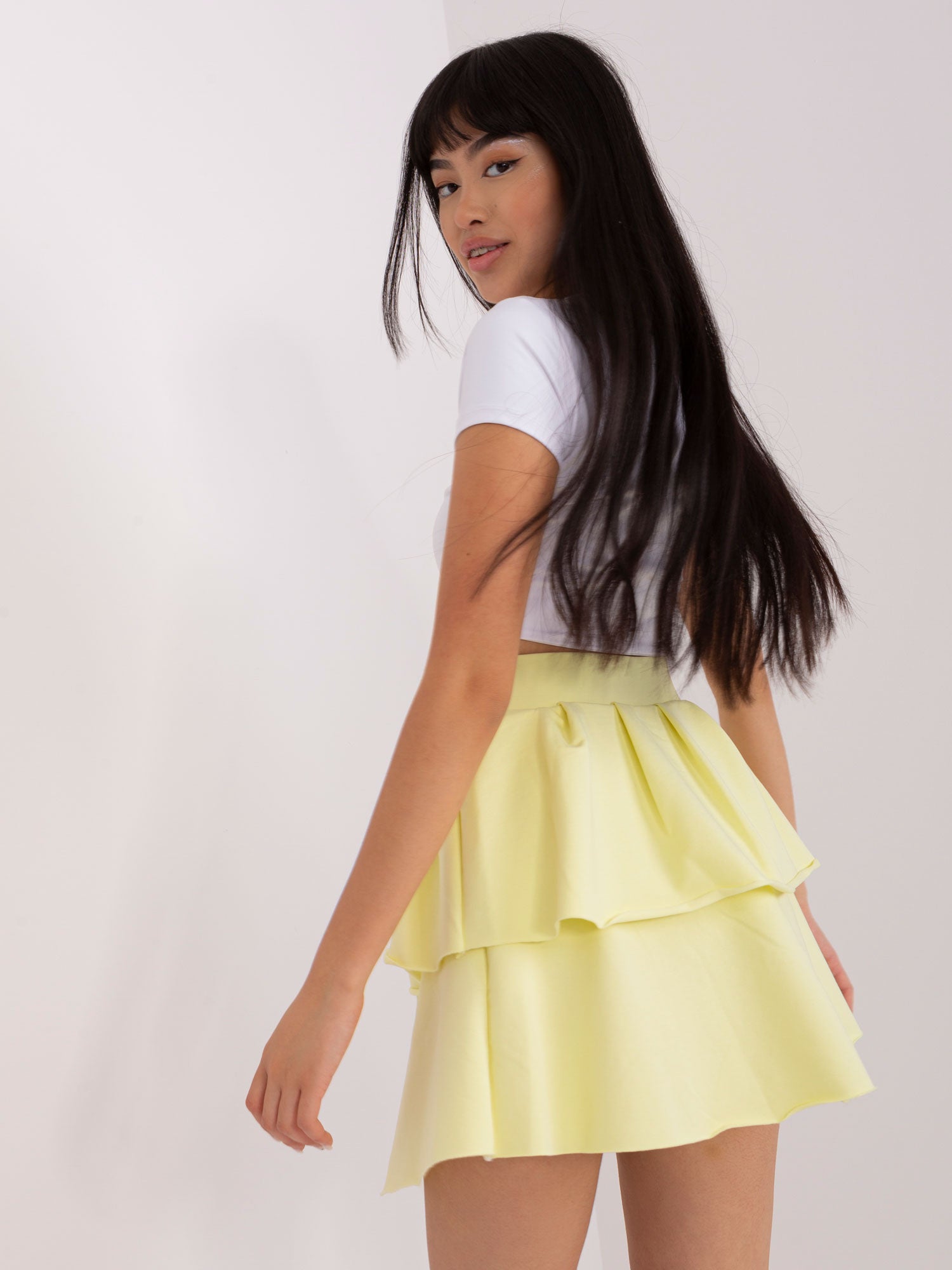 Jasnożółta mini spódnica z falbaną .