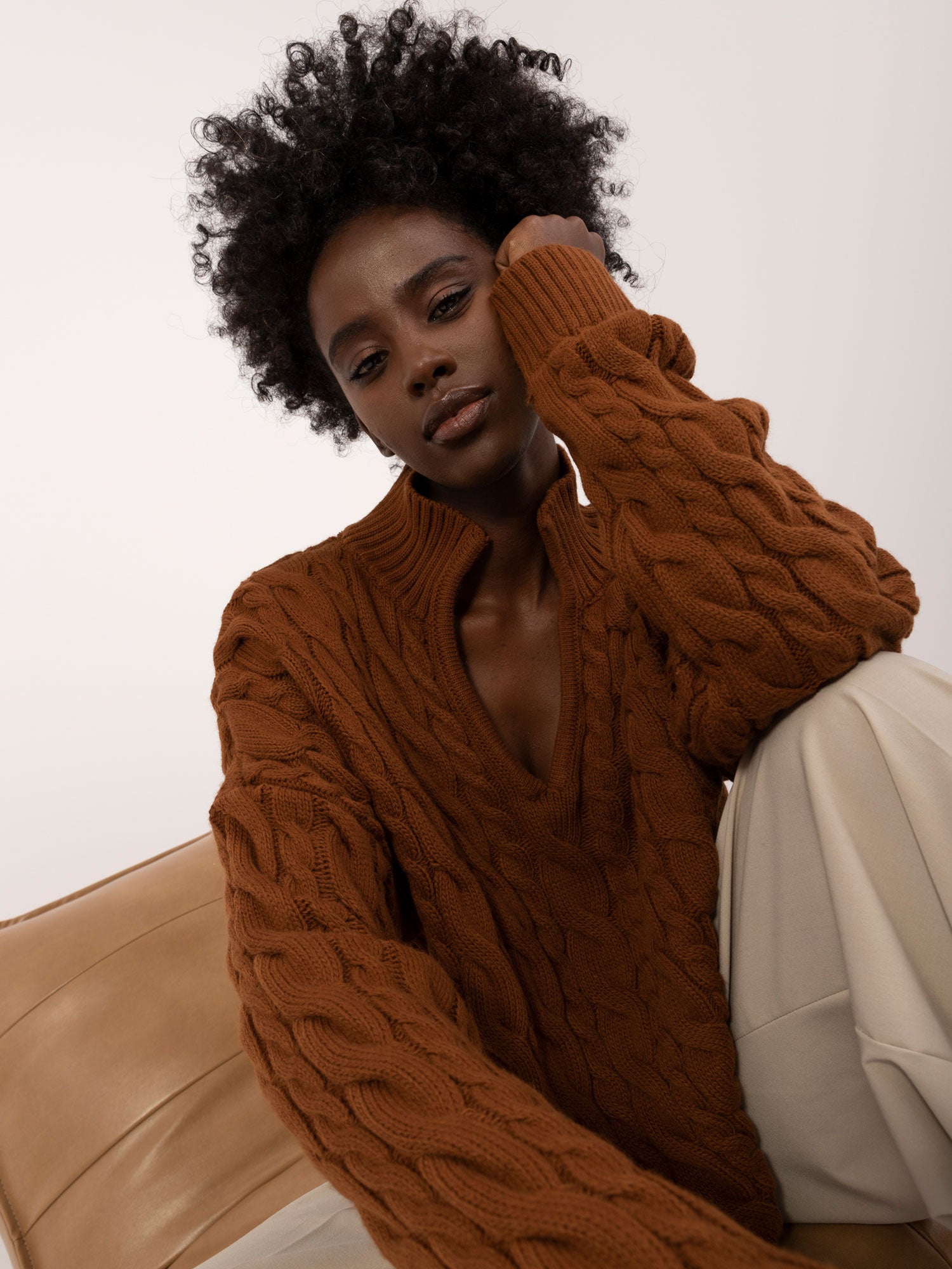 Wymiary swetra w rozmiarze one size mierzone na płasko: szerokość swetra pod pachami - 58 cm, długość swetra - 63 cm, długość rękawa - 70 cm